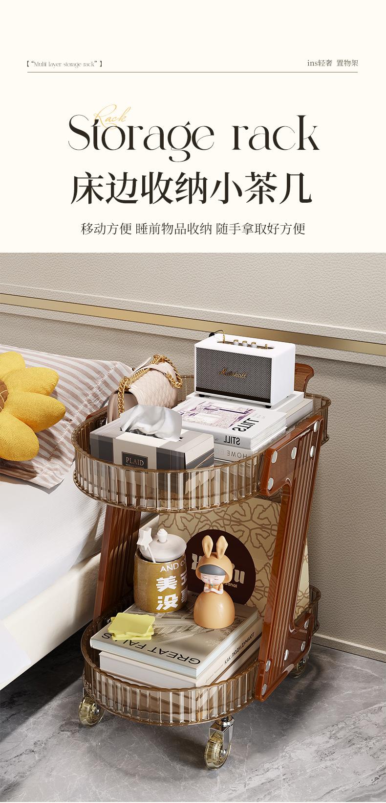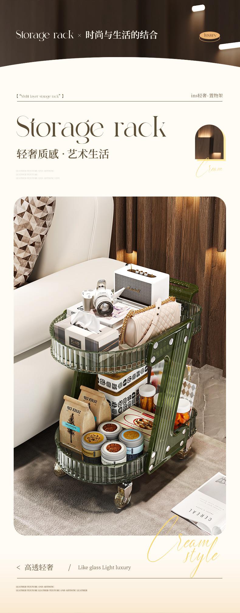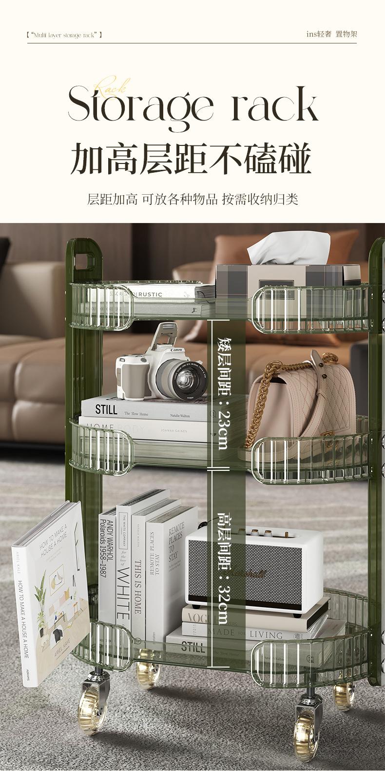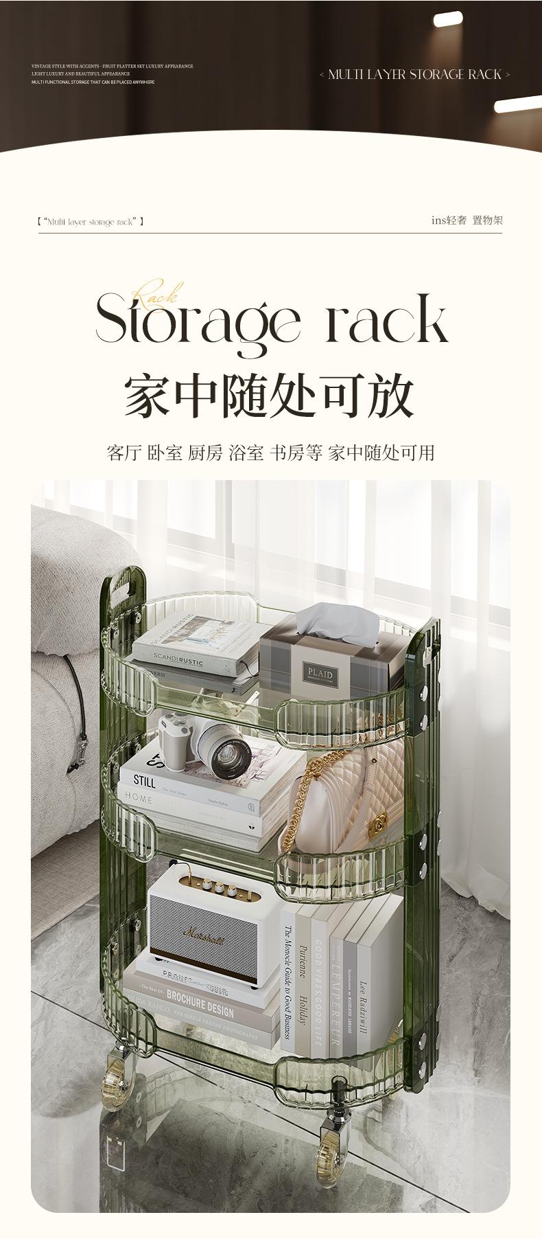 Carrinho Redondo Prateleira de Armazenamento Canto Transparente Estilo Ins Prateleira de Flores Quarto Multicamadas Carrinho Removível Prateleira de Armazenamento