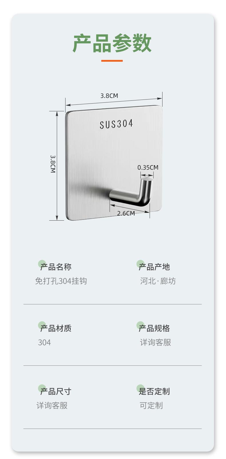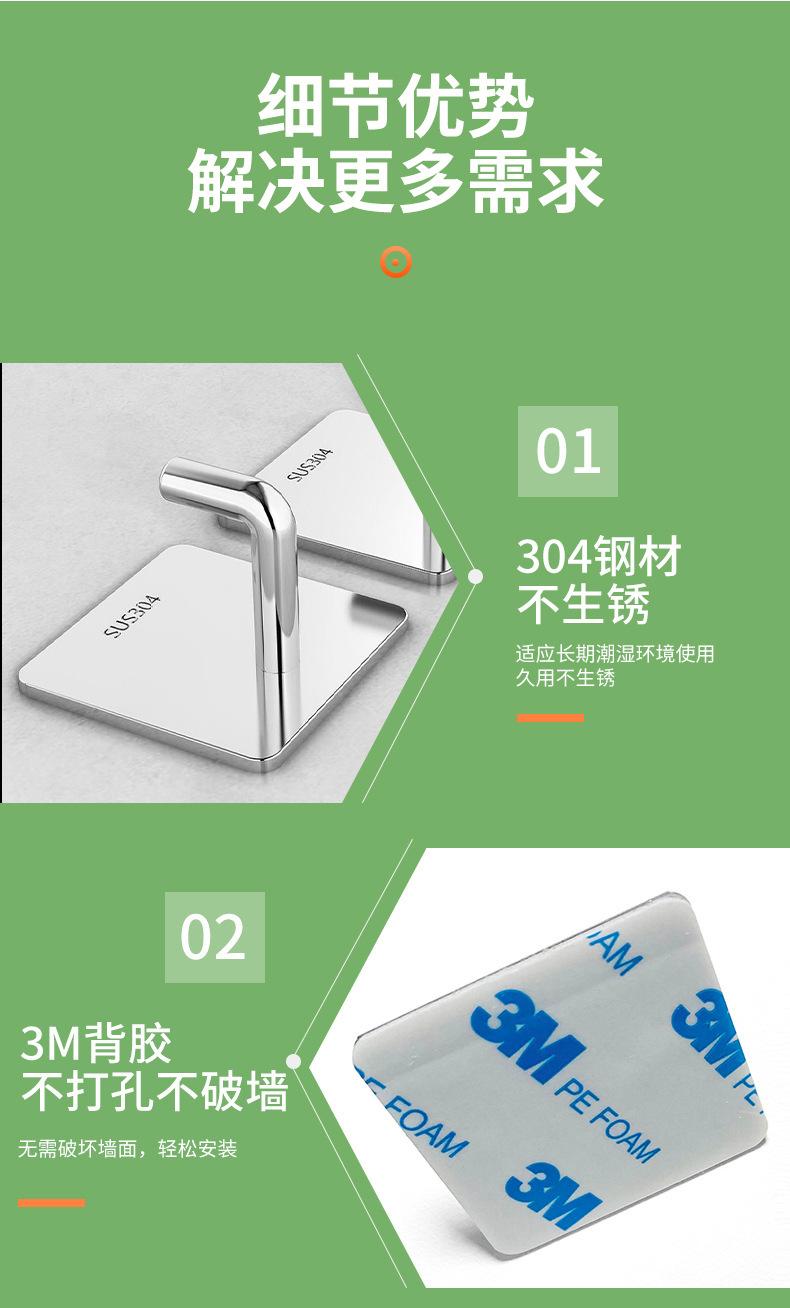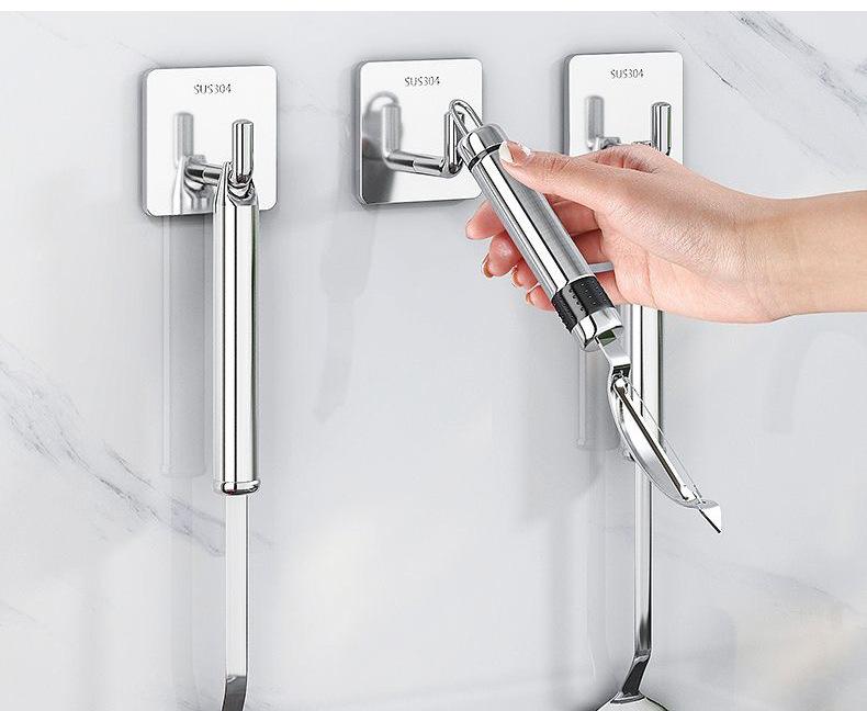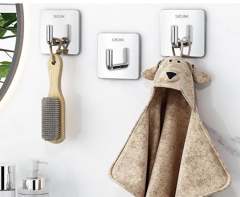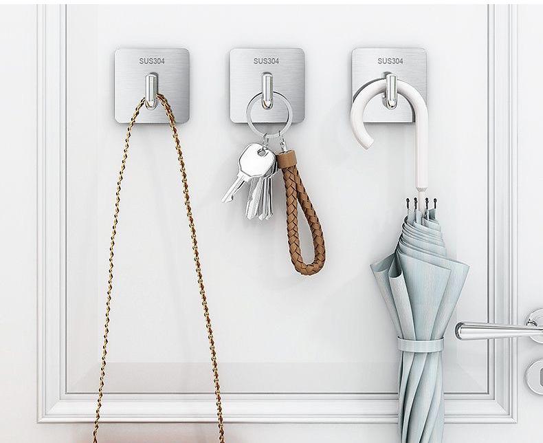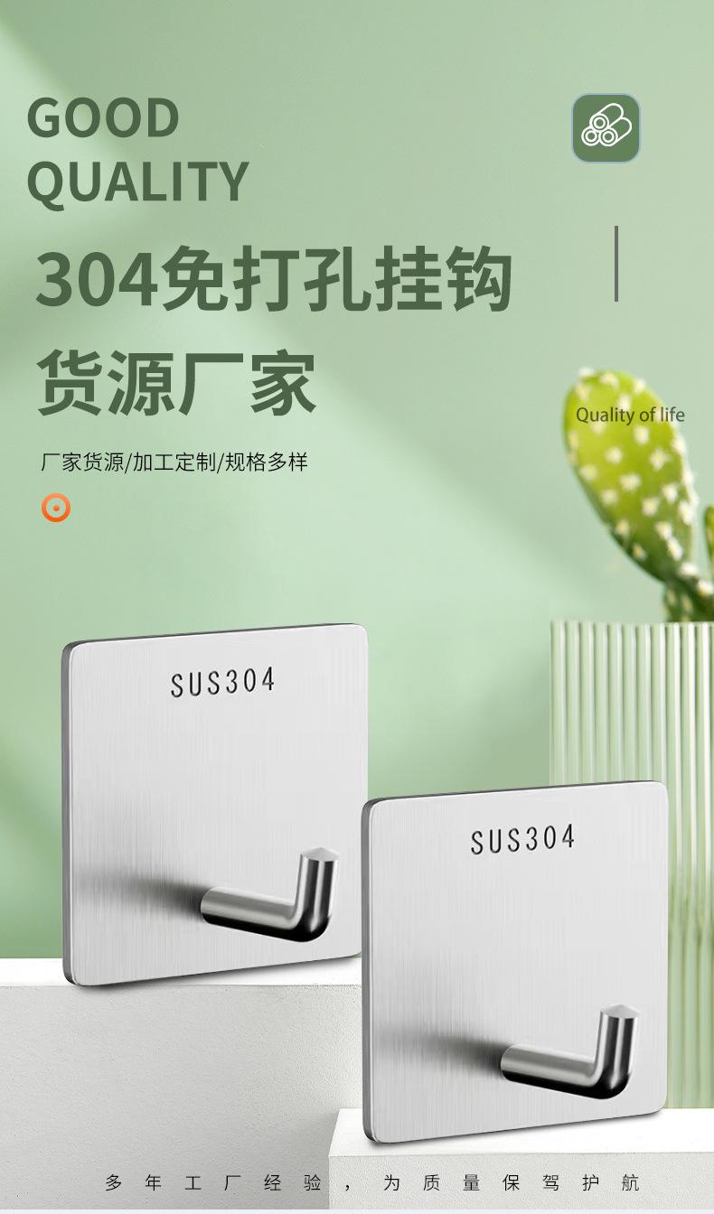 Ganchos Adesivos de Aço Inoxidável, Ganchos Sem Furo, Forte Capacidade de Carga, Ganchos Adesivos para Cozinha e Banheiro, Adesivo Metálico de Exportação para Parede