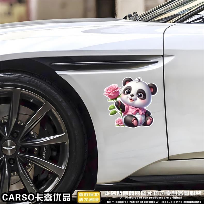 Adesivo de Carro Cobertura de Arranhões Panda Fofo Desenho Animado Adesivo de Porta de Carroceria de Carro Criativo Personalizado Adesivo Adesivo de Carro Estéreo 3D