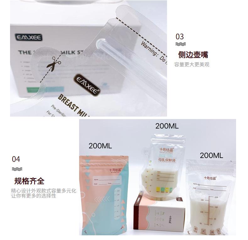 Fabricantes para Produzir Sacos de Leite Materno Saco Conveniente Descartável para Armazenamento de Leite Armazenamento Pode Ser Congelado 200ml `