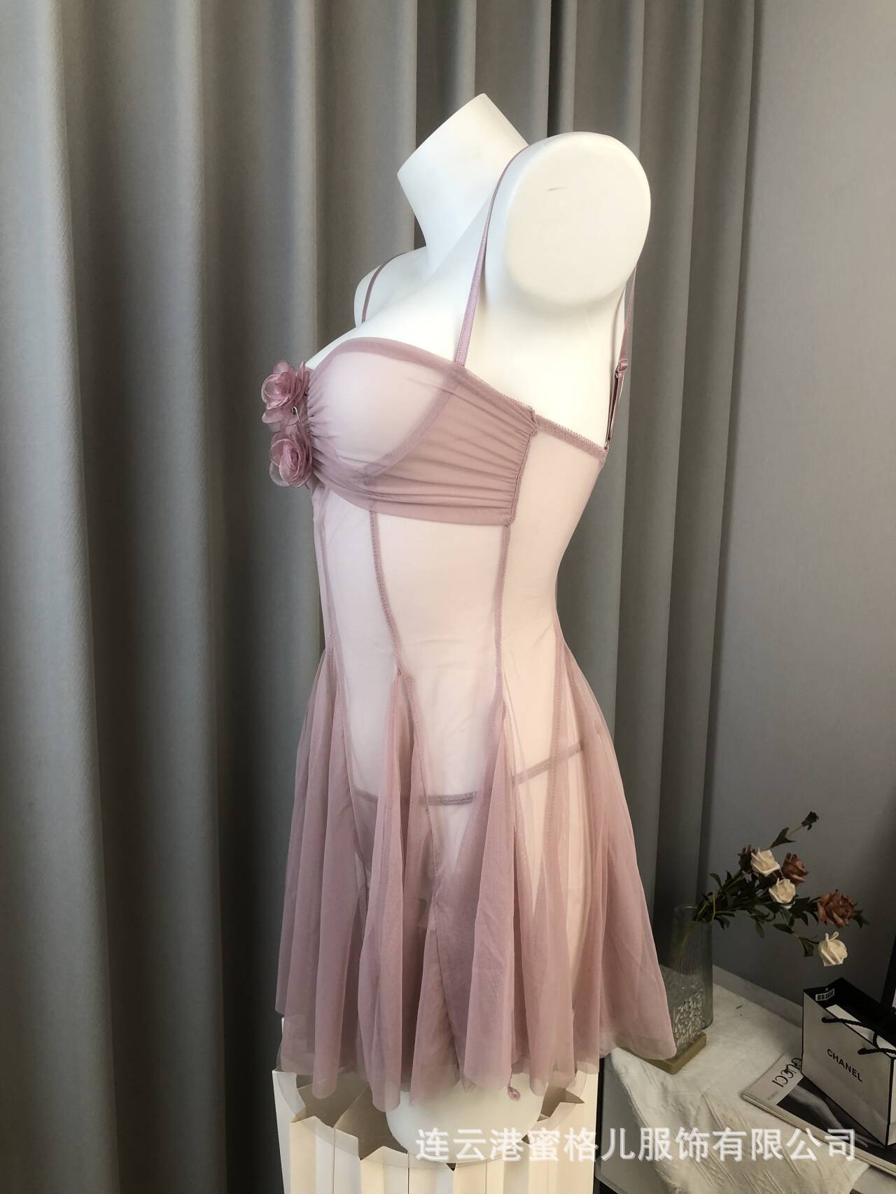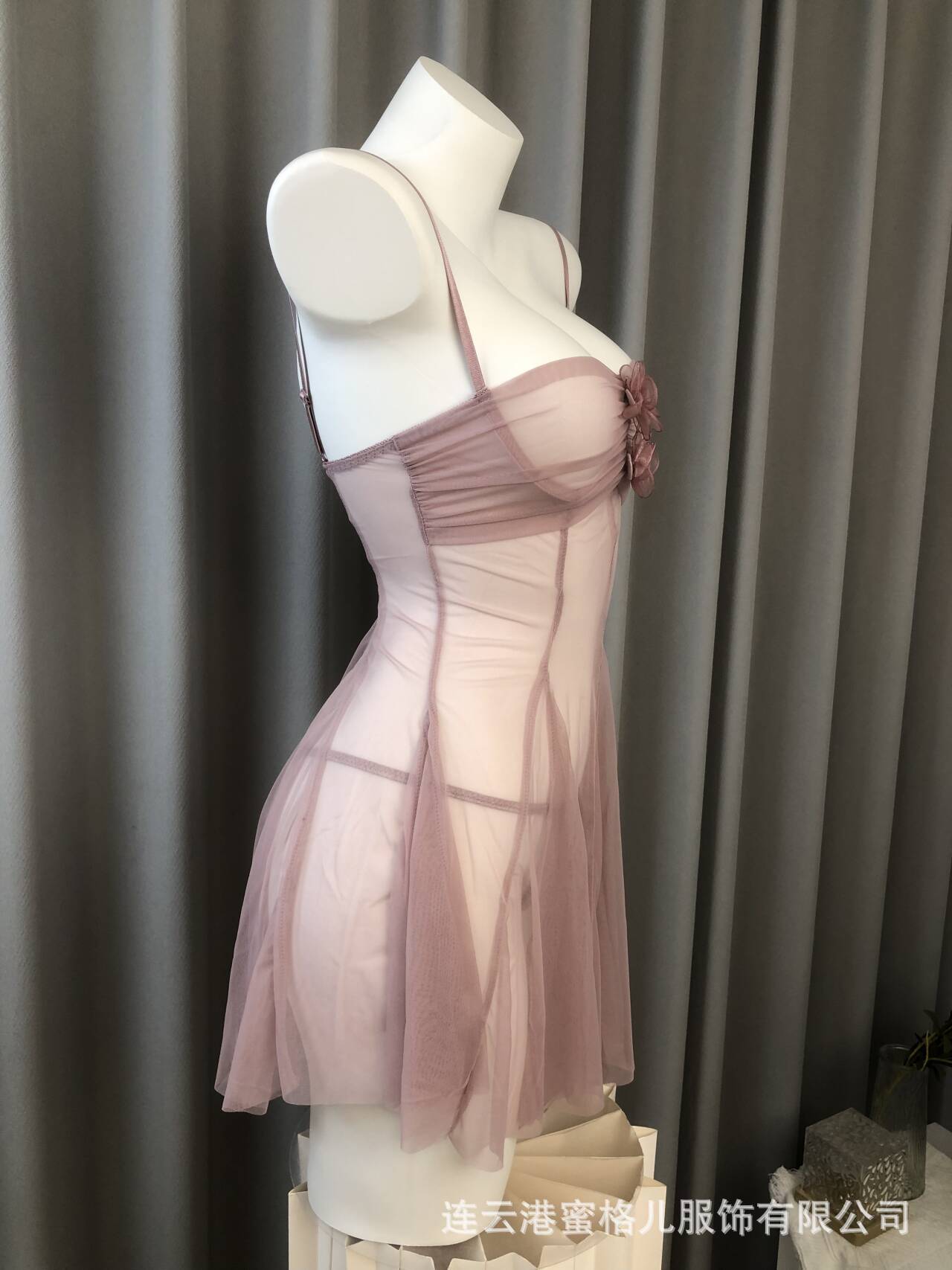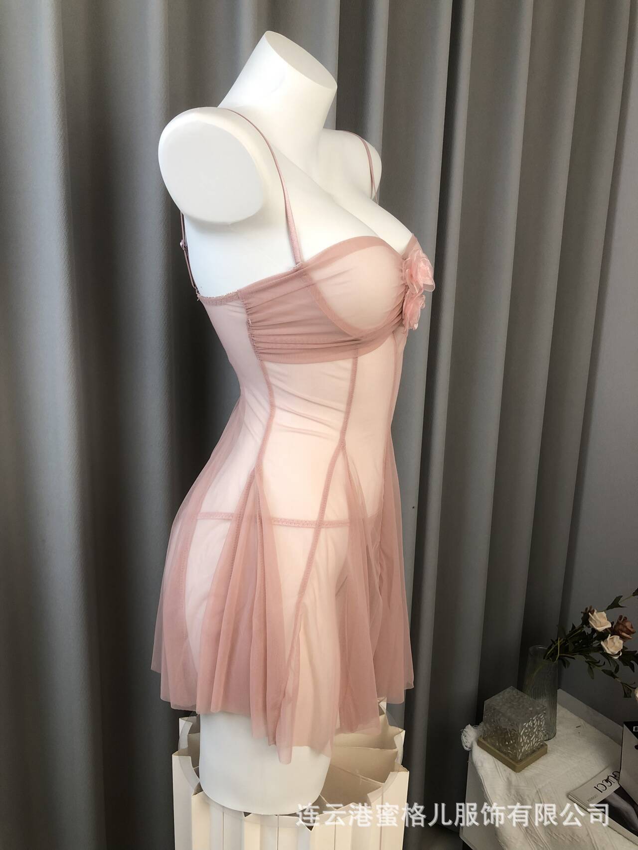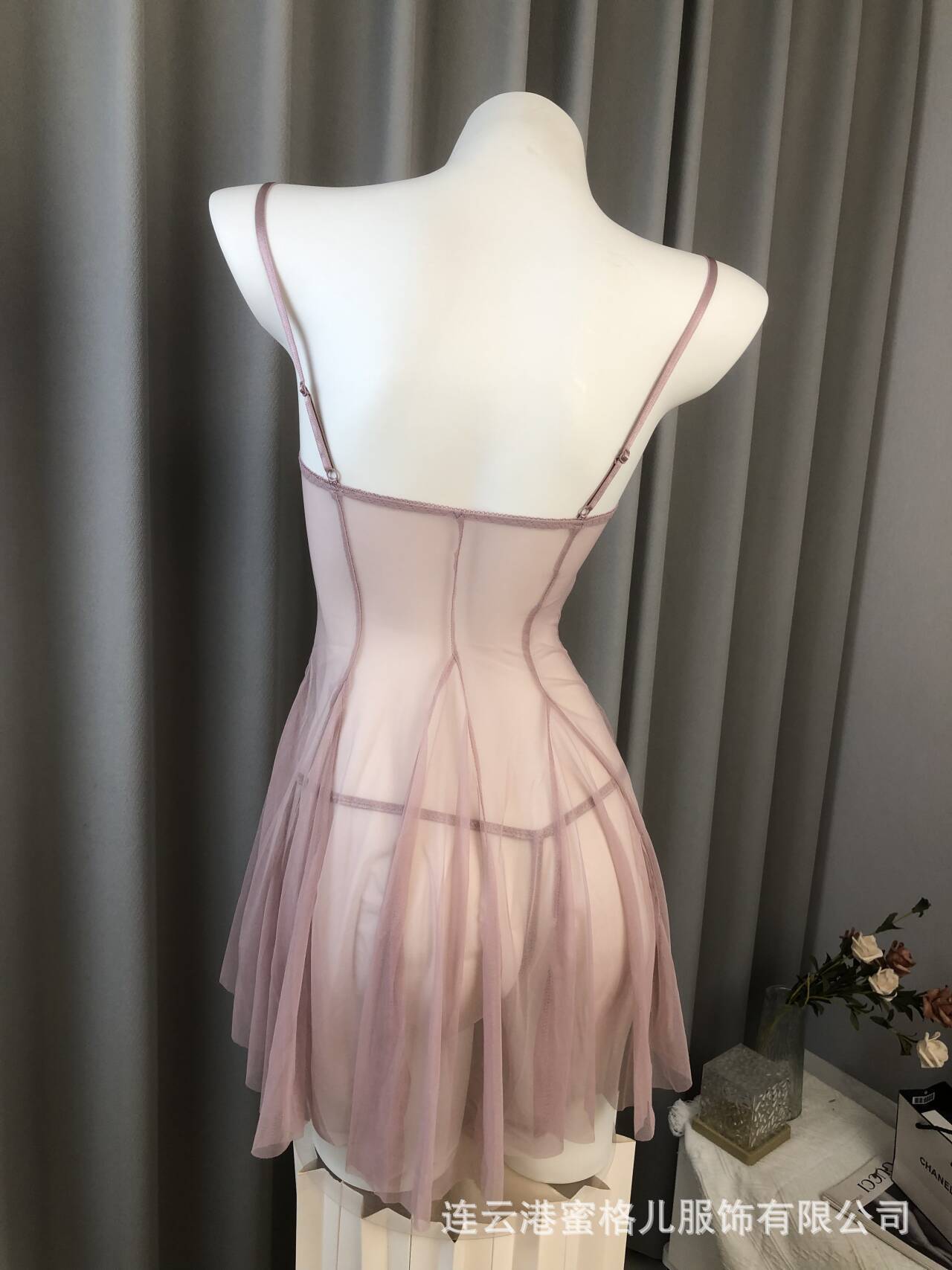 Lingerie Sexy Malha Transparente Camisola Desejo Puro Roupa Feminina Tentação Suspensório Pijama Sexy Seios Pequenos Atacado 8156