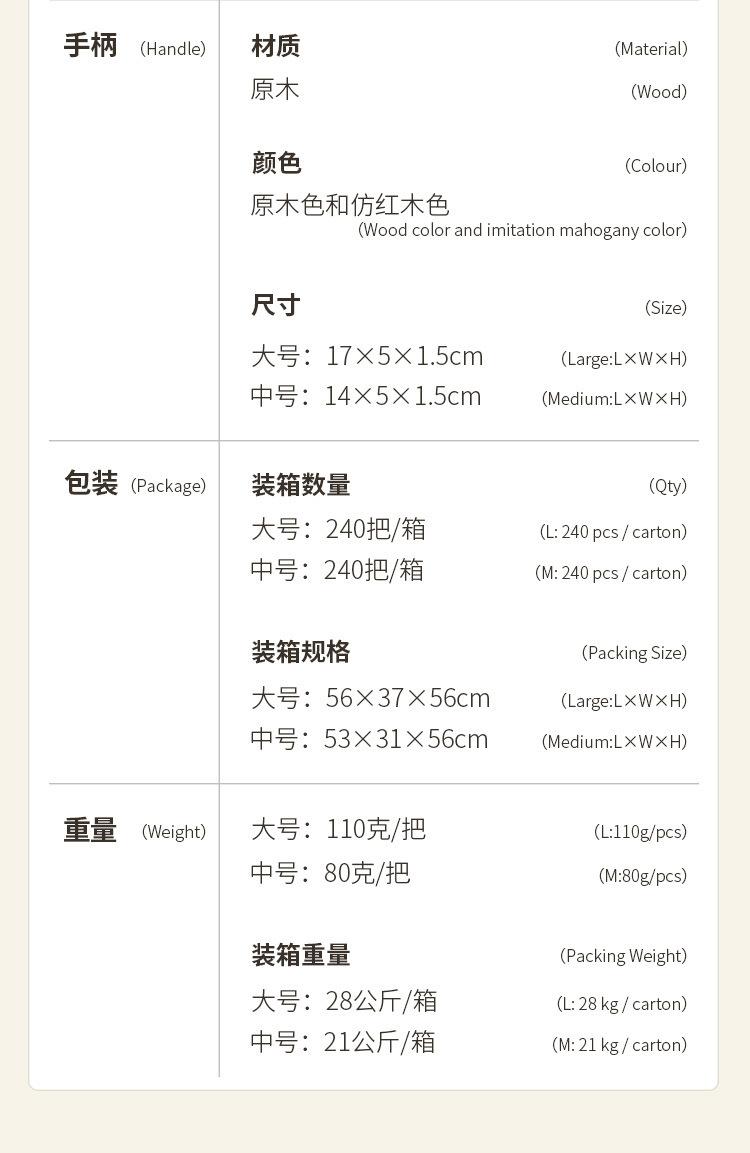 Large wood color, Large mahogany color, Medium wood color, Medium mahogany color