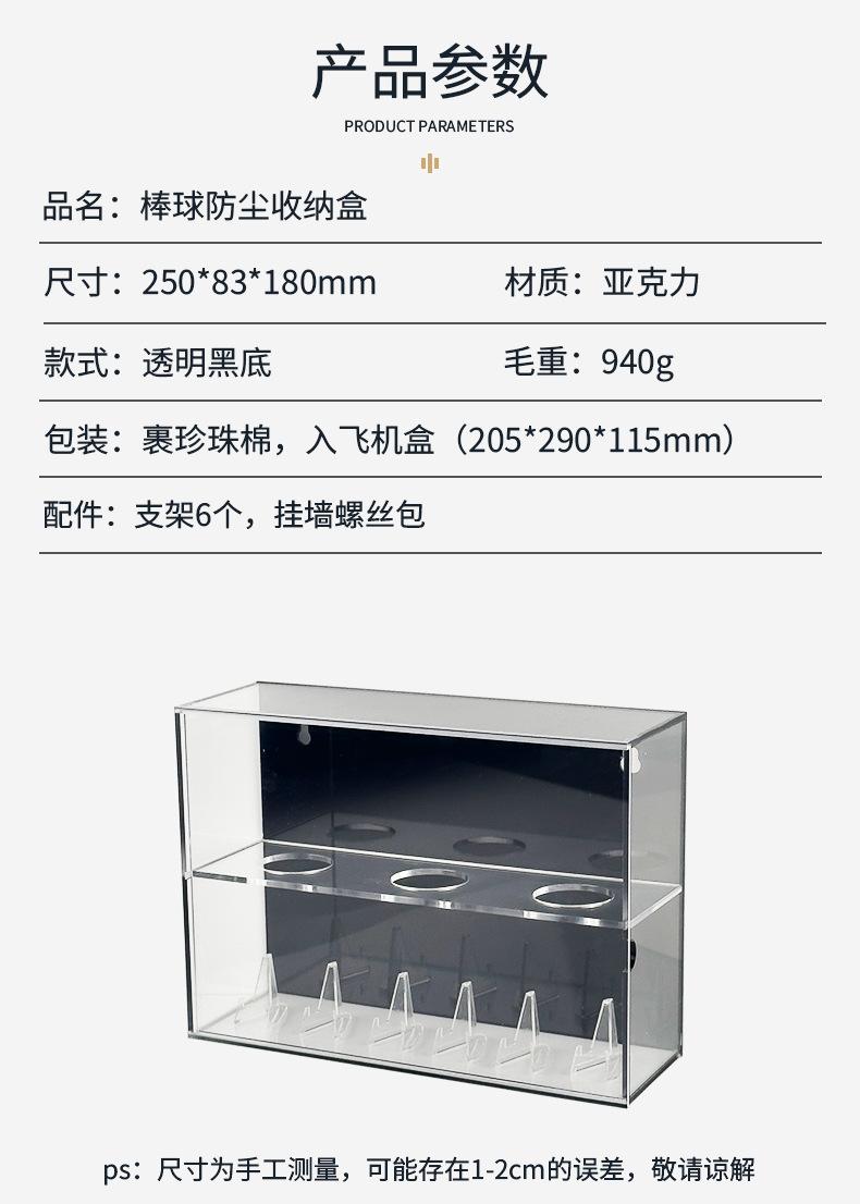Caixa de Exibição de Beisebol Acrílica Caixa de Armazenamento Transparente para Softball Caixa de Exibição para Anel de Campeonato Moeda Comemorativa Atacado Transfronteiriço