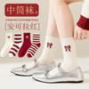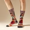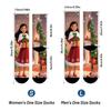 1 Par Meias Festivas Floco de Neve e Menina Natalina, Encantadoras Poliéster Meias de Cano Médio Tamanho Único Serve na Maioria Estampa Digital Nítida Guirlanda Caixa de Presente Leves Macias Festivas Meias para Reunião de Natal Presente Uso Diário Casual