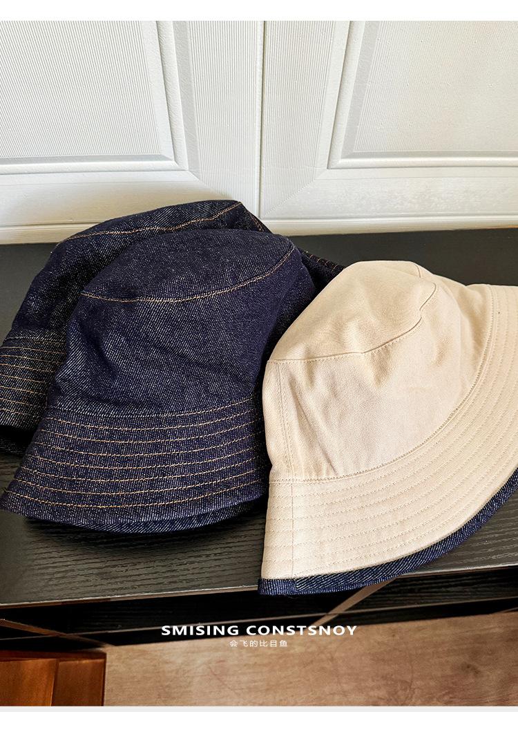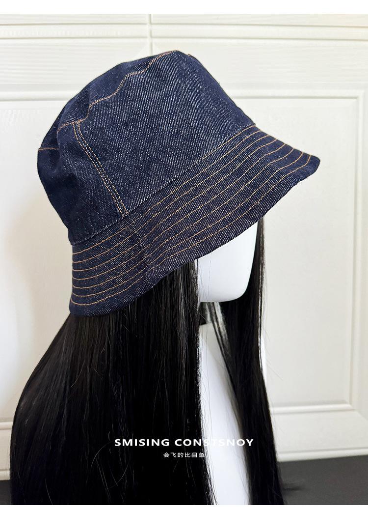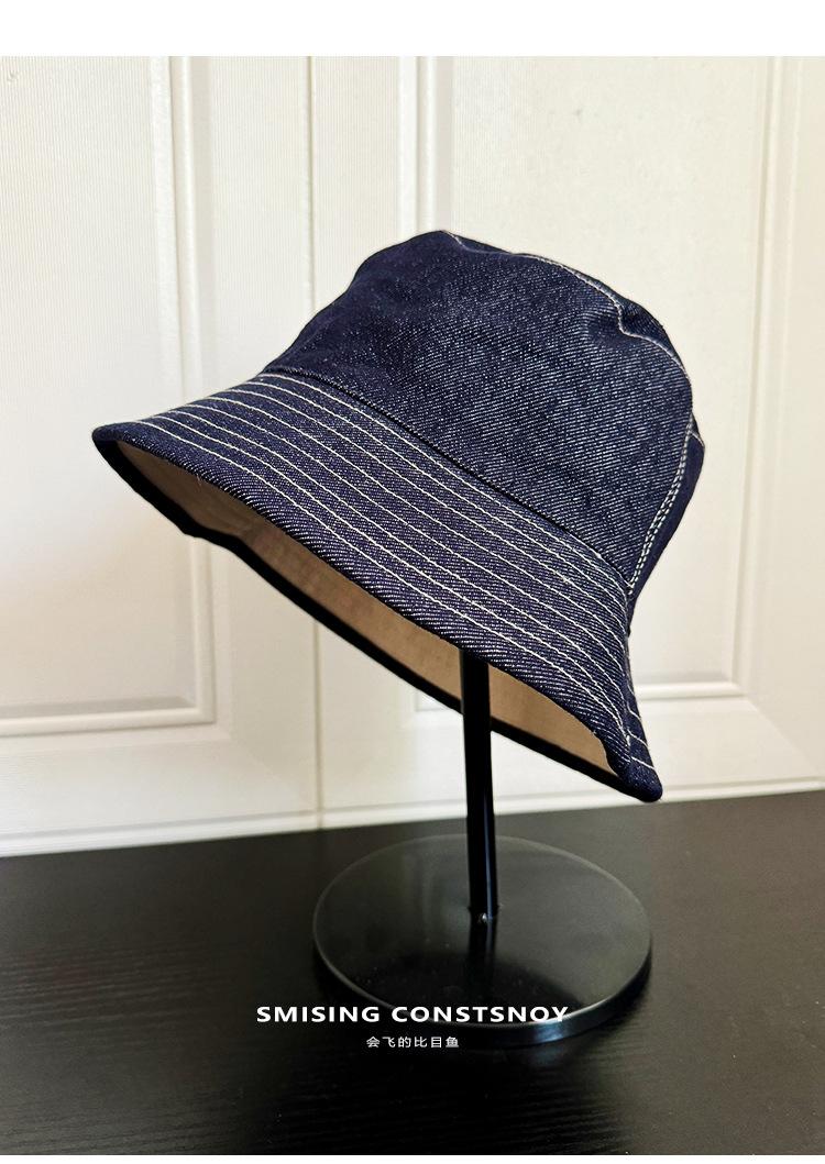 Chapéu de Pescador Jeans Dupla Face com Proteção Solar para Mulheres 2025 Novo Verão Anti-UV Quebra-Sol com Circunferência de Cabeça Grande, Fashion e Bonito