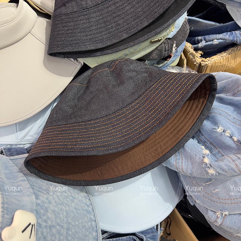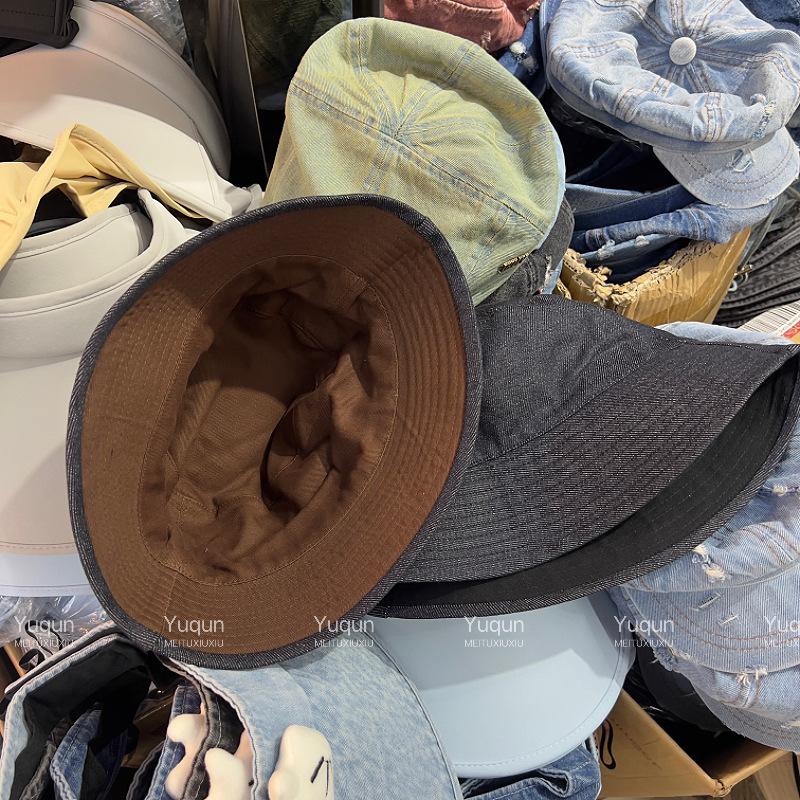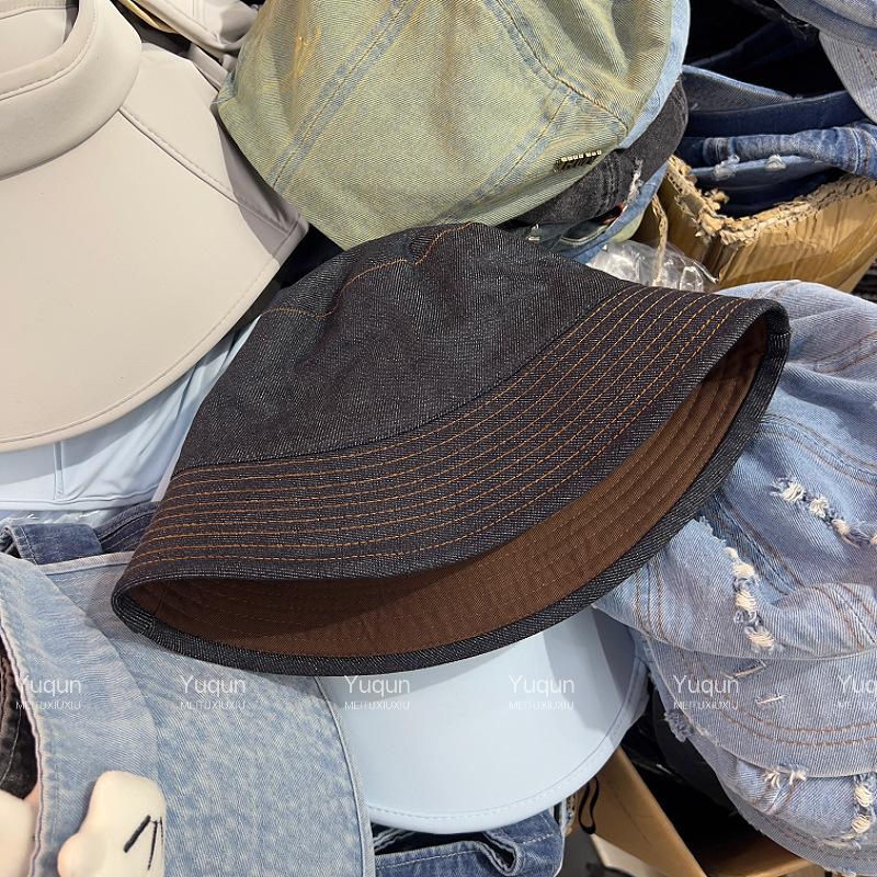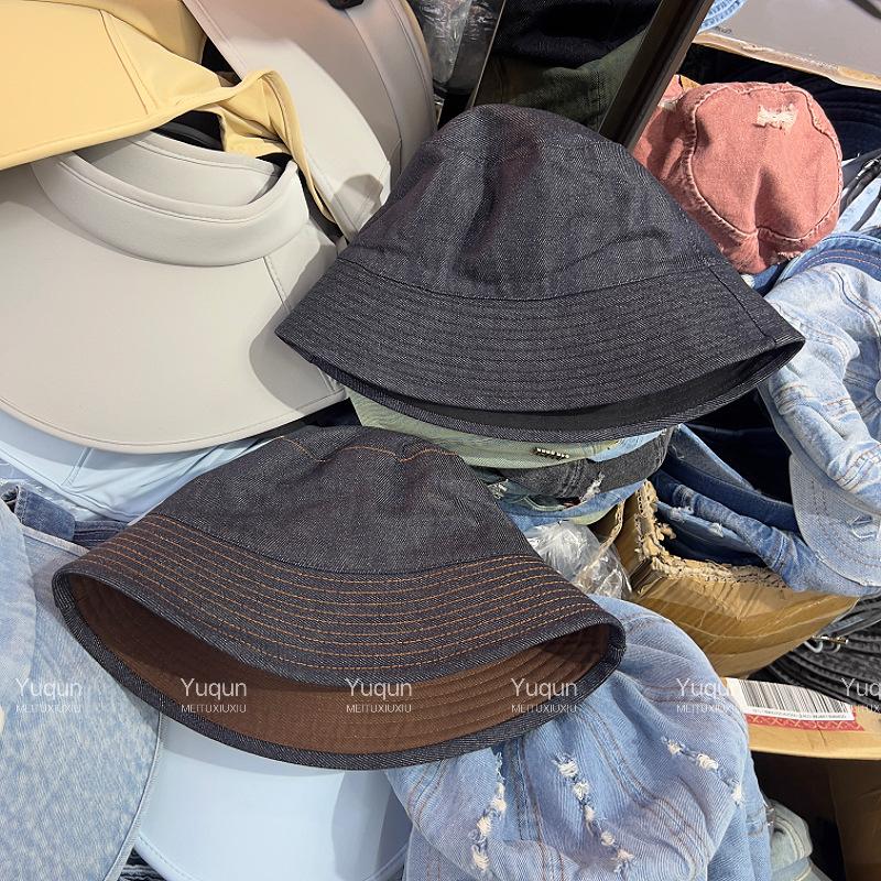 Chapéu de Pescador Reversível Novo Jeans Primavera e Outono Chapéu Feminino de Proteção Solar para Exterior Circunferência da Cabeça Grande Chapéu Balde Protetor Solar