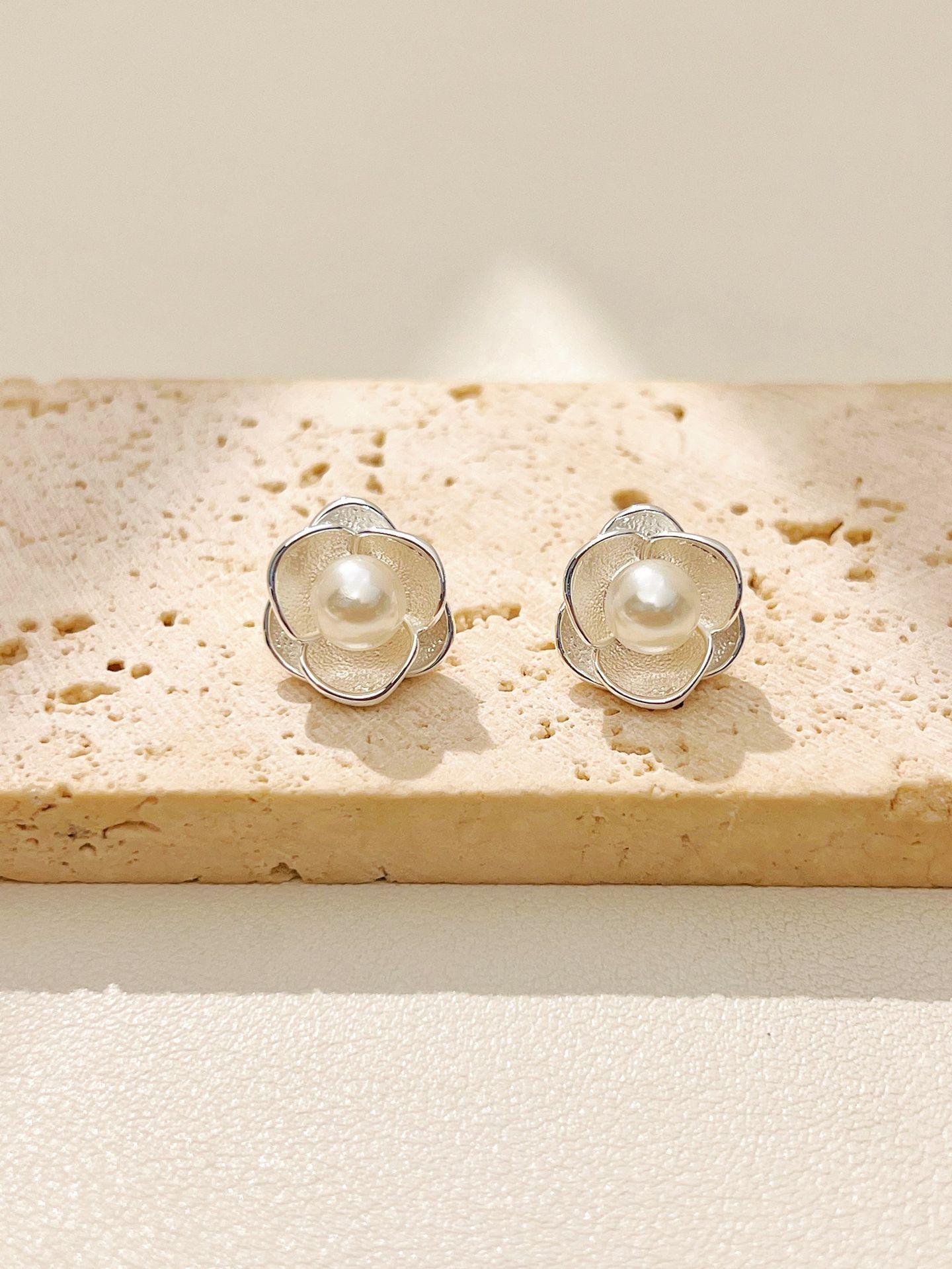 Brincos Simples de Metal Flor Pérola, Brincos Versáteis de Alta Qualidade, Brincos Femininos Estilo Luxo Leve
