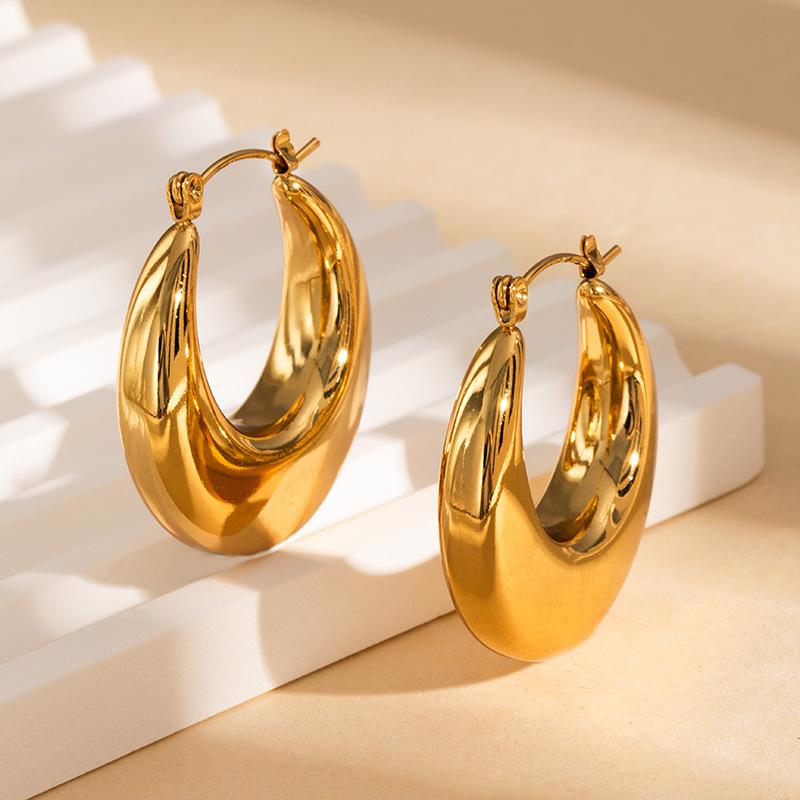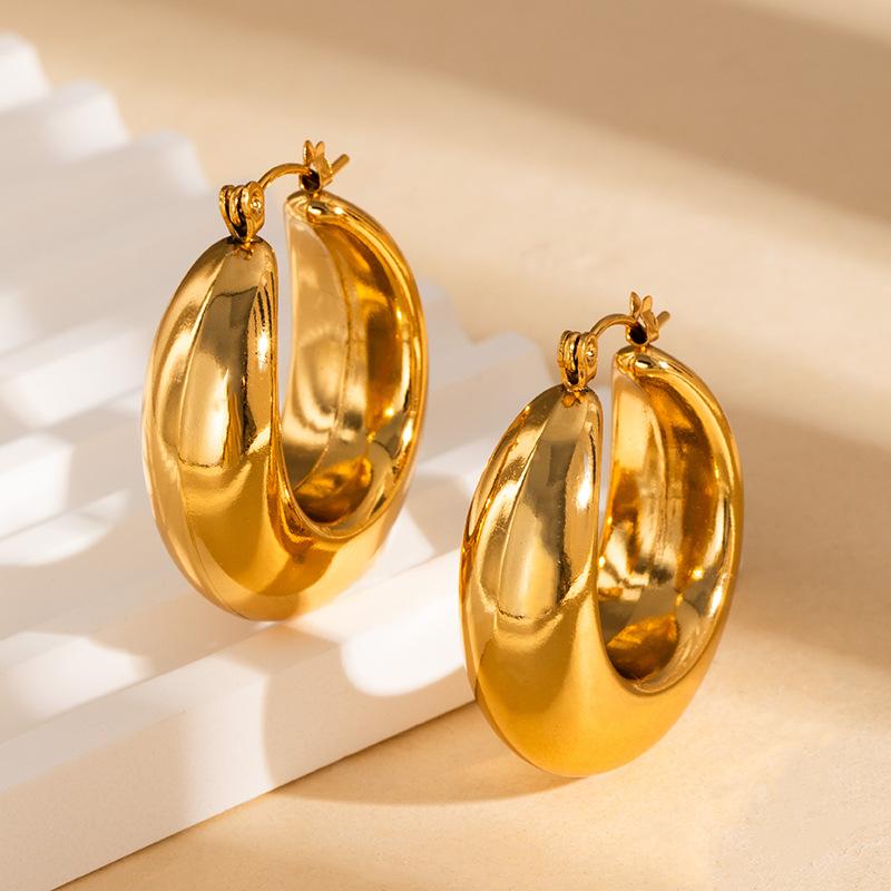 Brincos Transfronteiriços Europeus e Americanos de Aço Inoxidável Argolas Lisas Brincos Grandes Brincos Franceses de Alto Nível Brincos de Argola Redondos Simples