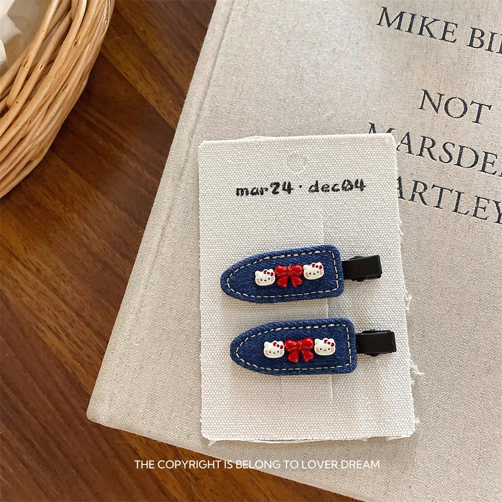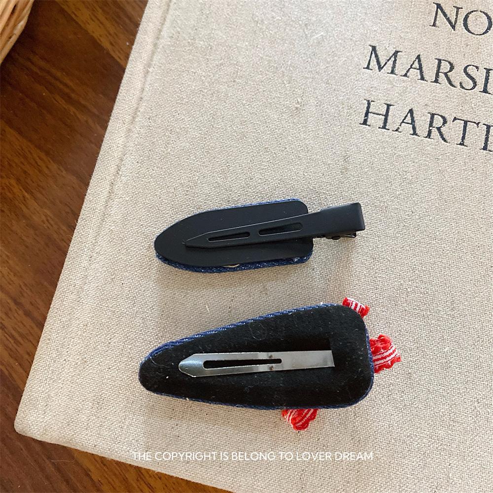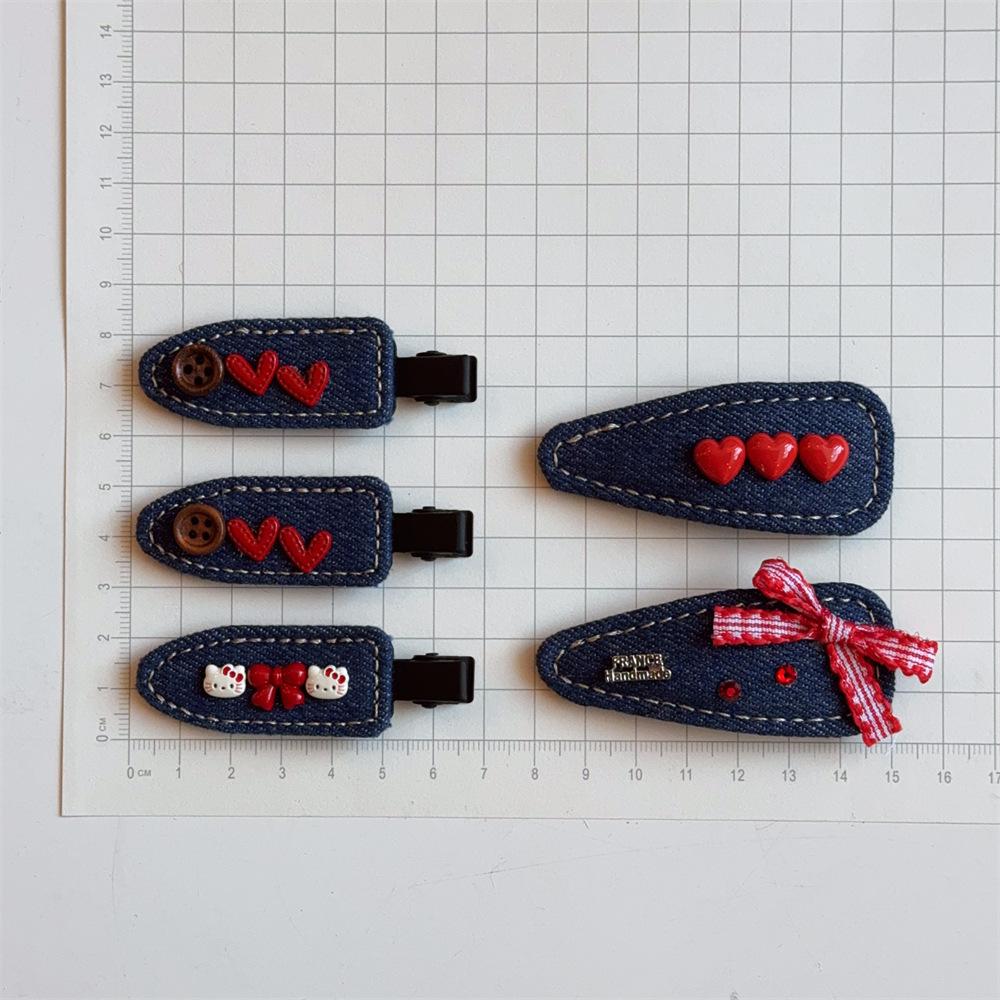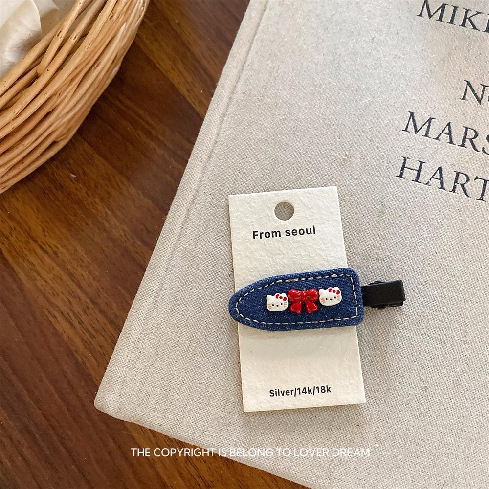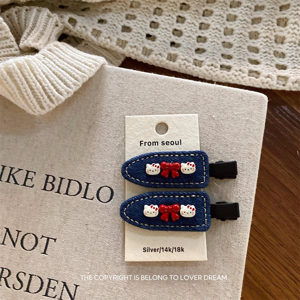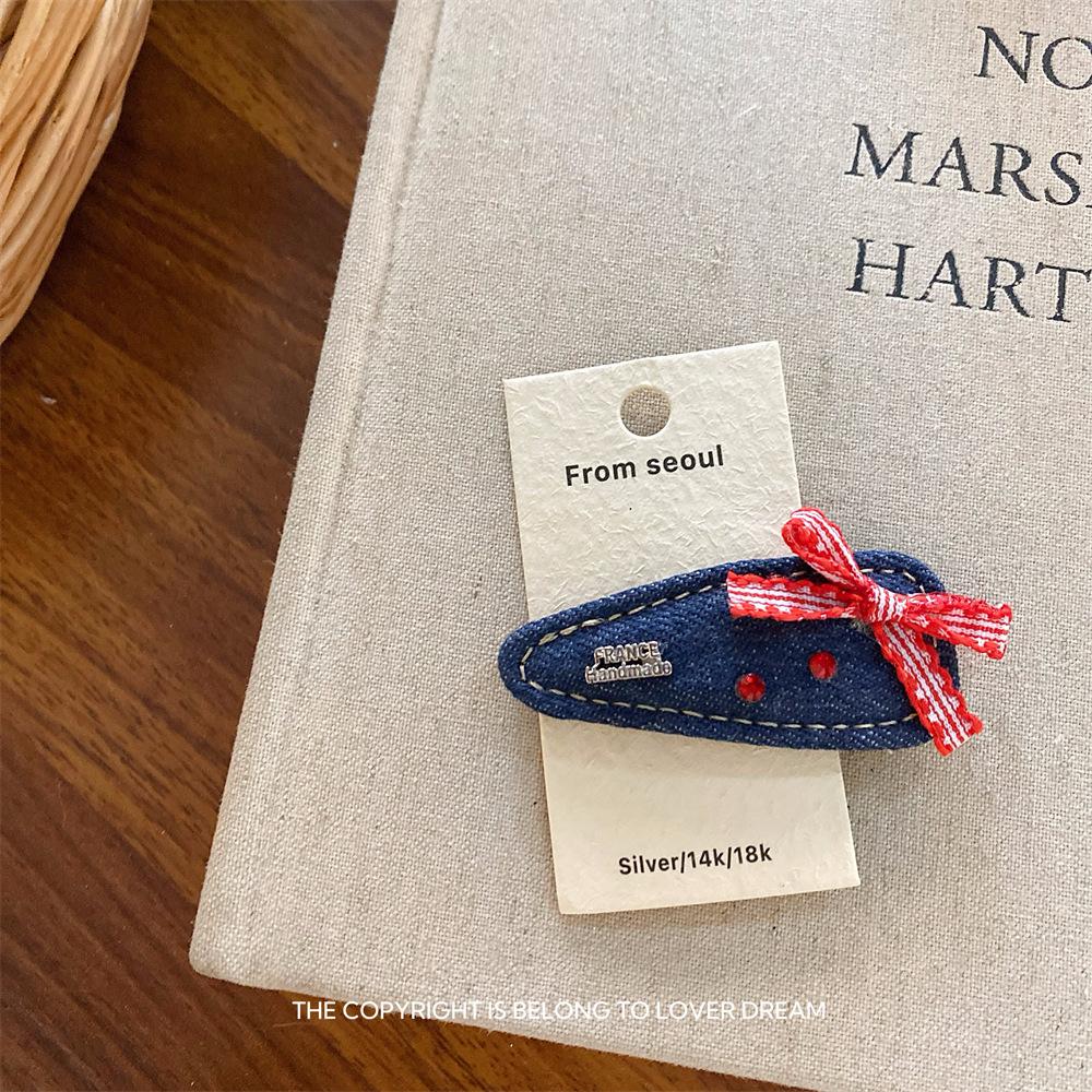 Compre Coreano Ins Novo Coração Vermelho Laço Presilha de Cabelo Jeans Design Doce Franja Clipe Lateral Acessórios de Cabelo no atacado no Joom.pro