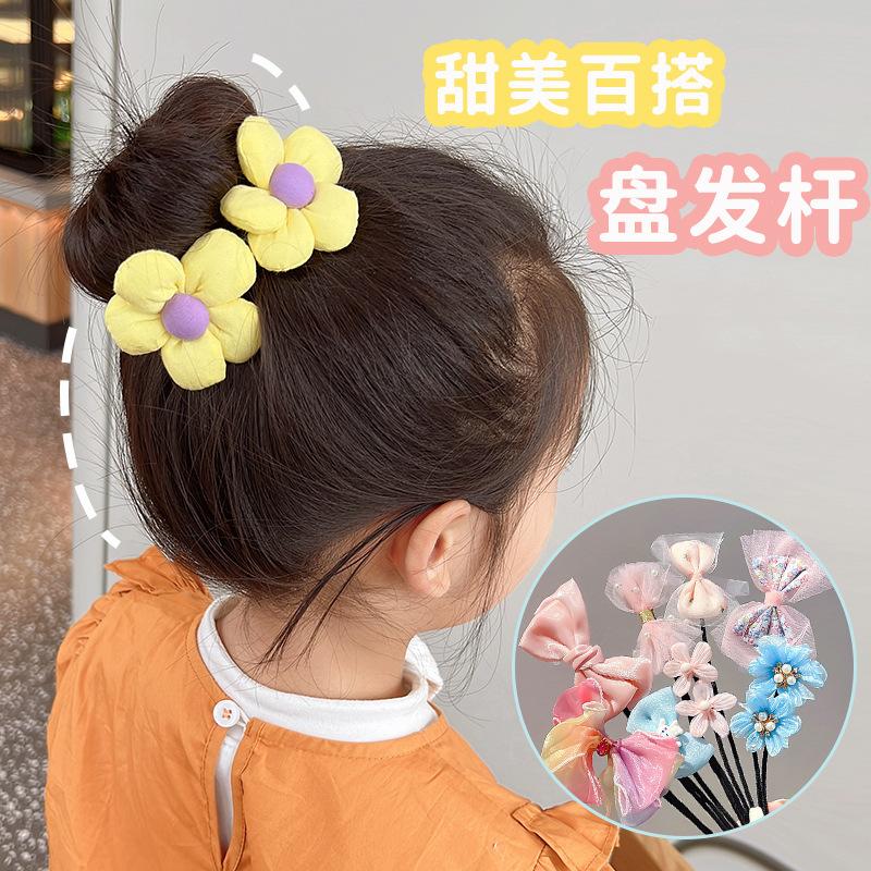 Grampo de Cabelo de Flor Infantil Acessório de Cabelo para Menininhas, Grampo de Cabelo para Coque Alto, Acessório de Cabelo Vareta Torcida Preguiçosa para Meninas
