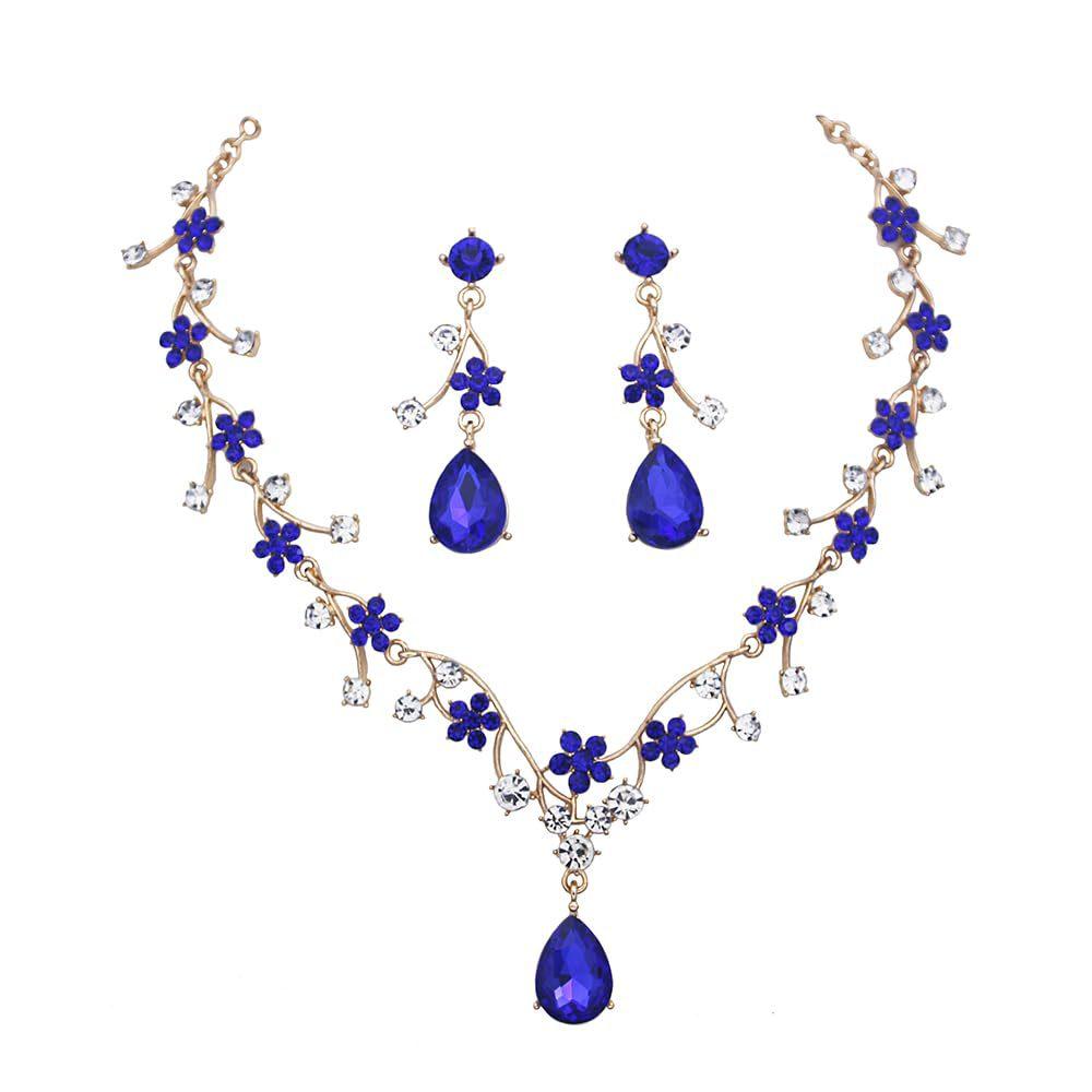 Conjunto de Colar e Brincos de Noiva de Estilo Coreano de Alta Qualidade Conjunto de Duas Peças Colar Joias Vidro Noiva Acessórios de Casamento Conjunto de Joias
