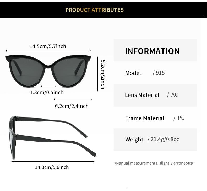 Óculos de Sol Sobrancelha Europeus e Americanos de Armação Grande Transfronteiriços, Óculos de Sol Olho de Gato da Moda, Óculos de Cor Contrastante Personalizados para Mulheres