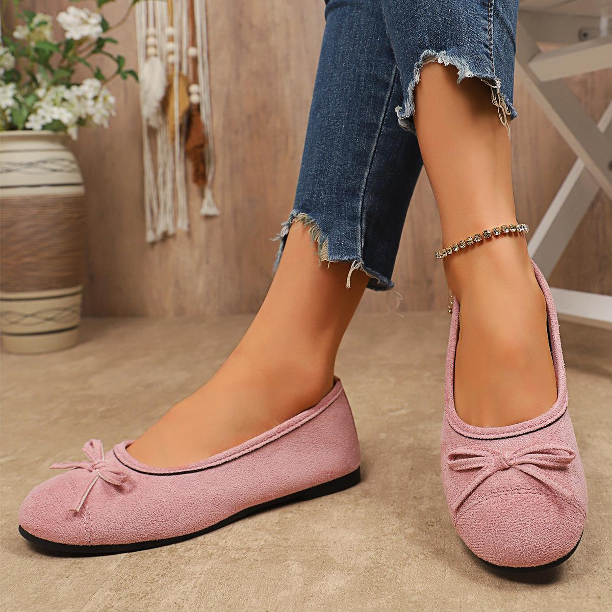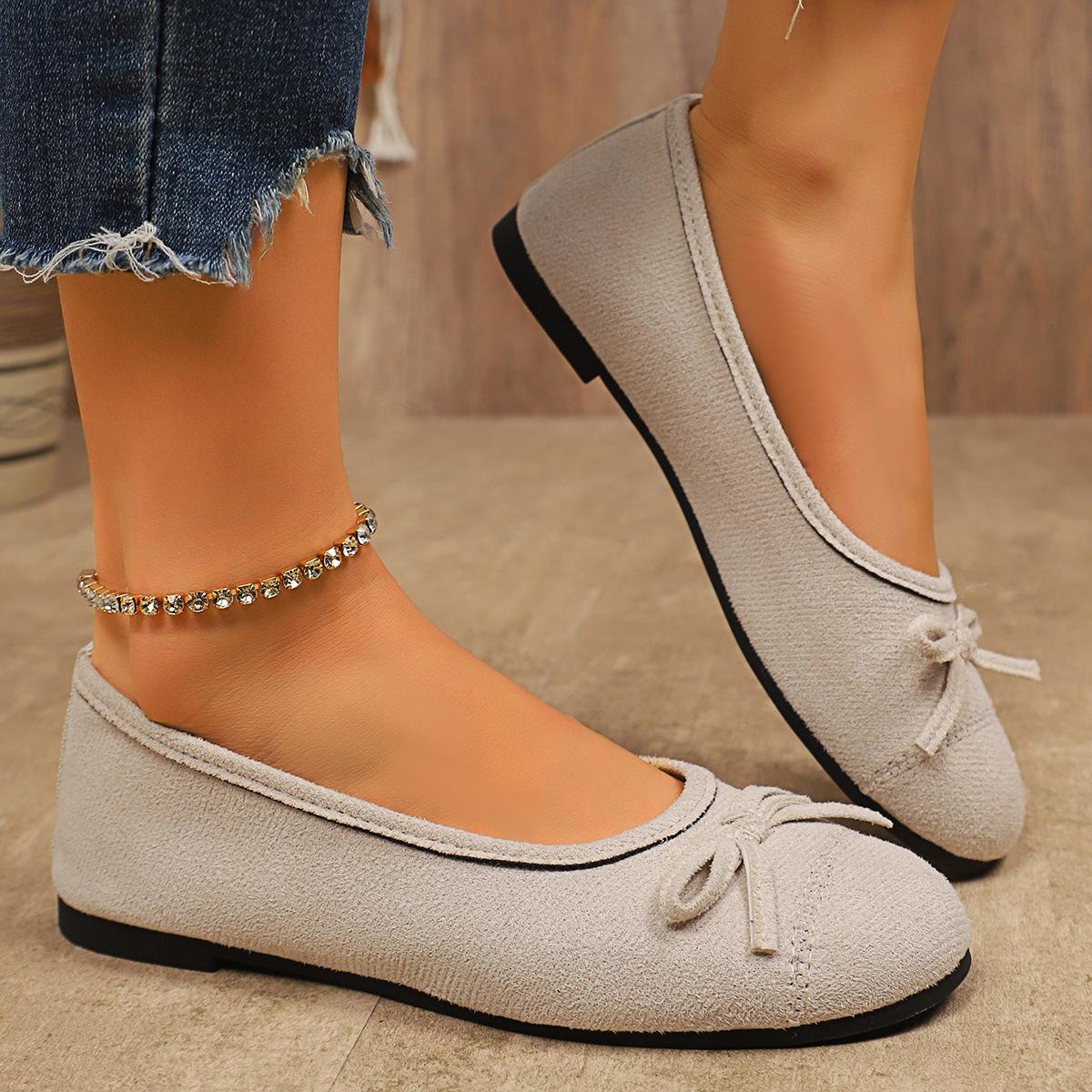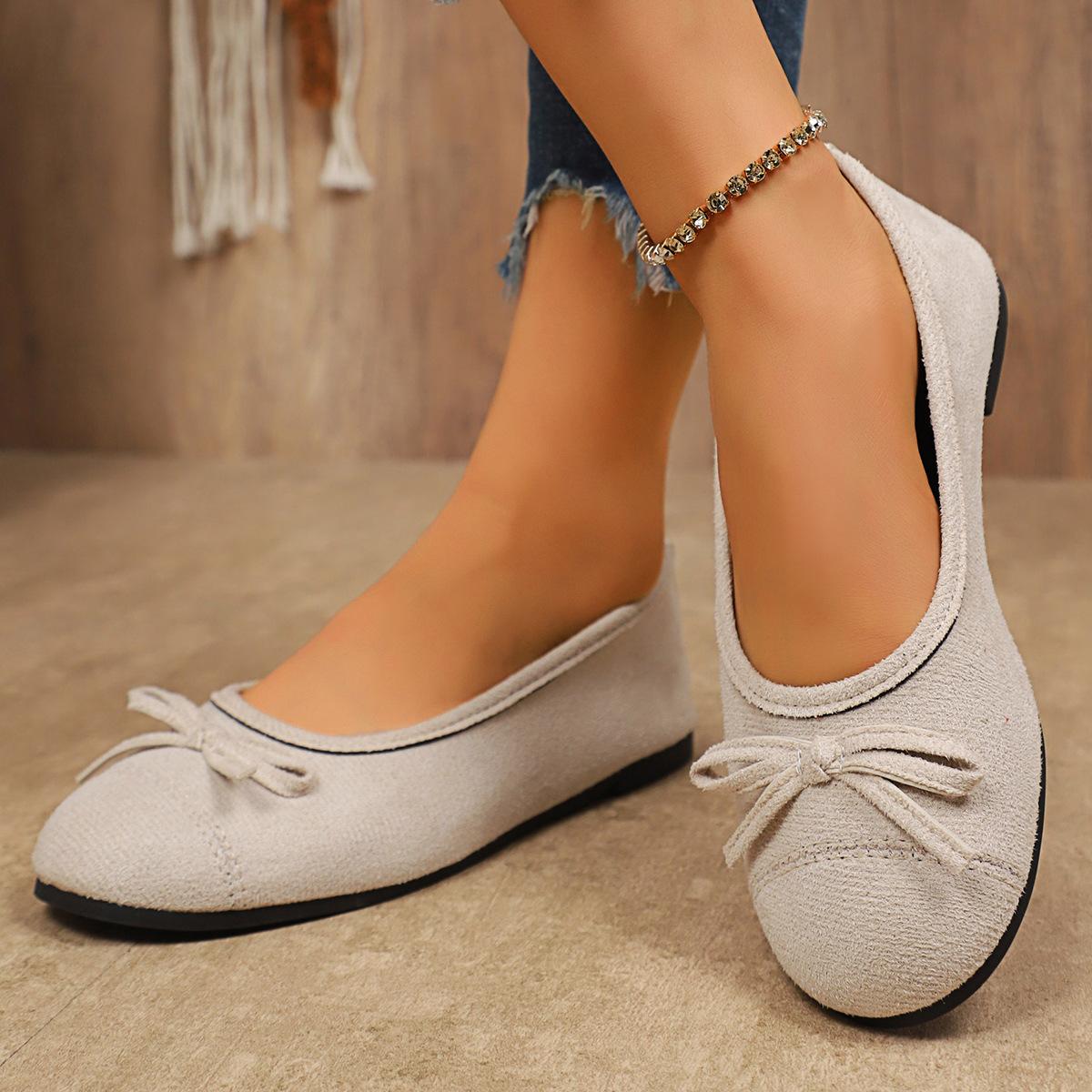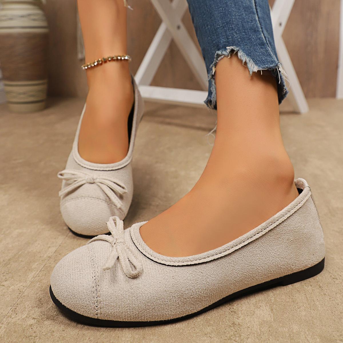 Sapatilhas Tamanho Grande Transfronteiriças para Mulheres 2025 Primavera Novas Europeias e Americanas Laço Boca Rasa Slip-On Confortáveis Sapatos Tipo Mocassim Tamanho 43