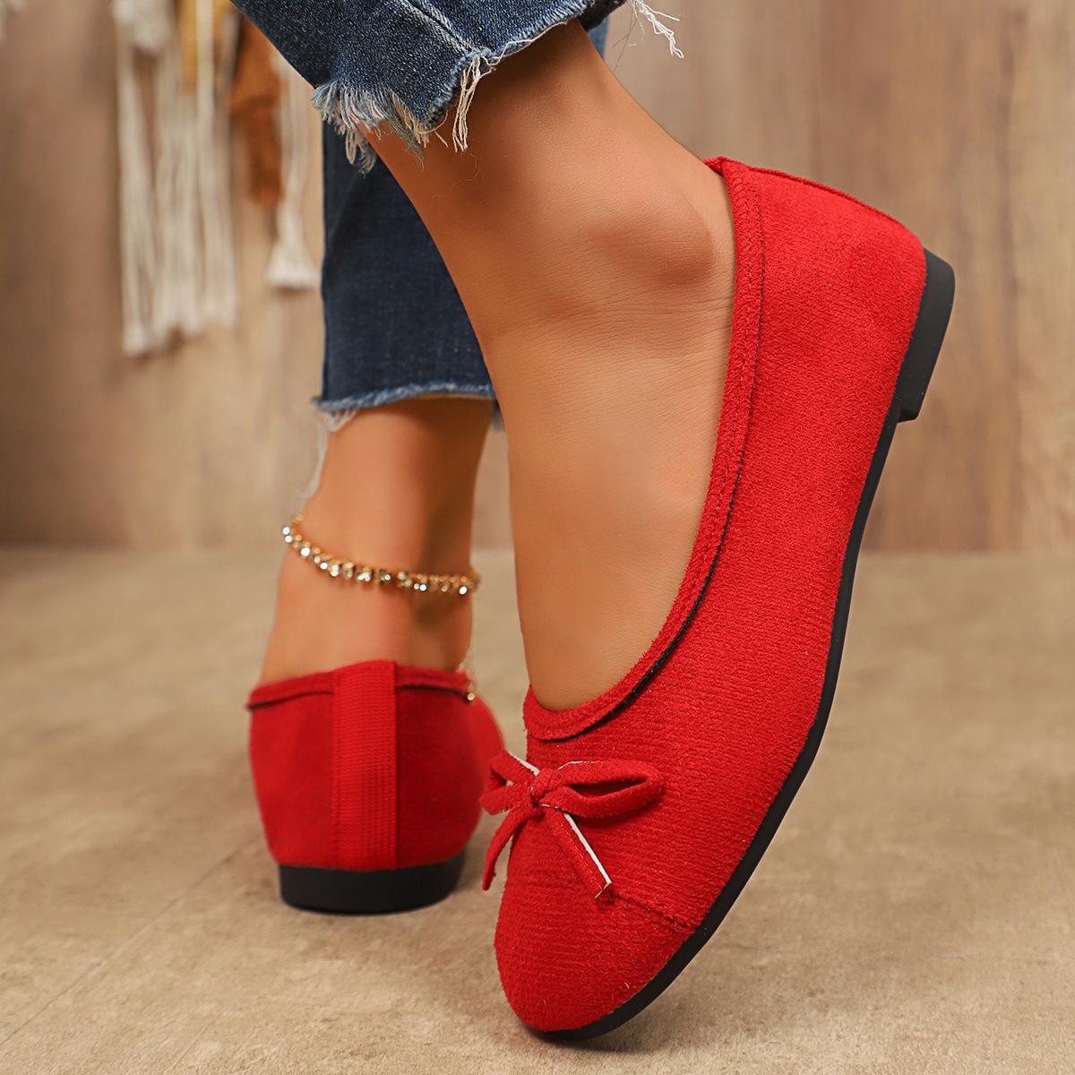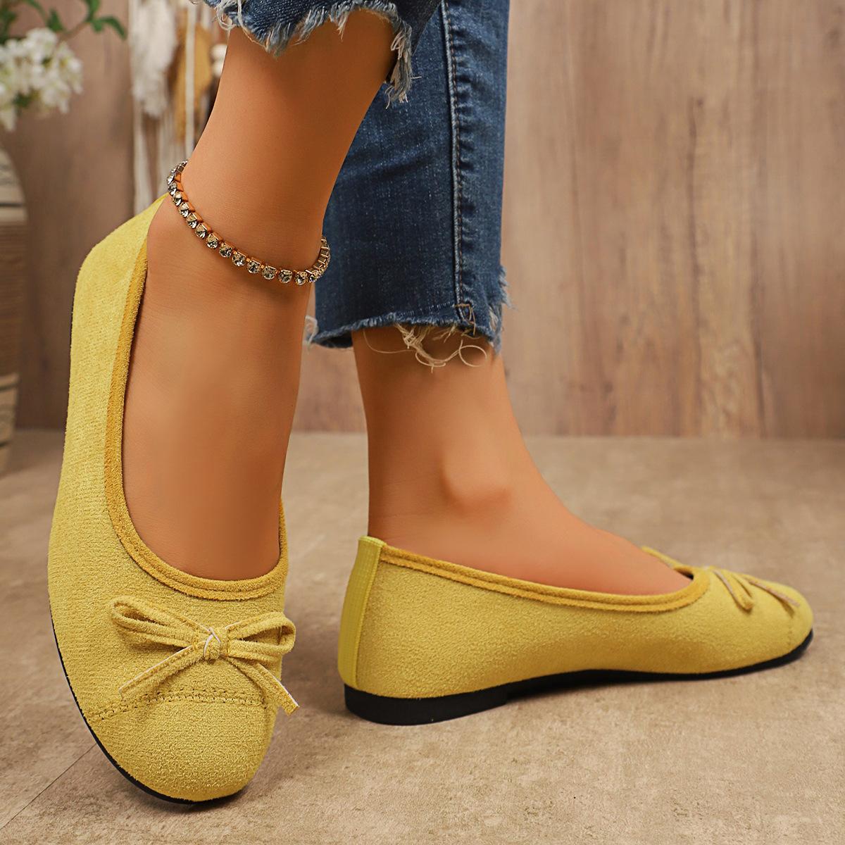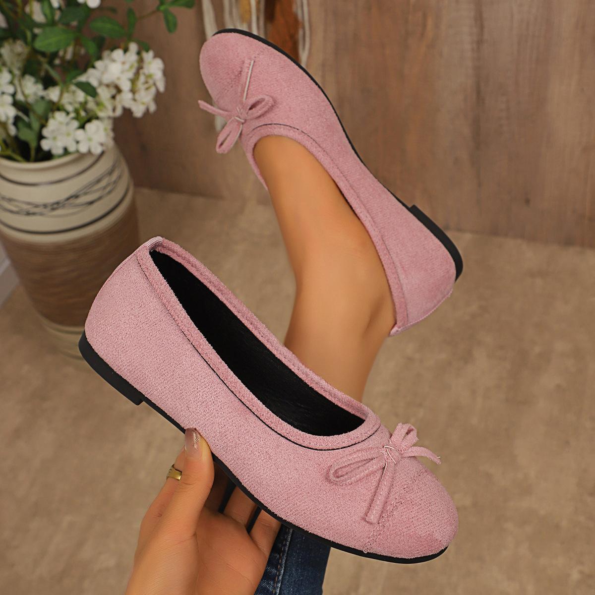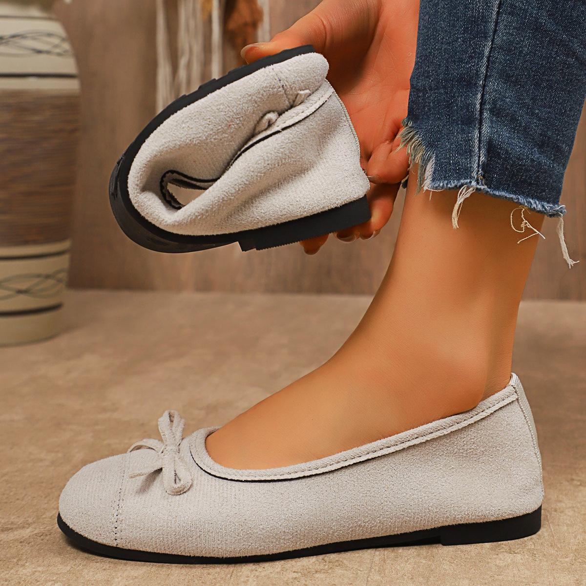 Sapatilhas Tamanho Grande Transfronteiriças para Mulheres 2025 Primavera Novas Europeias e Americanas Laço Boca Rasa Slip-On Confortáveis Sapatos Tipo Mocassim Tamanho 43