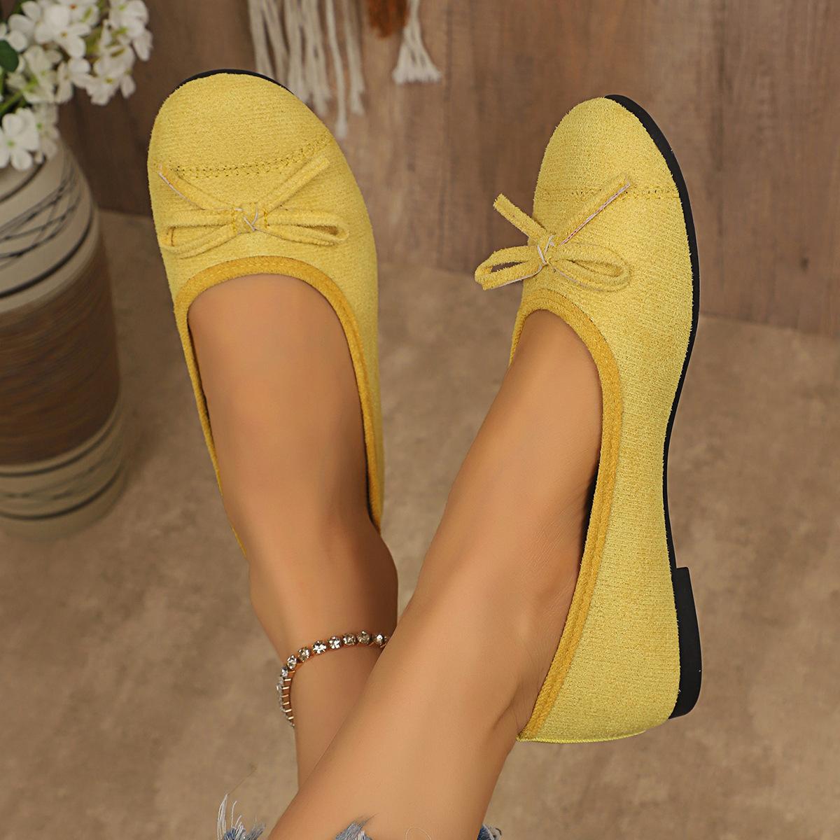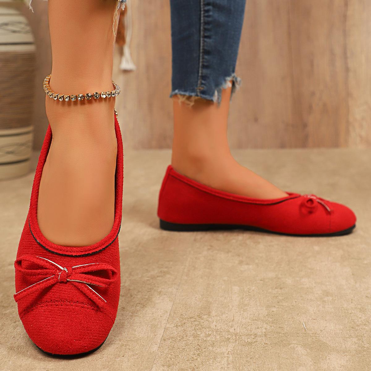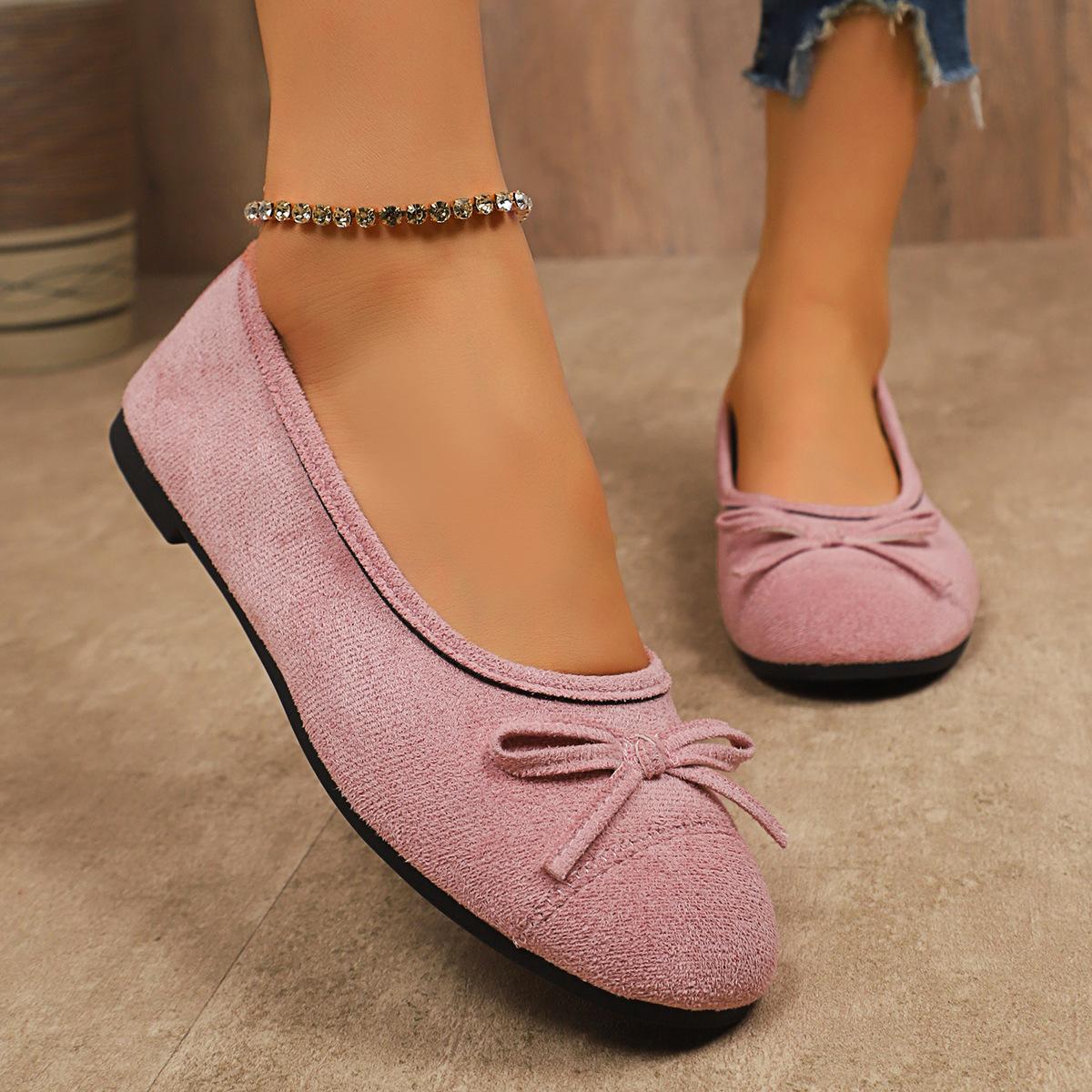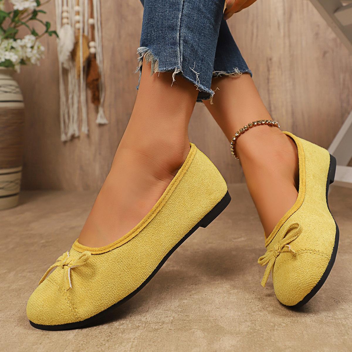 Sapatilhas Tamanho Grande Transfronteiriças para Mulheres 2025 Primavera Novas Europeias e Americanas Laço Boca Rasa Slip-On Confortáveis Sapatos Tipo Mocassim Tamanho 43
