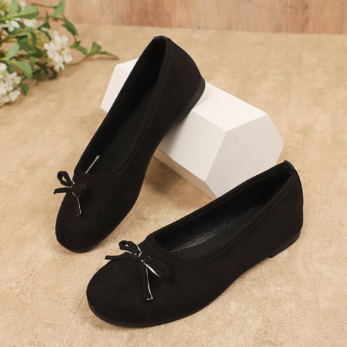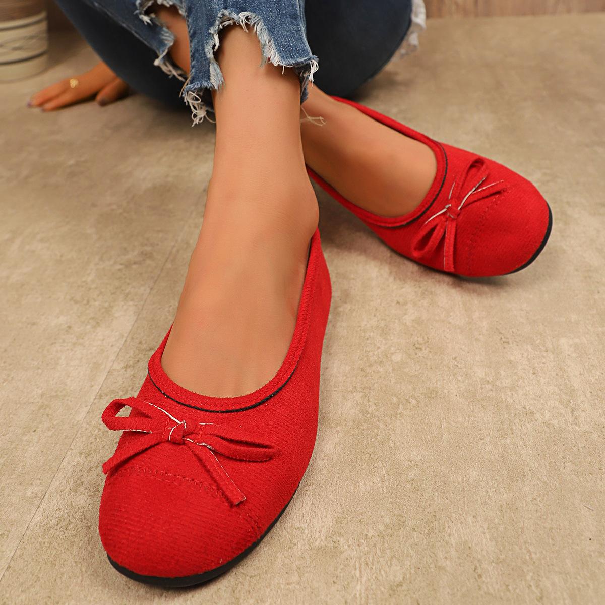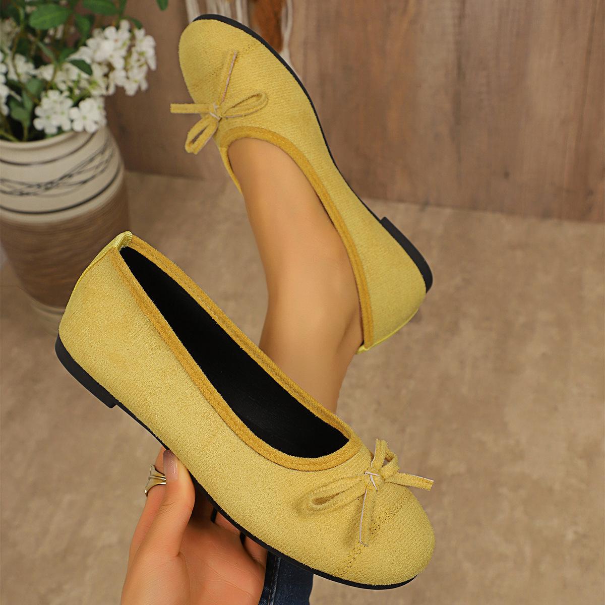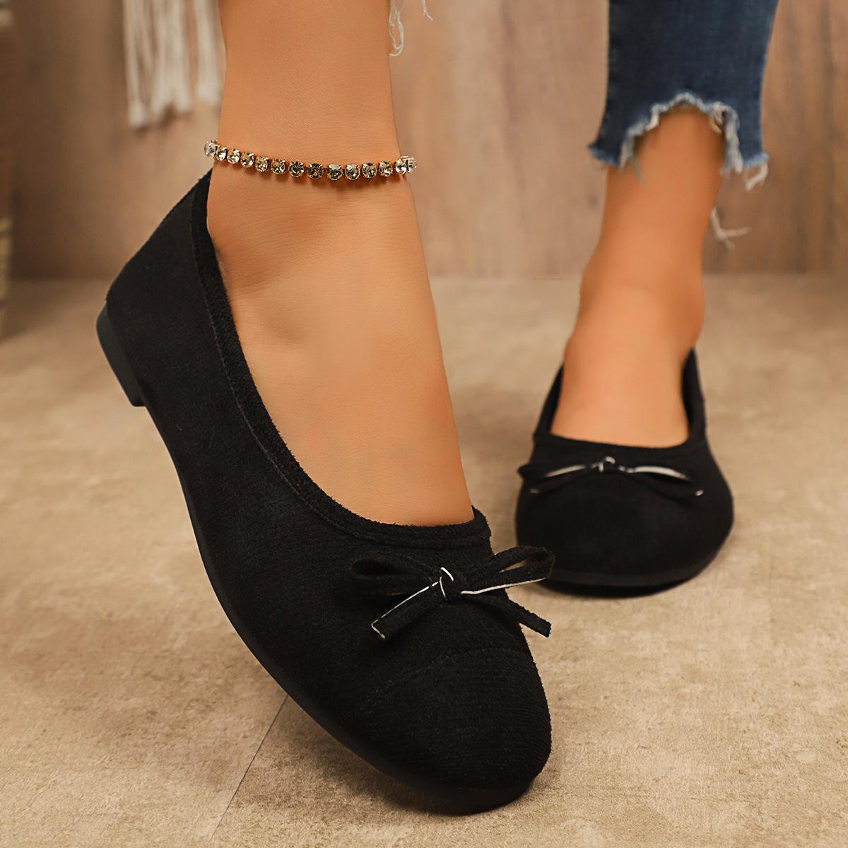 Sapatilhas Tamanho Grande Transfronteiriças para Mulheres 2025 Primavera Novas Europeias e Americanas Laço Boca Rasa Slip-On Confortáveis Sapatos Tipo Mocassim Tamanho 43