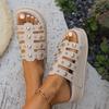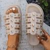 Sapatos Femininos com Rebites Novos Chinelos Sandálias de Verão Chinelos Femininos de Couro Casuais Respiráveis Chinelos Femininos Salto Médio Versátil