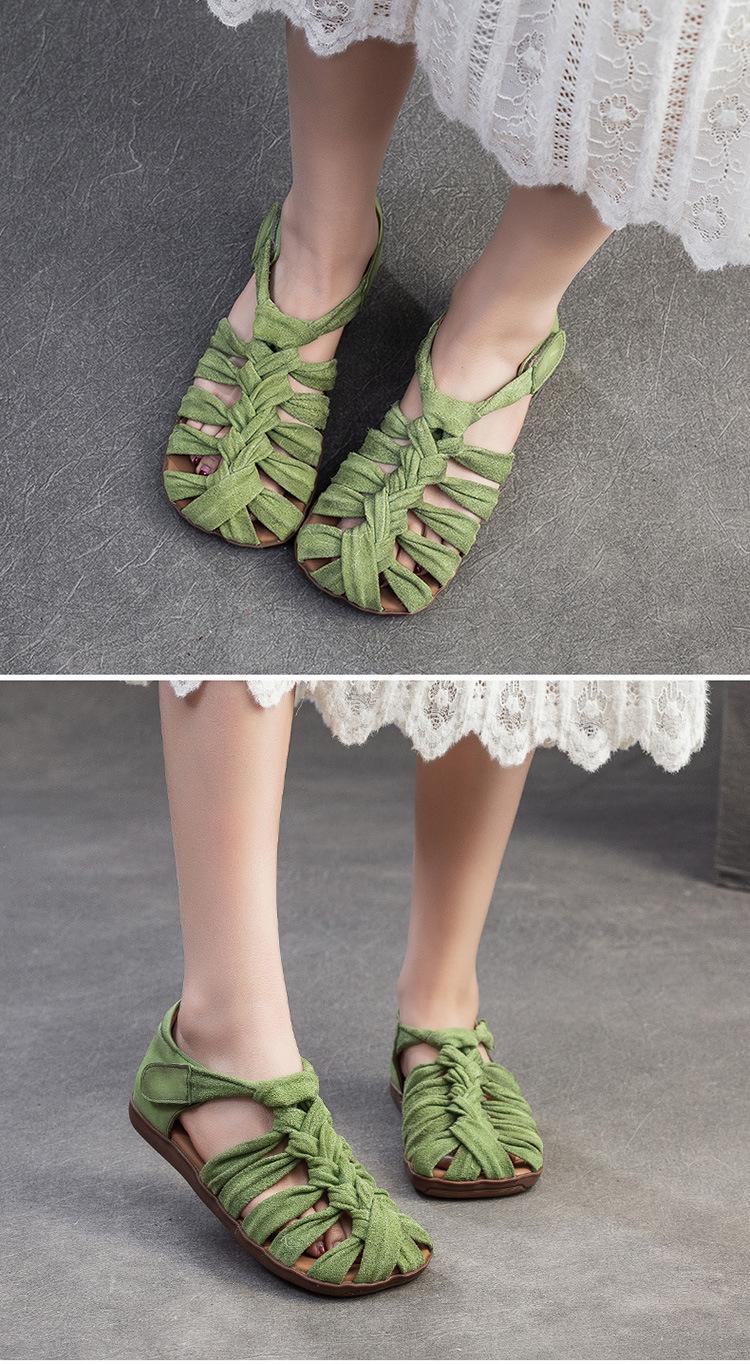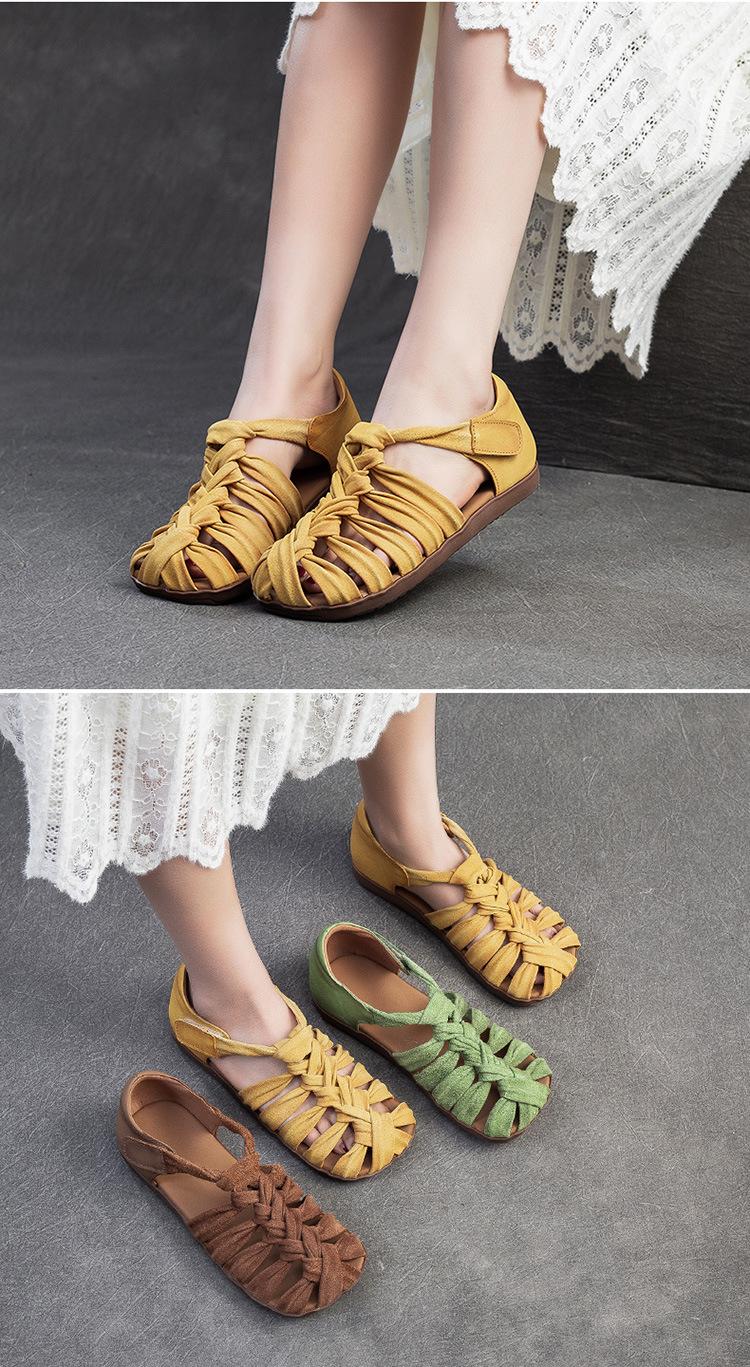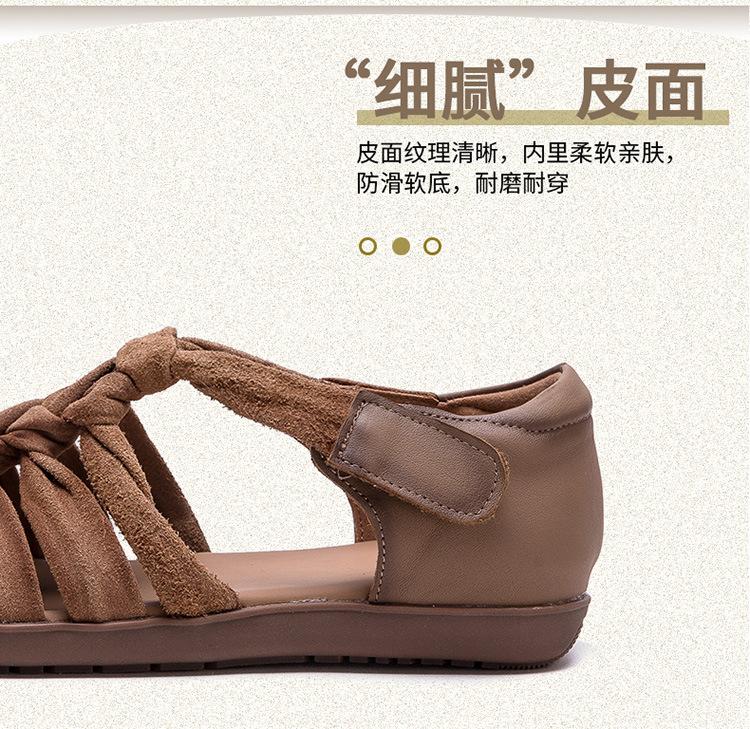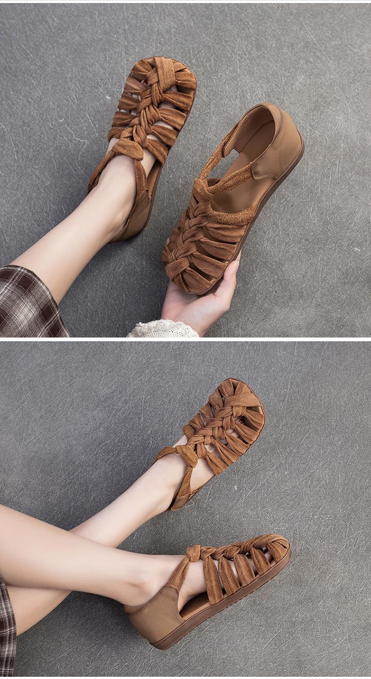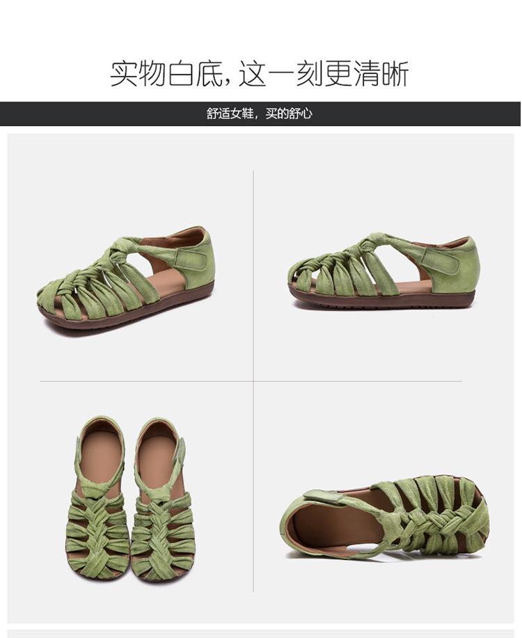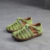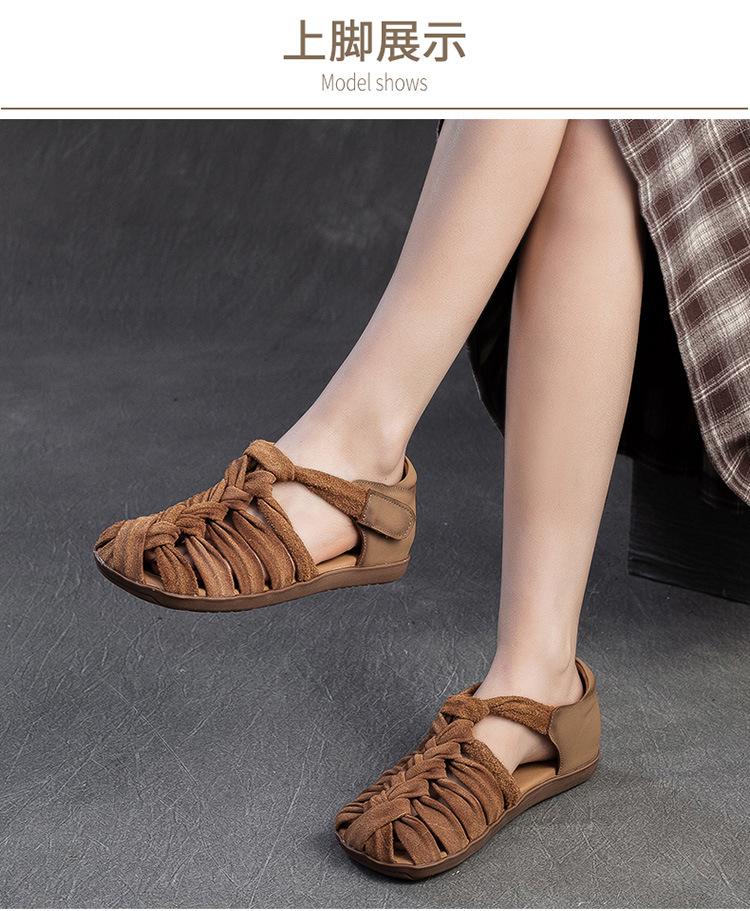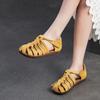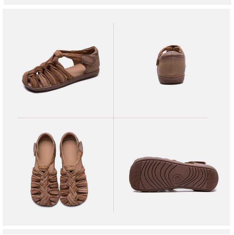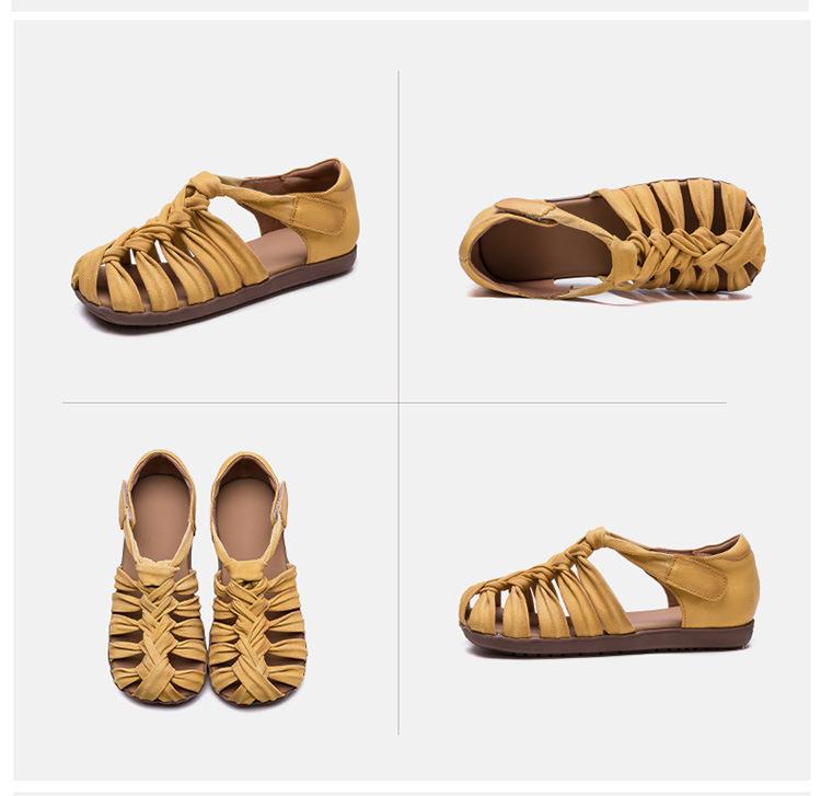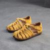 Sandálias Rasteirinhas Vazadas e Respiráveis de Verão 2025 Shanghai Jiejie, Tecidas à Mão, com Velcro, Estilo Romano, Sapatos Femininos