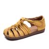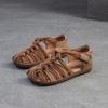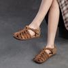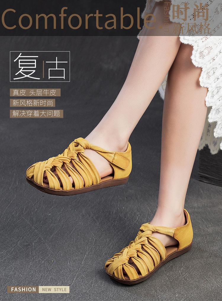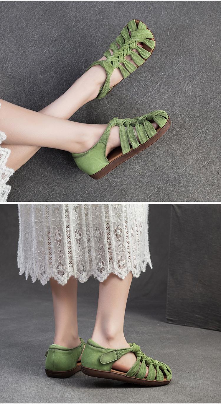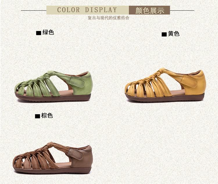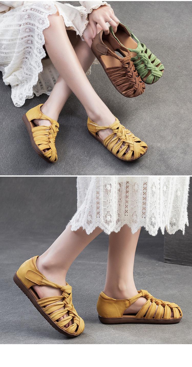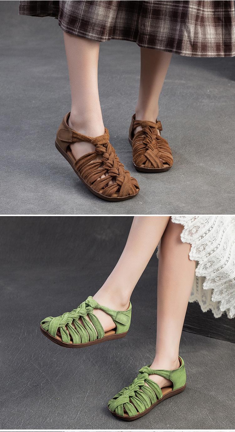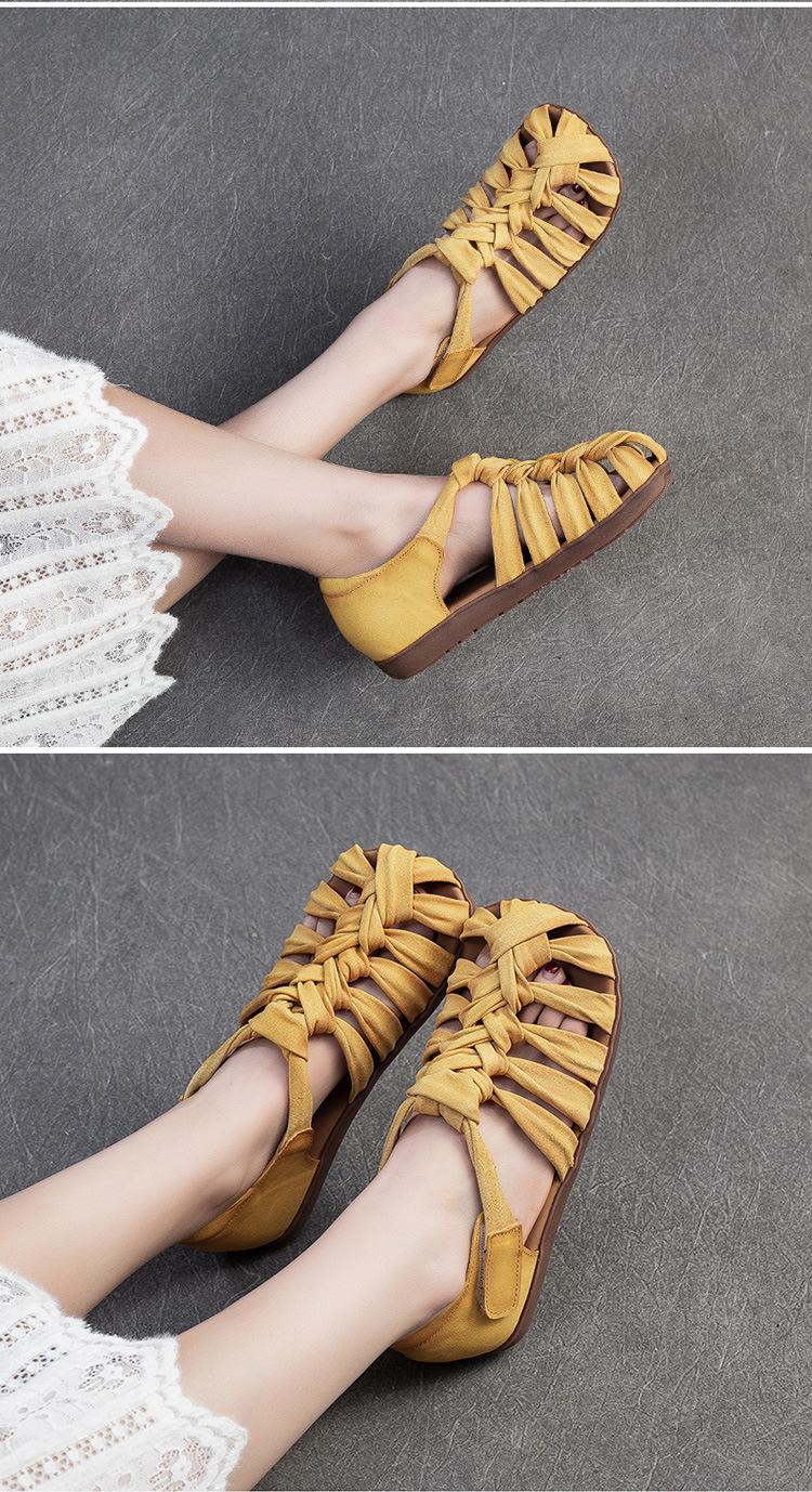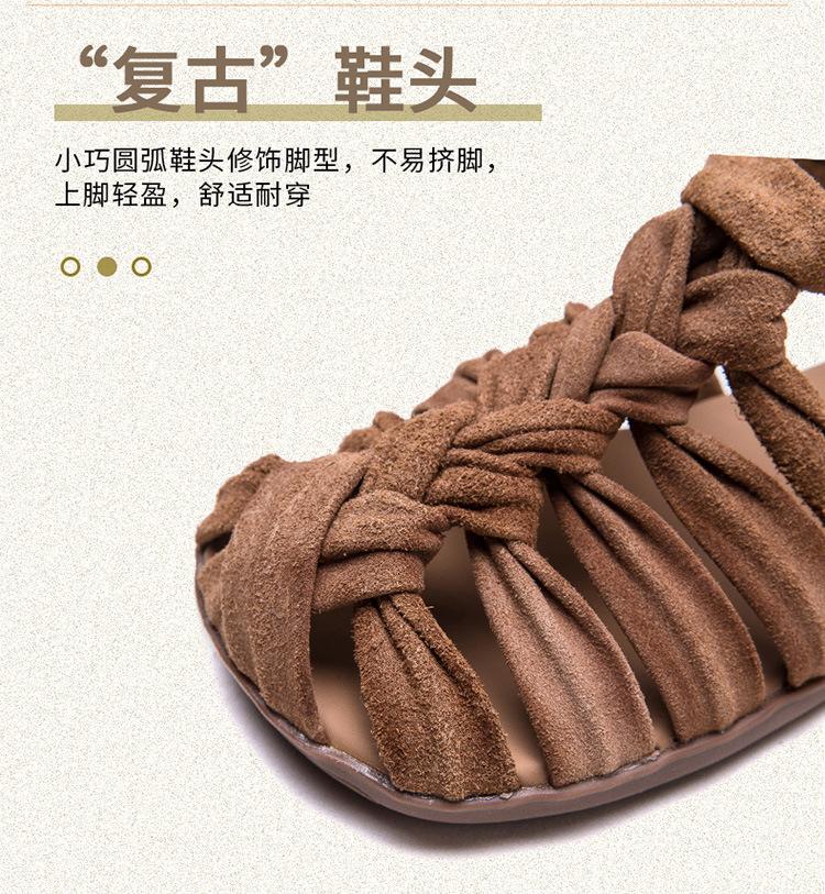 Sandálias Rasteirinhas Vazadas e Respiráveis de Verão 2025 Shanghai Jiejie, Tecidas à Mão, com Velcro, Estilo Romano, Sapatos Femininos