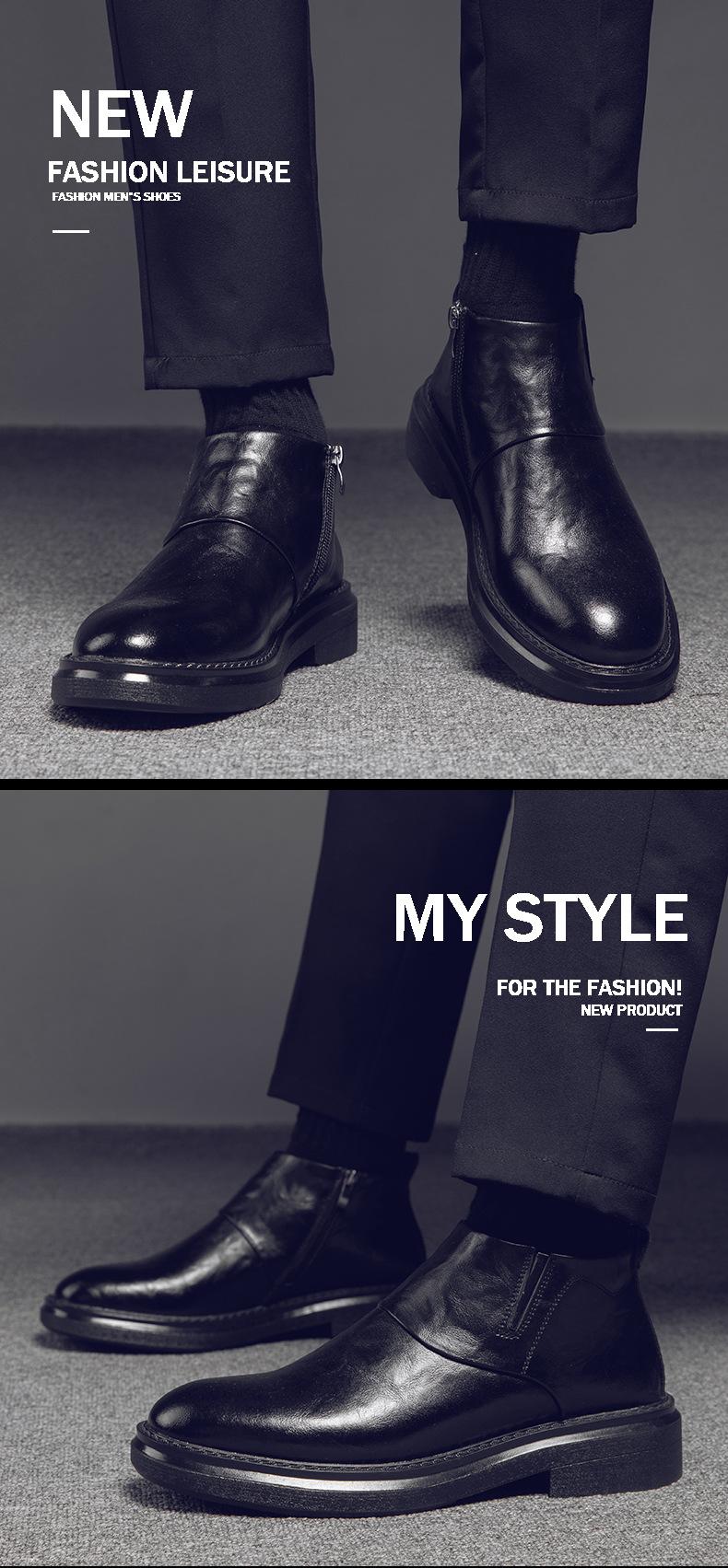 Botas Martin Masculinas Cano Médio Botas de Tornozelo Outono e Inverno Novo Britânico Vintage Sapatos de Couro forrado com lã Botas Chelsea Masculinas