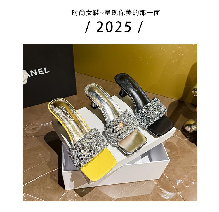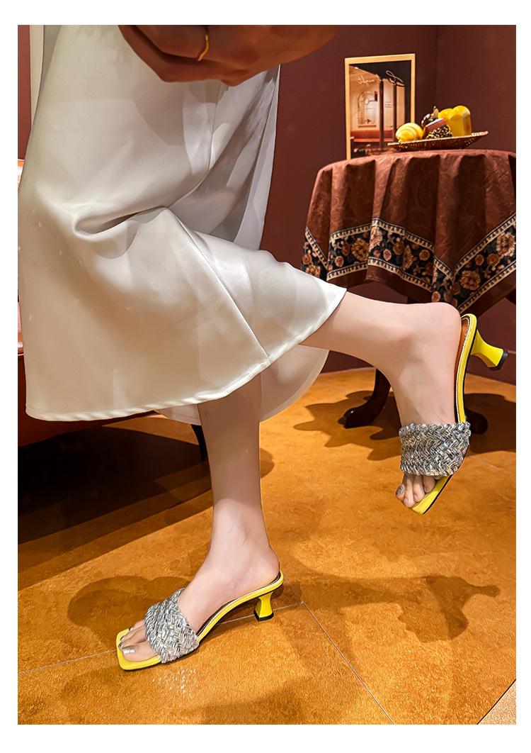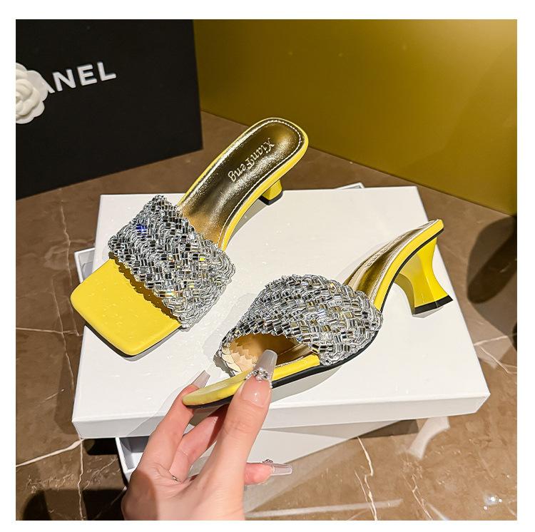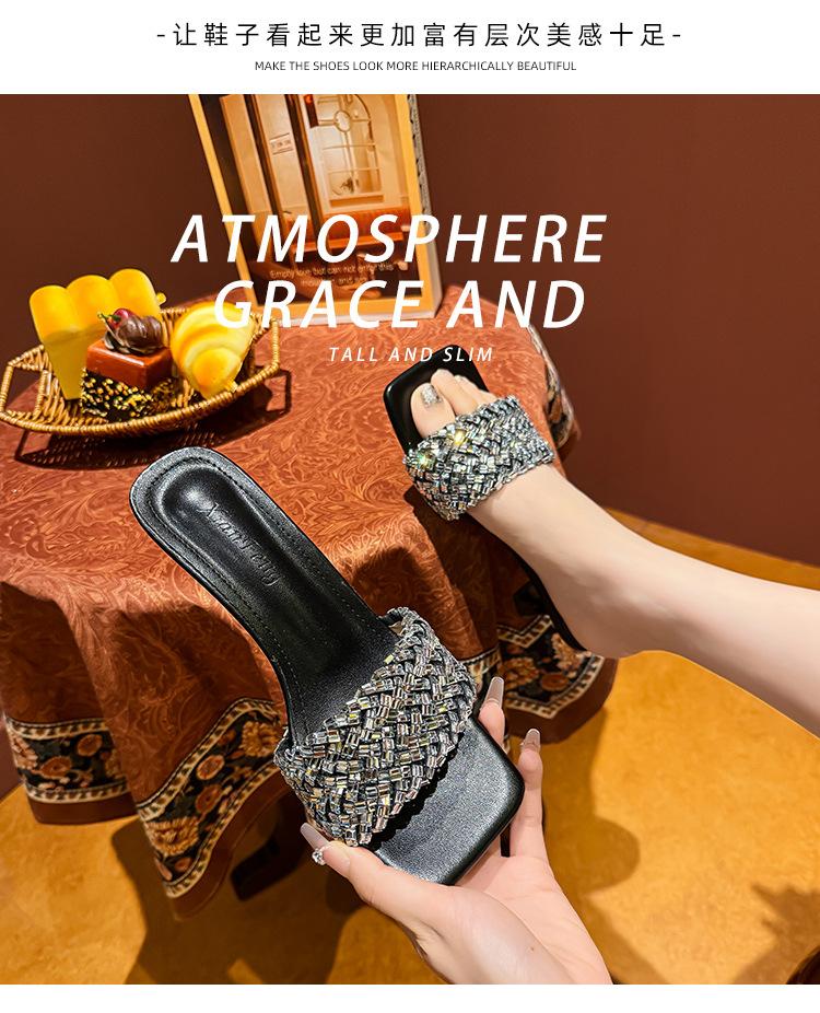 Sandálias Pequenas Rasteirinhas Francesas com Strass para Mulheres Usarem ao Ar Livre, Requintado Novo Estilo de Verão 2024, High-End