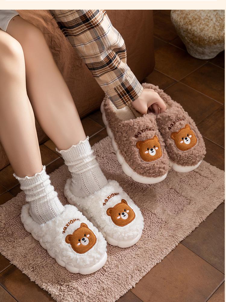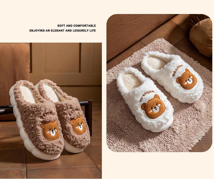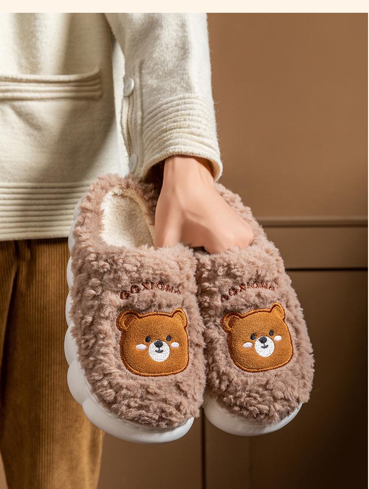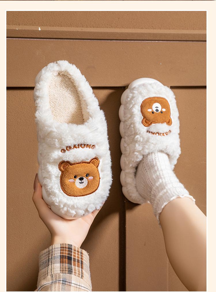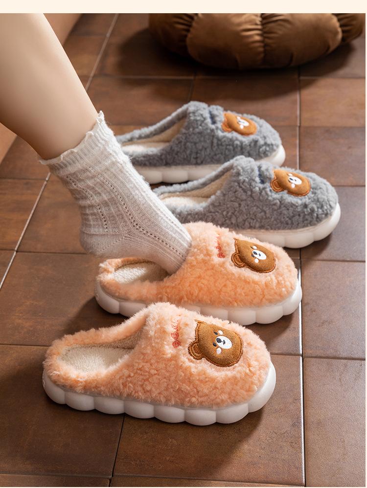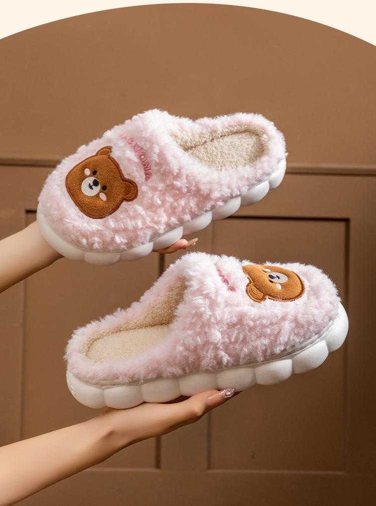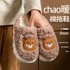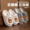 Pantufas Pós-Parto com Logo de Cabeça de Urso de Pelúcia Mulher Outono Inverno Casal Casual Casa Algodão Quentes Confortáveis Domésticas Masculinas de Algodão