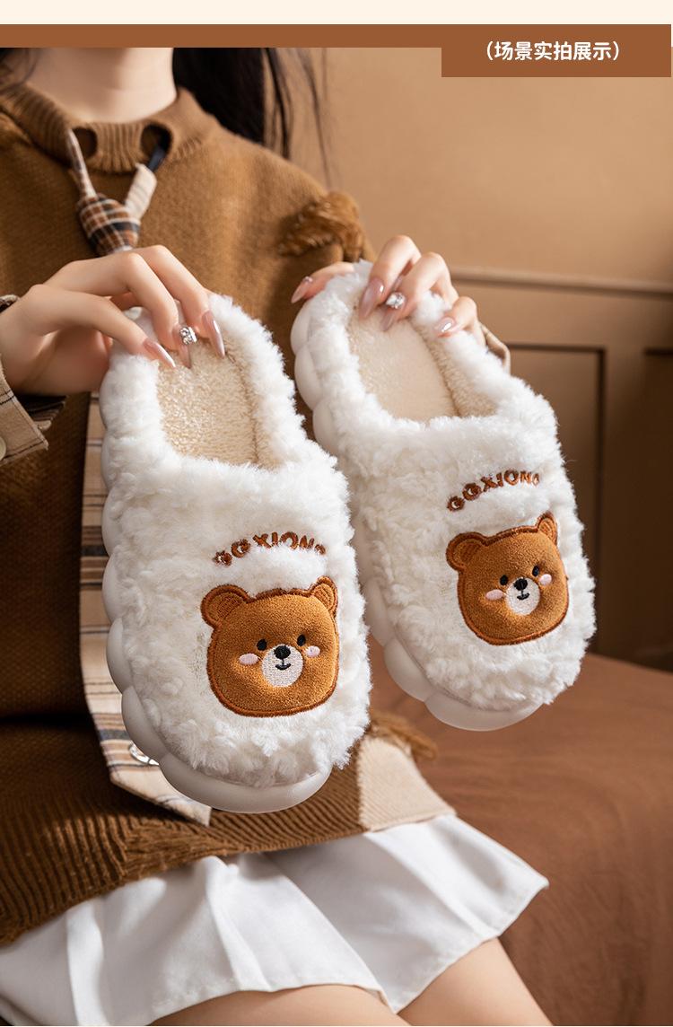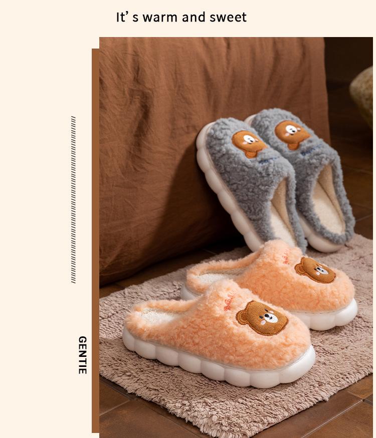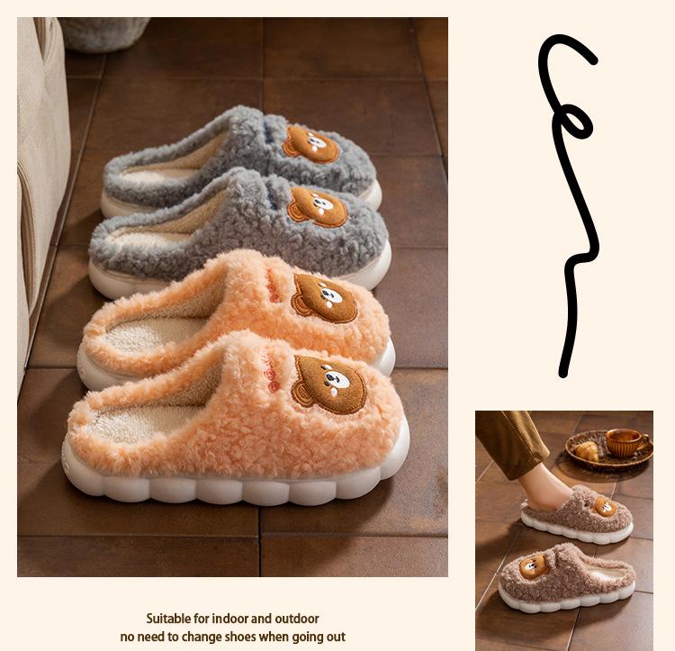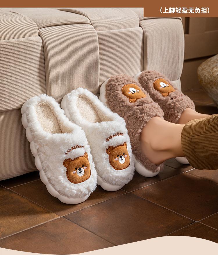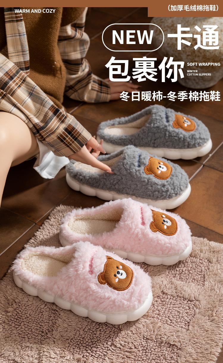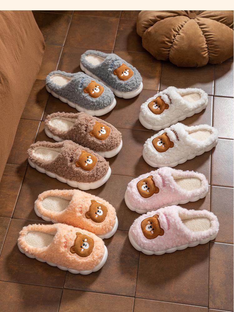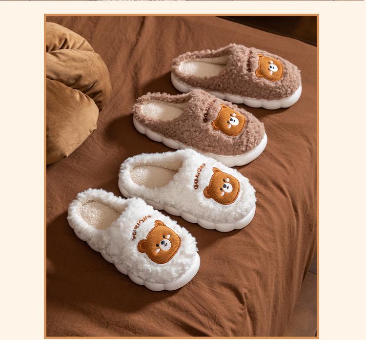 Pantufas Pós-Parto com Logo de Cabeça de Urso de Pelúcia Mulher Outono Inverno Casal Casual Casa Algodão Quentes Confortáveis Domésticas Masculinas de Algodão