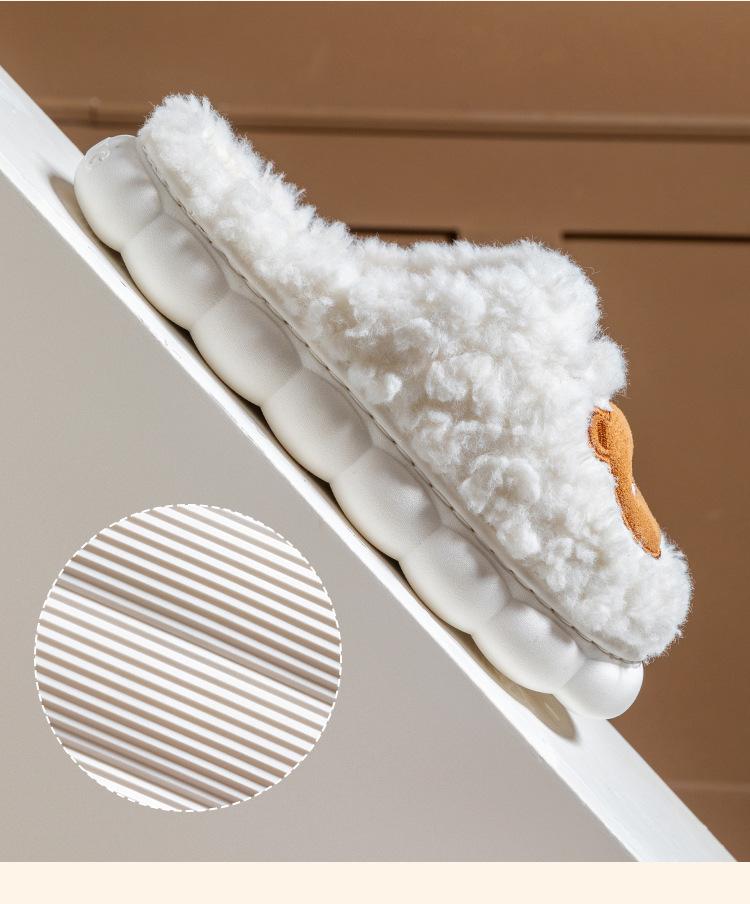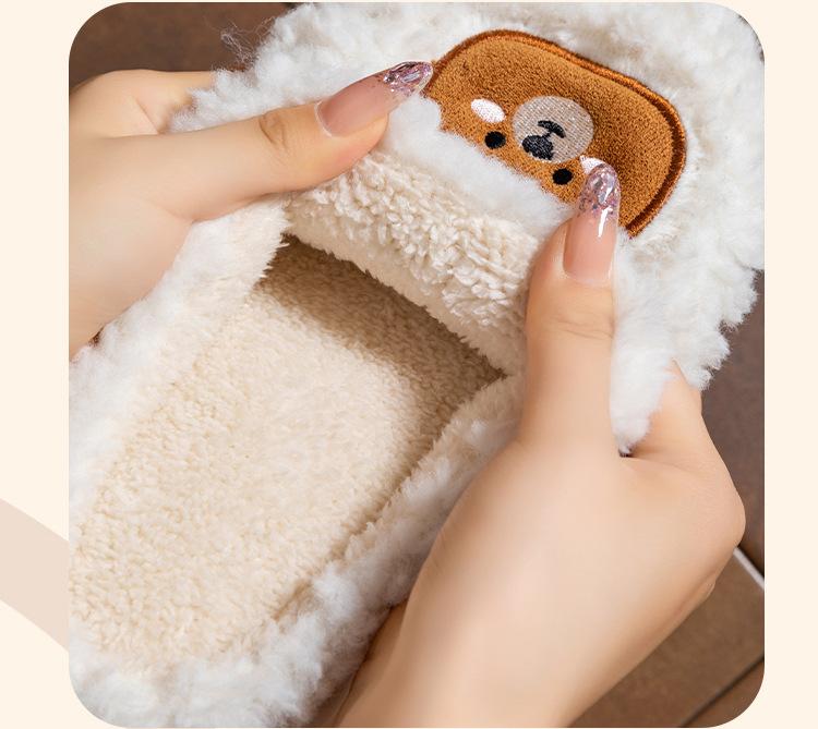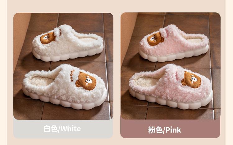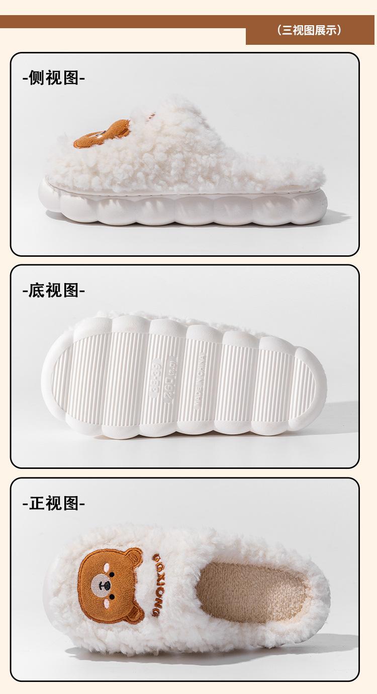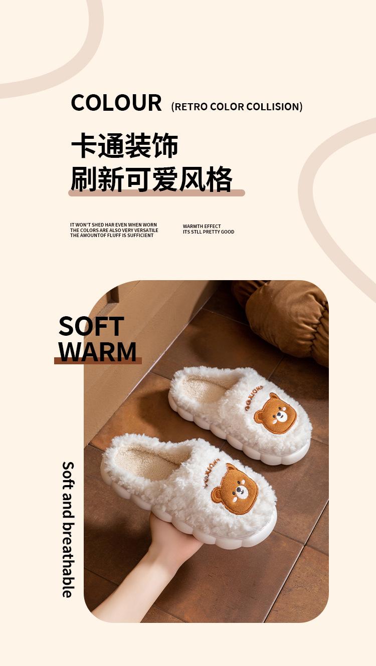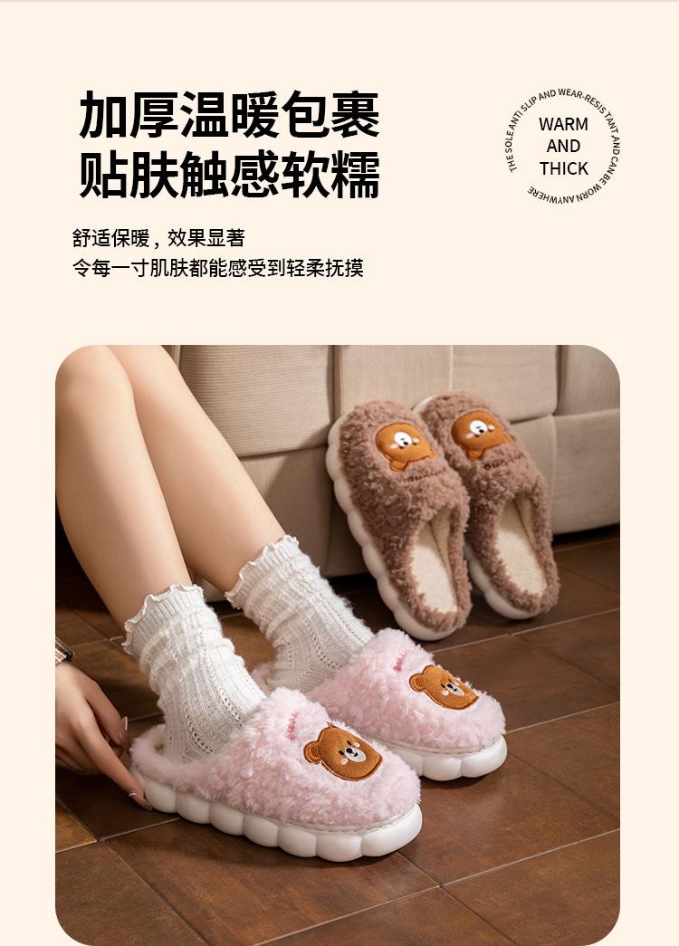 Pantufas Pós-Parto com Logo de Cabeça de Urso de Pelúcia Mulher Outono Inverno Casal Casual Casa Algodão Quentes Confortáveis Domésticas Masculinas de Algodão