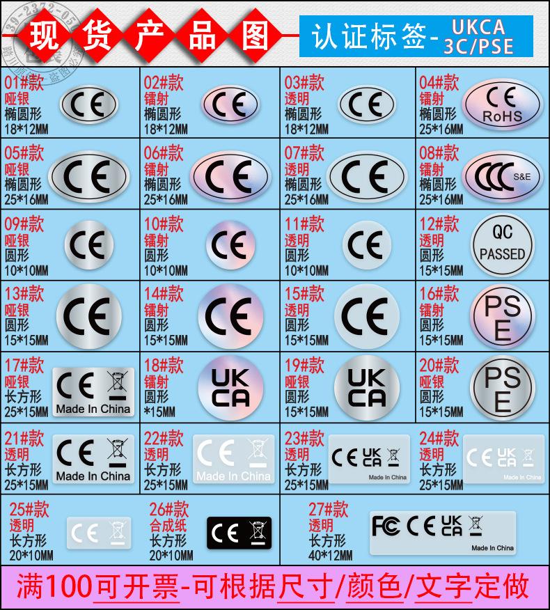 Label customization, CE label 15*15mm spot, UKCA label 15*15mm spot