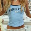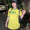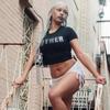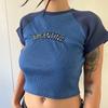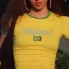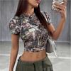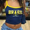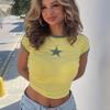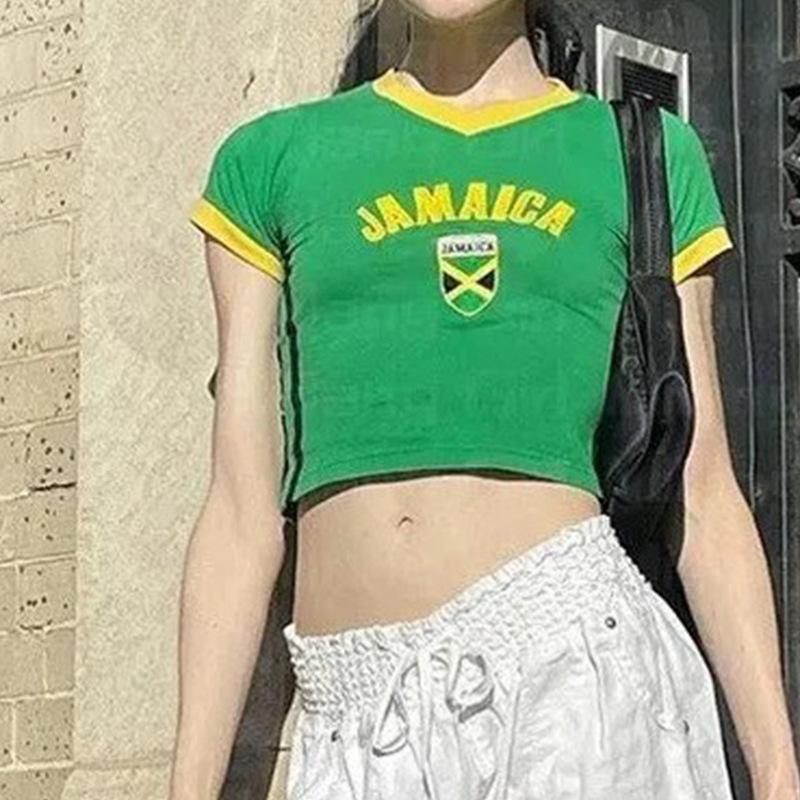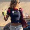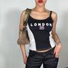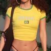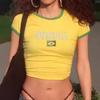 Top YK Feminino Slim-fit Europeu e Americano Sexy Transfronteiriço Camiseta Roupa Verão Umbigo Letras Rua Estilo Curto