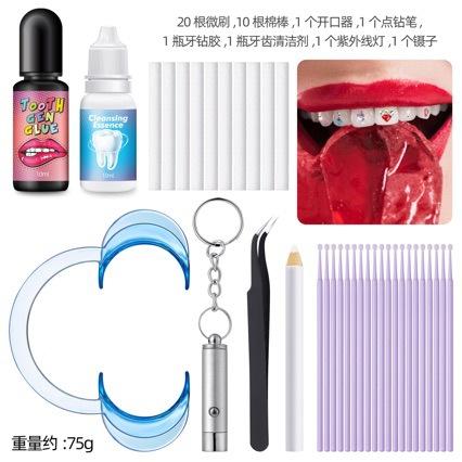 Suit, Dental drill glue, Cleaner, Opener, Uv lamp, Micro brush, Cotton swab, Tweezers, Dot pen