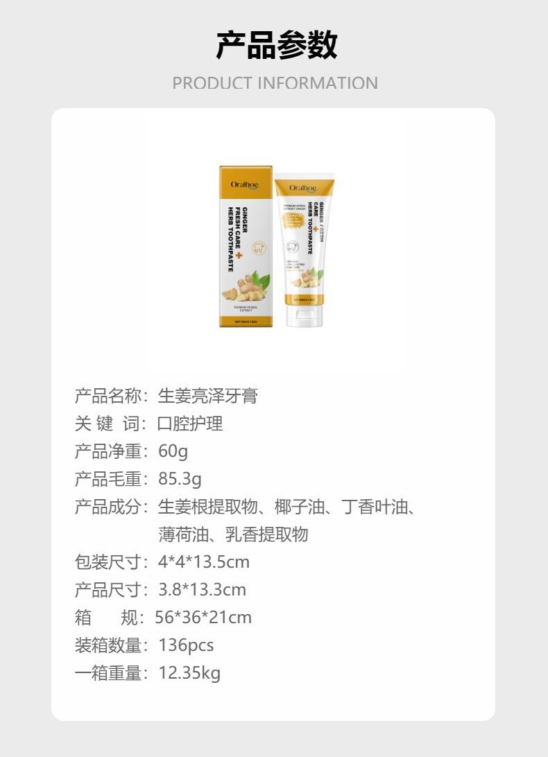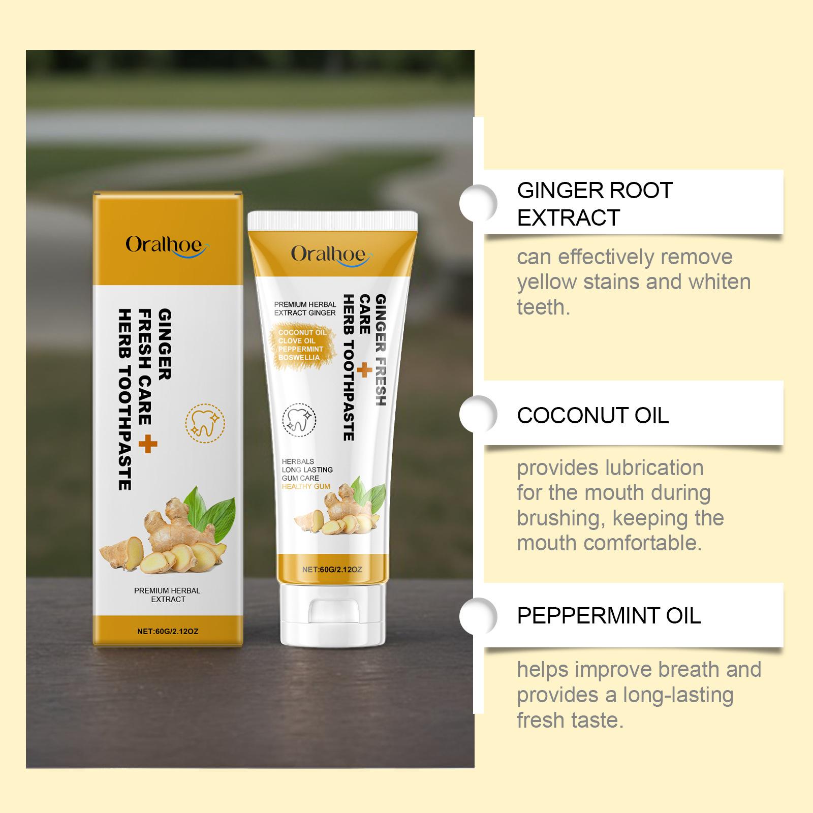 Pasta de Dentes Oralhoe Ginger Shine Cuida Suavemente das Gengivas, Limpa e Refresca os Dentes