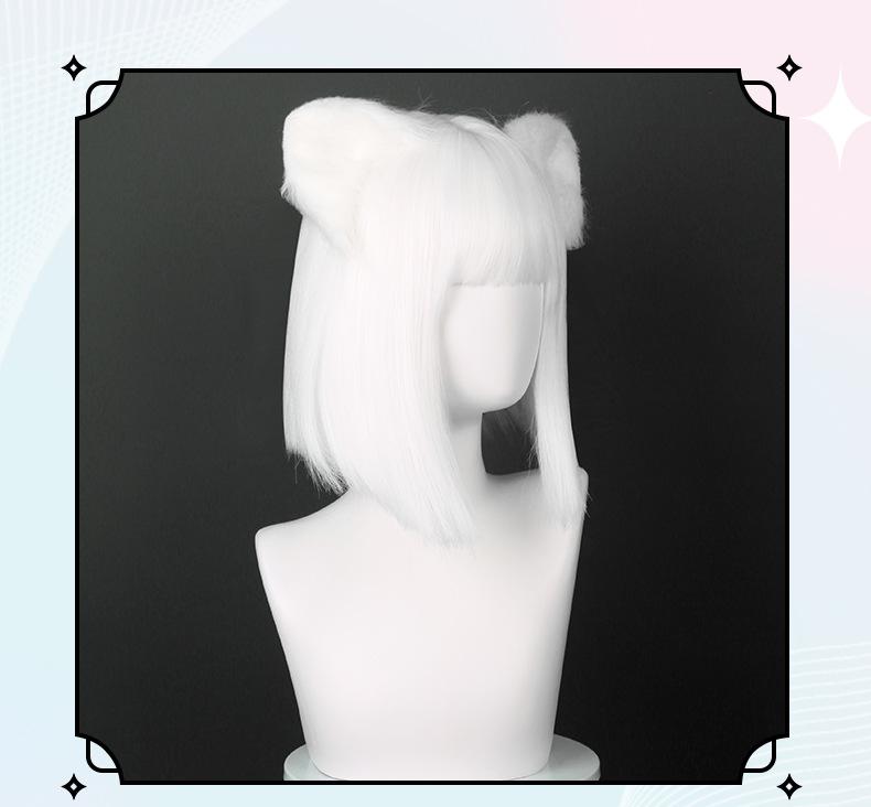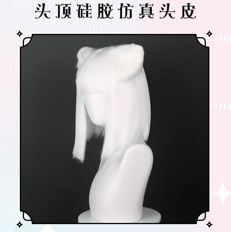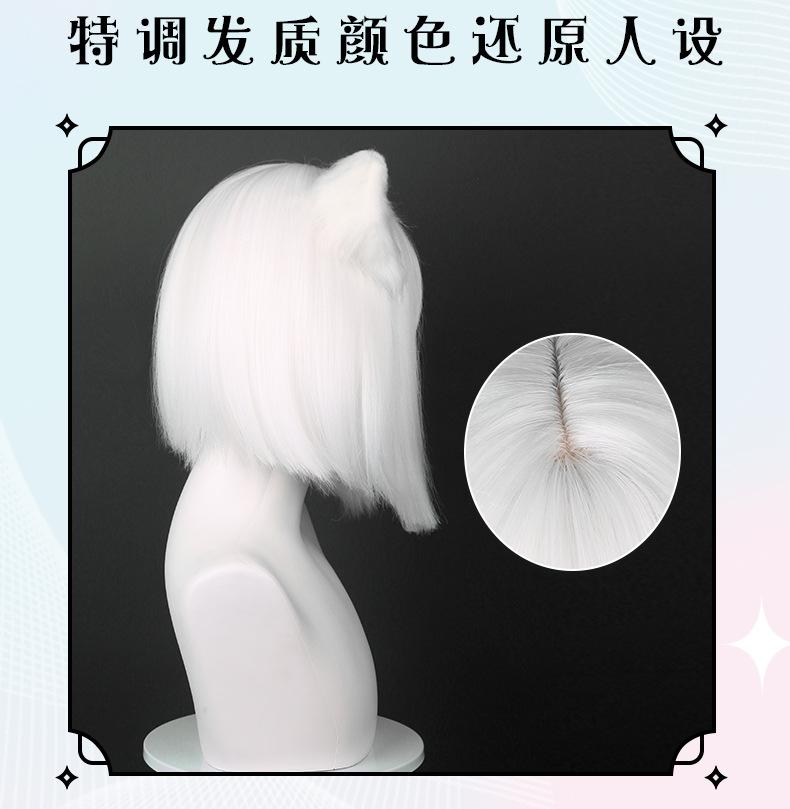 Cardamomo Peruca de Cosplay Não Humana Setembro Peruca Curta Branca Pura Mista Fofa Couro Cabeludo Sintético