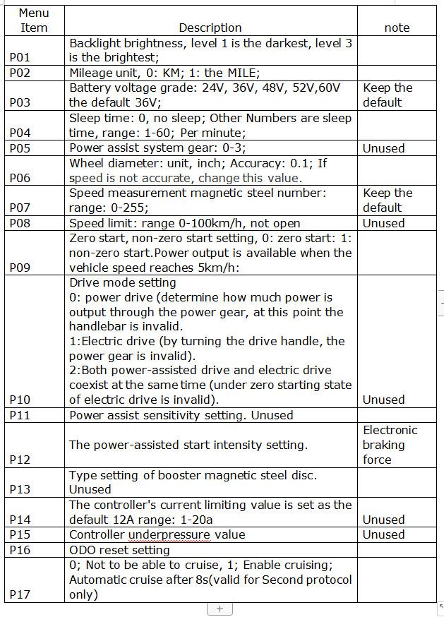 Tensão: 24V/36V/48V/52V/60V/72V (tensão ajustável P03, padrão 36V)