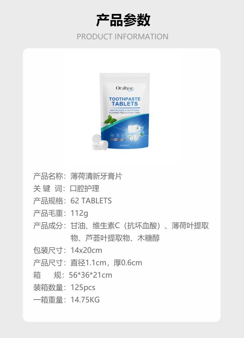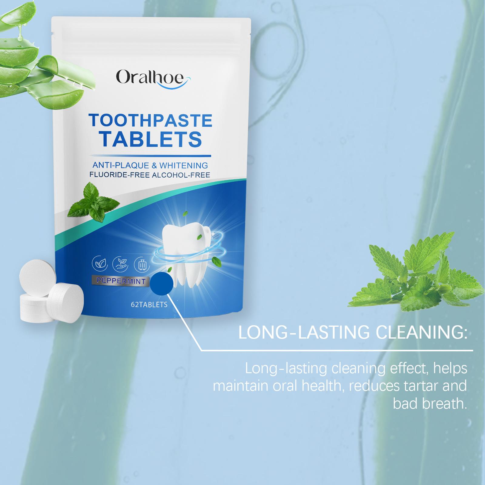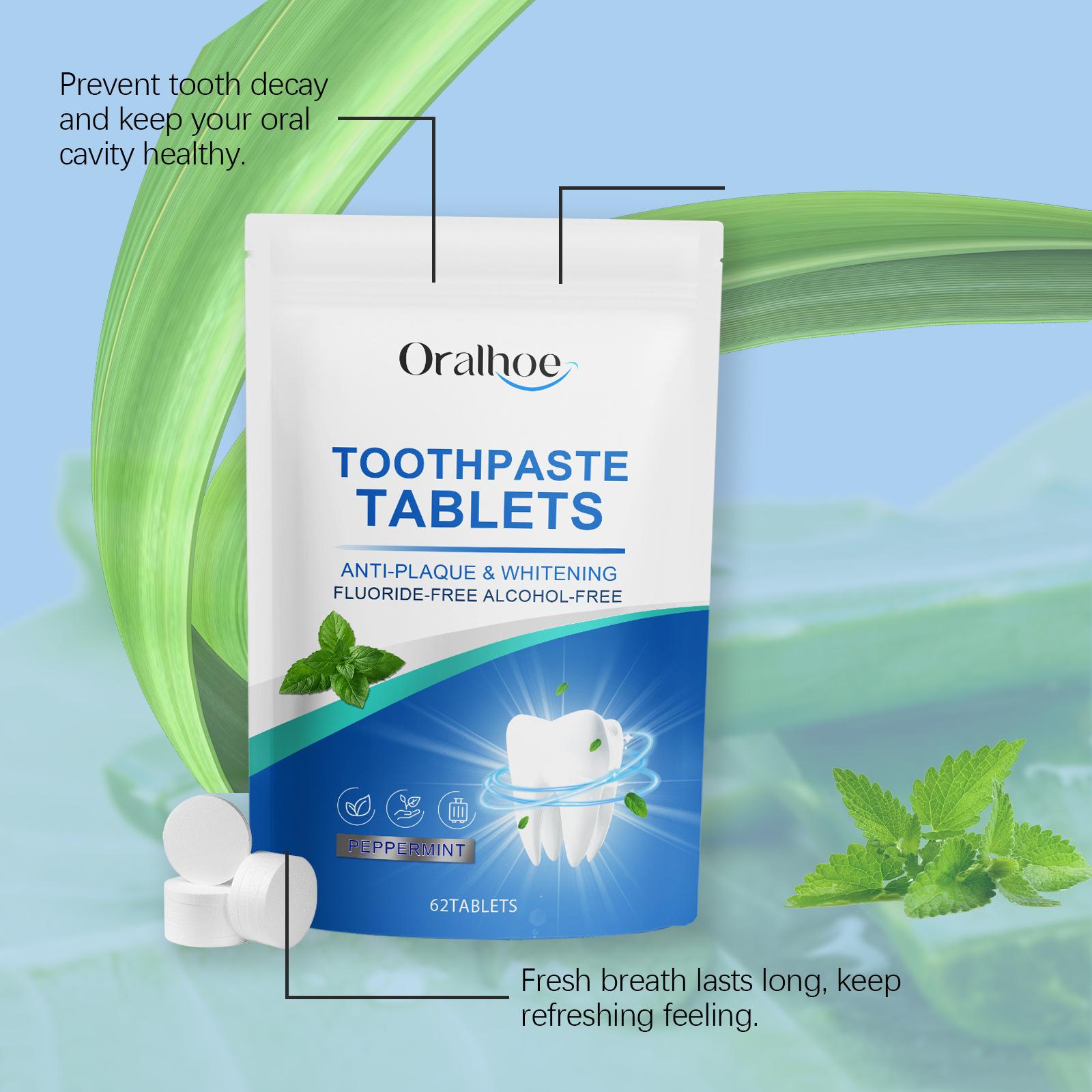 Comprimidos de Pasta de Dente Oralhoe Menta Fresca Limpam Manchas nos Dentes Limpeza Bucal Comprimidos para Cuidado da Superfície dos Dentes