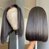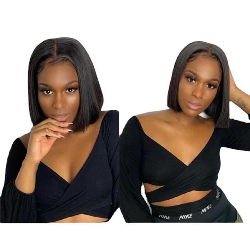 Peruca de Renda Frontal Europeia e Americana Feminina Repartição Central Cabelo Curto Liso Estilo BoBo Fibra de Alta Temperatura Perucas da Moda Conjunto Cabeça Inteira