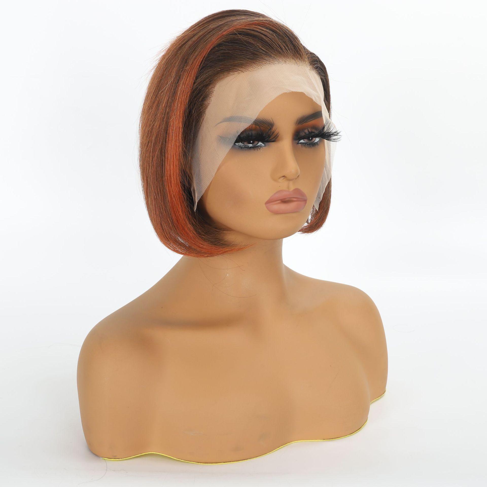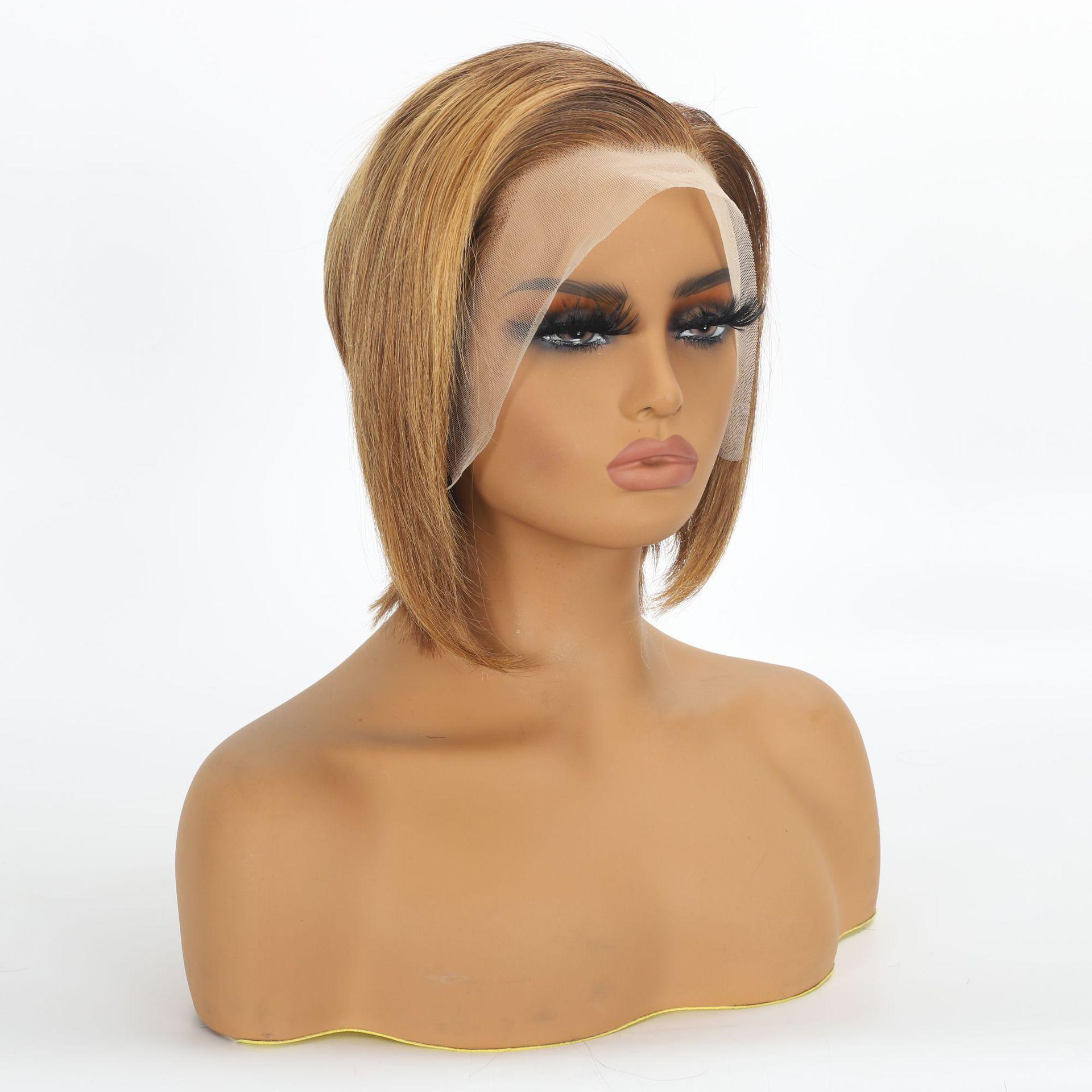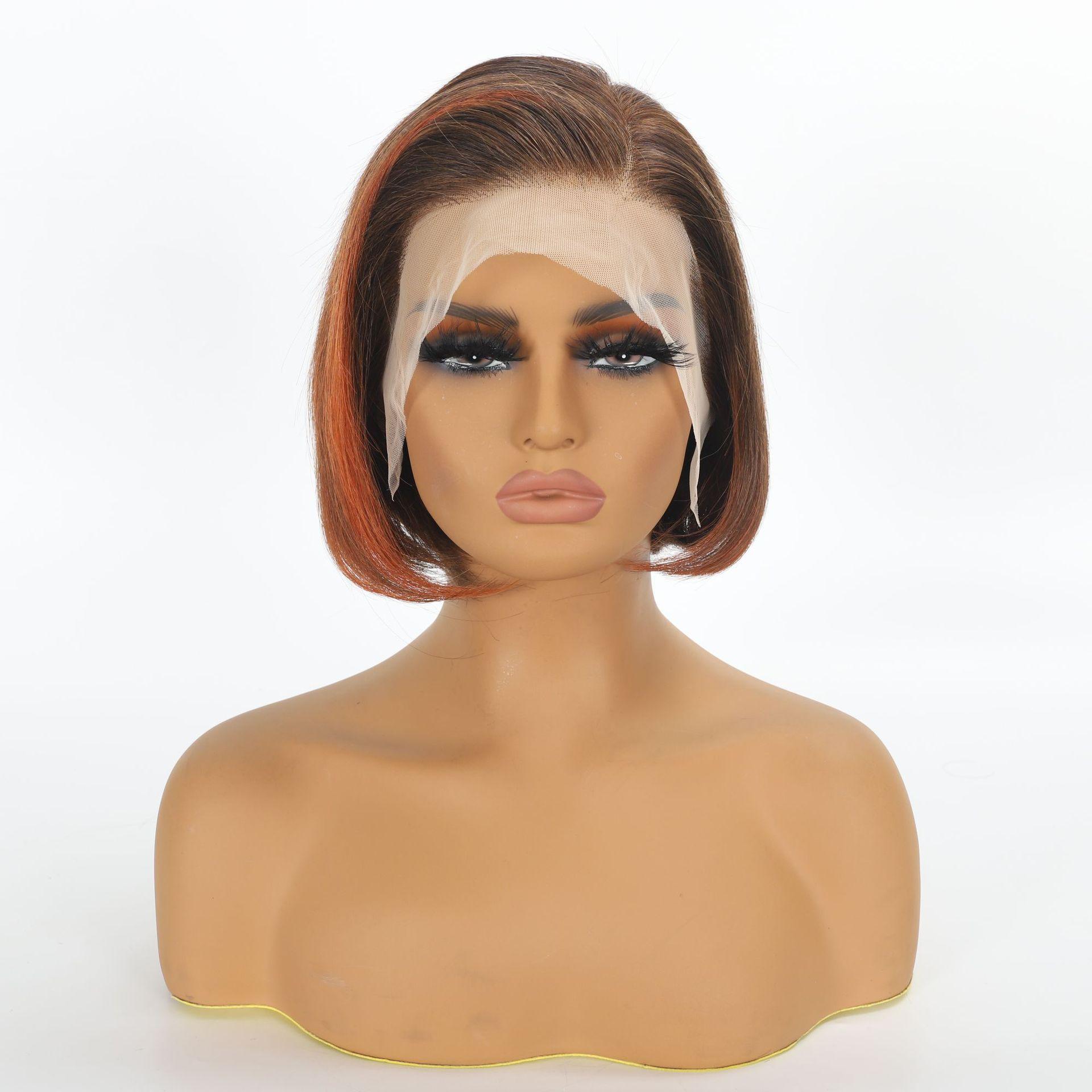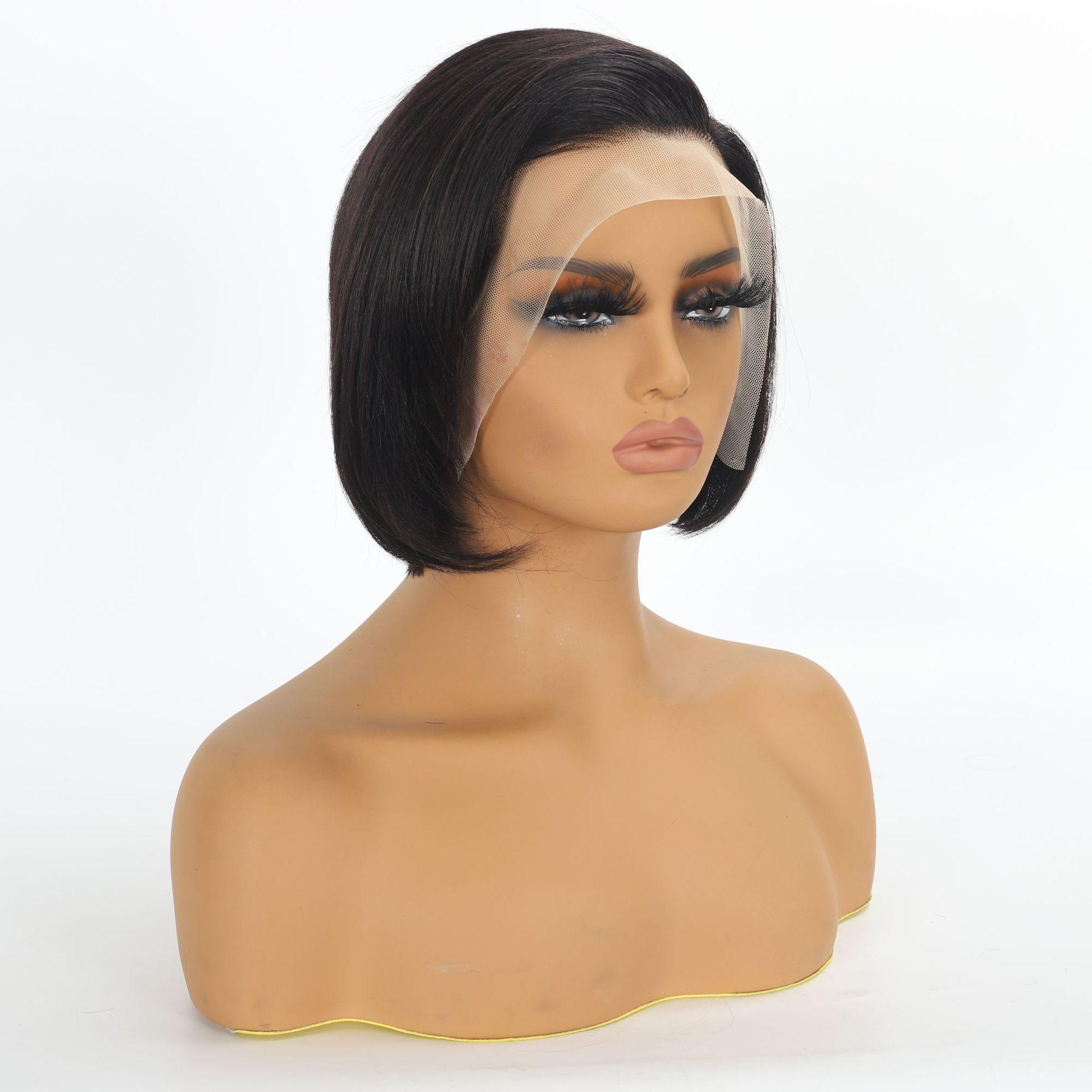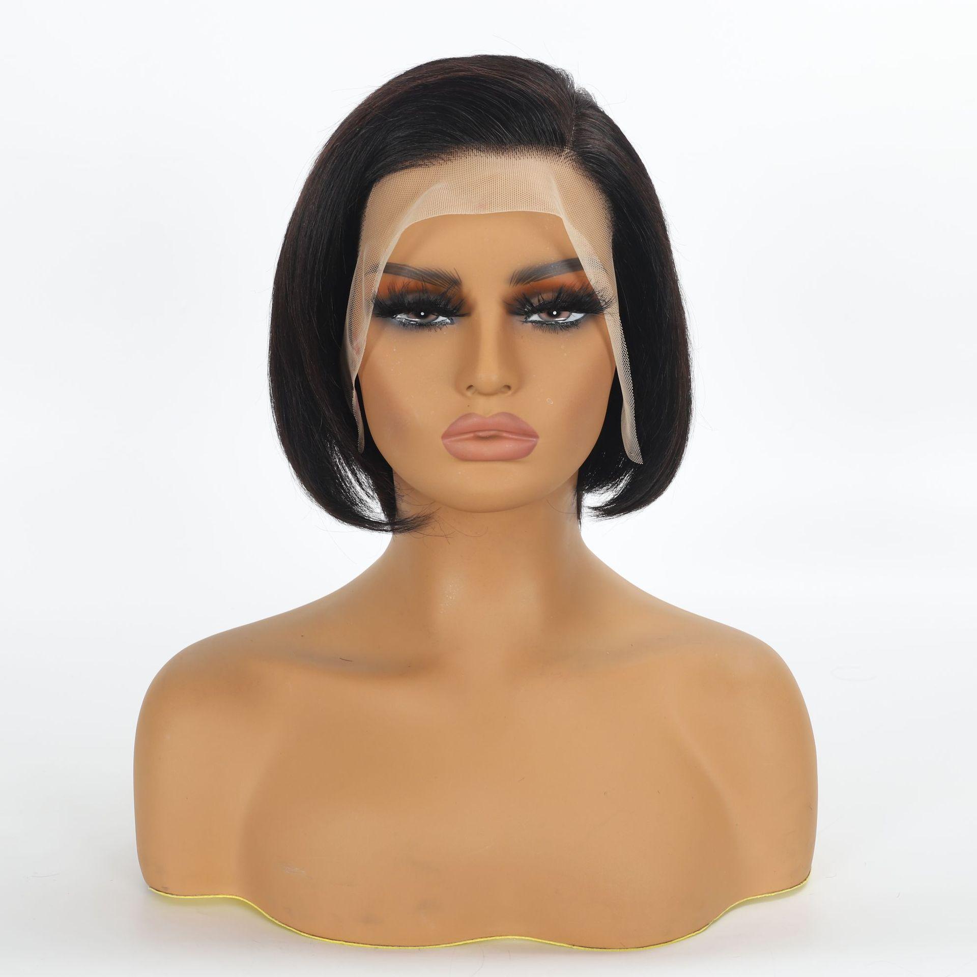 Peruca Europeia e Americana 13*4 Lace Front Estilo Bob Conjunto Completo Cabelo Humano Cabelo Curto Liso Peruca de Cabelo Humano
