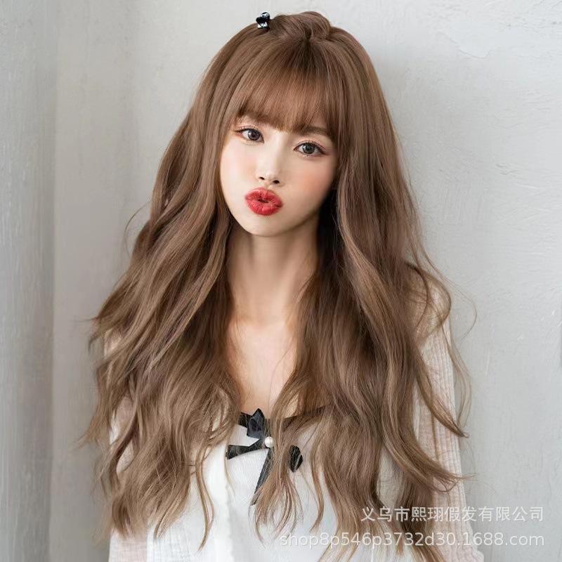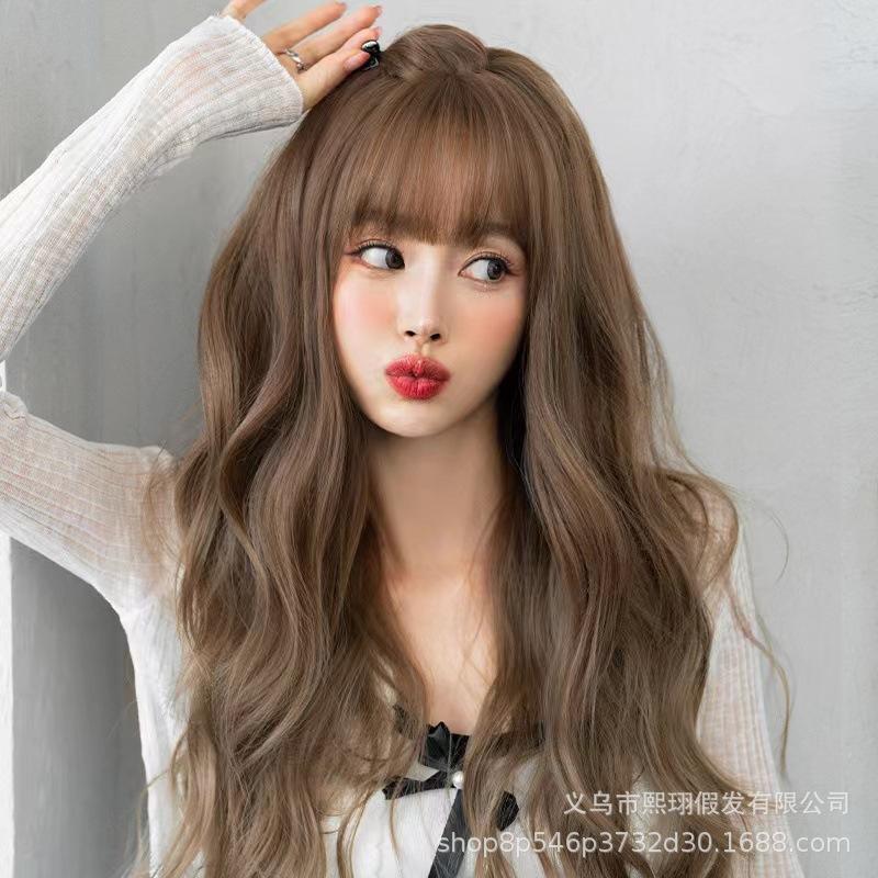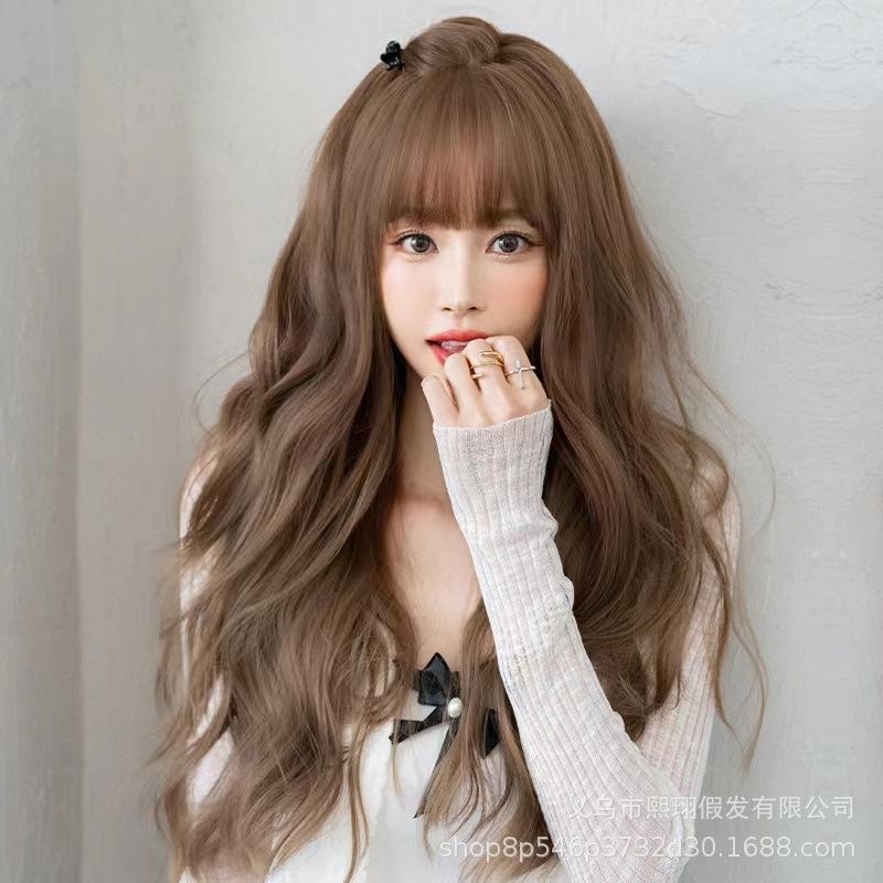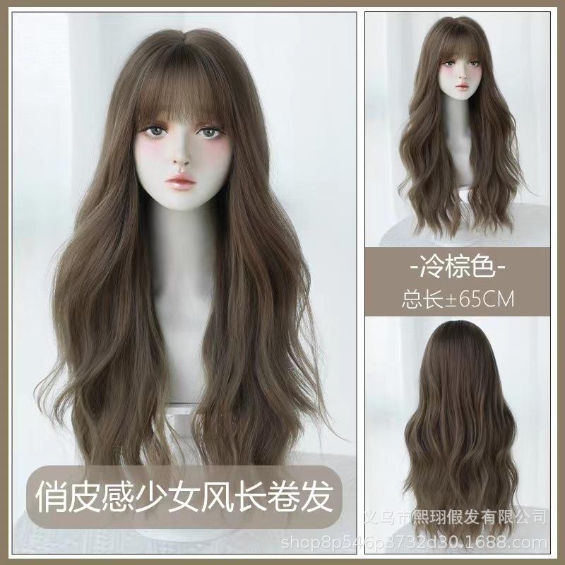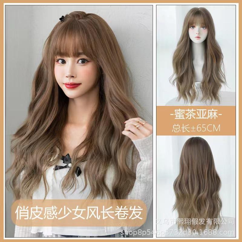 Direto da Fábrica Nova peruca cabelo longo cacheado feminino onda média grande fibra química touca simulação cabeça grande couro em estoque atacado