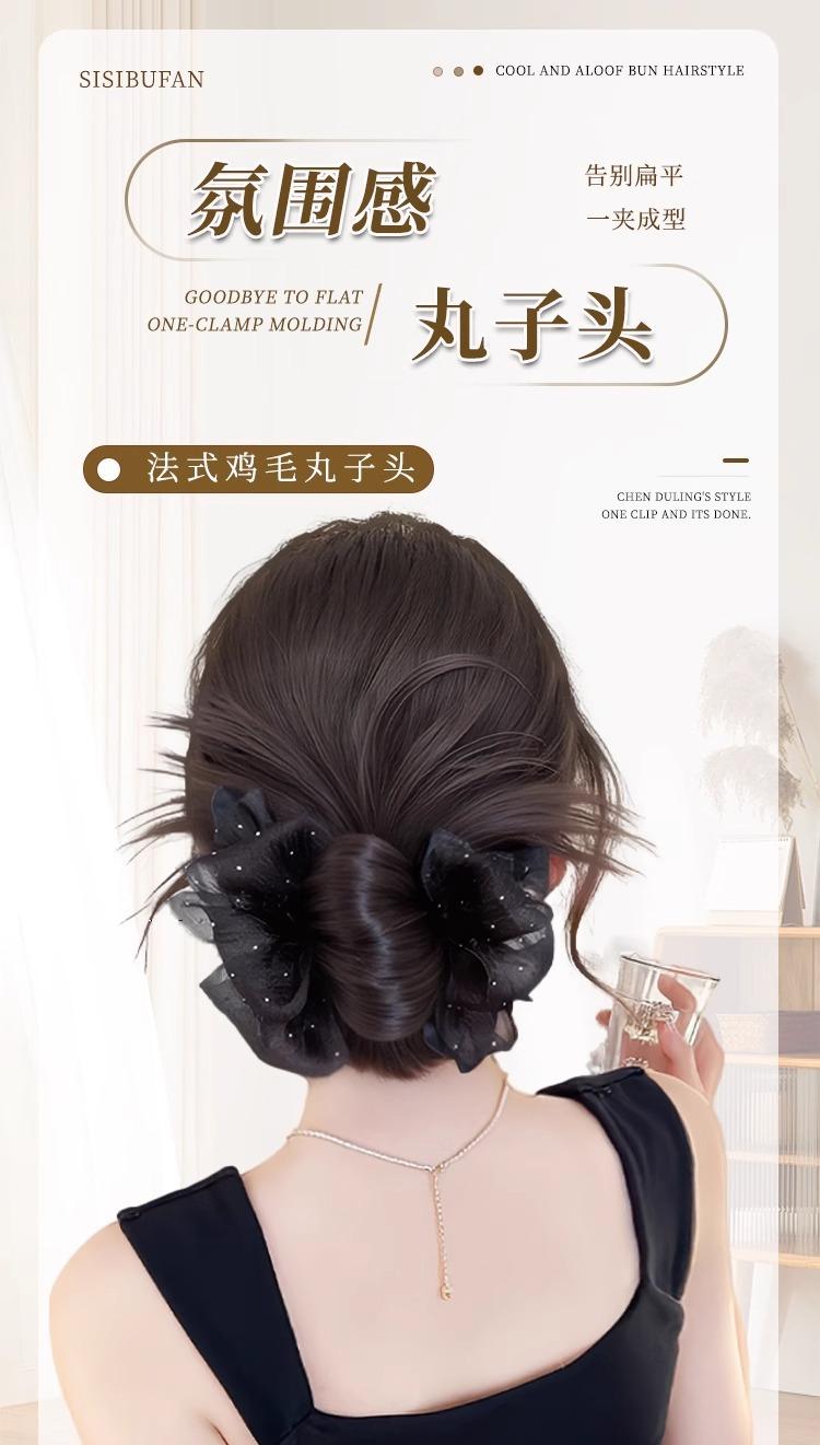 Peruca Coque Baixo com Presilha de Garra, Estilo Borboleta Pena Diamante Esmagado, Novo Design de Coque Fofo para a Parte de Trás da Cabeça
