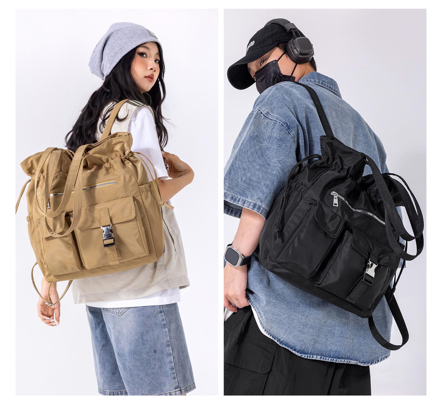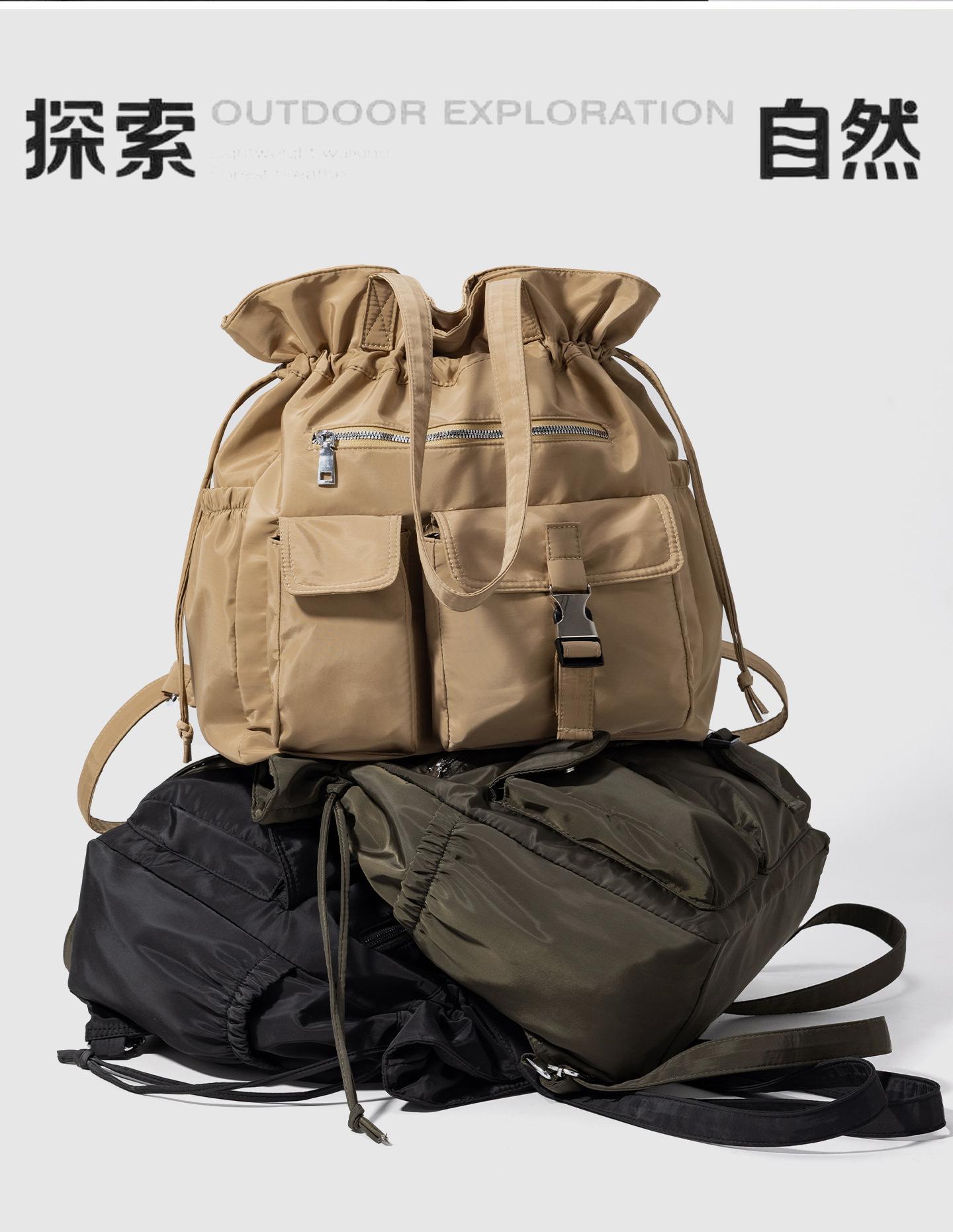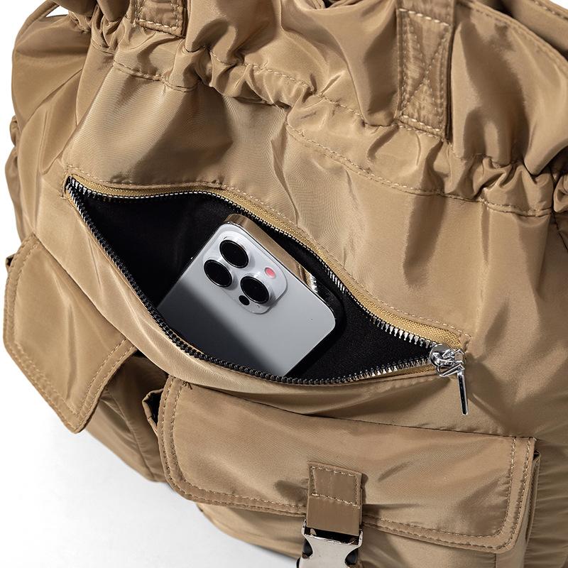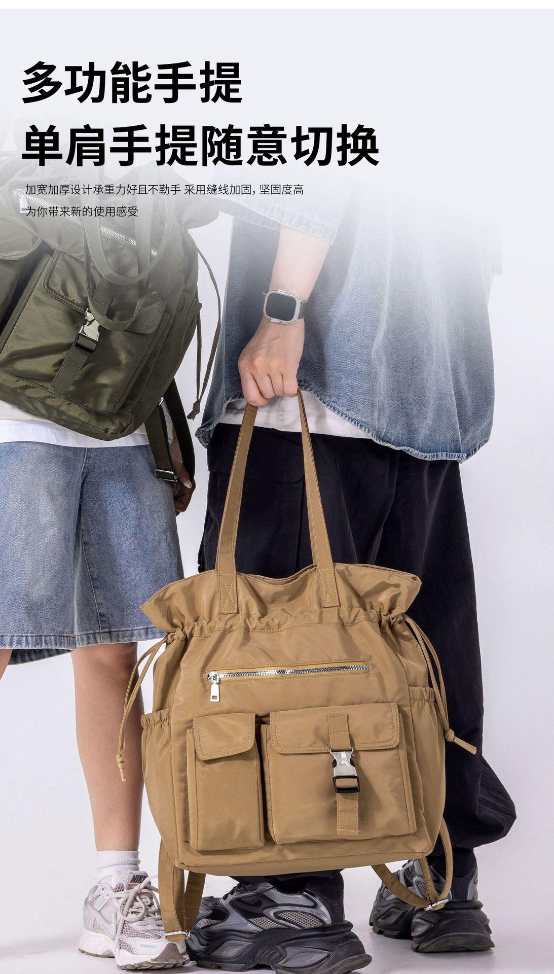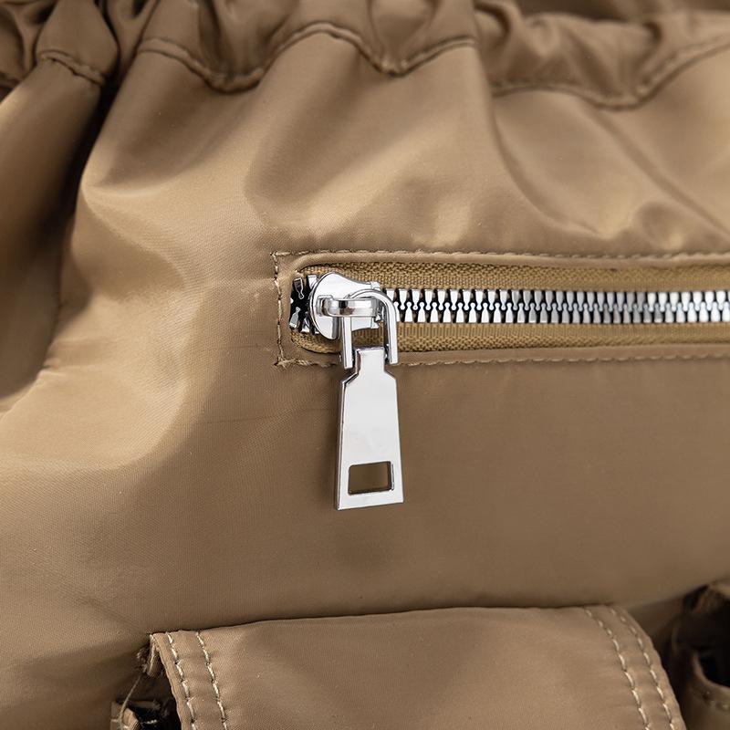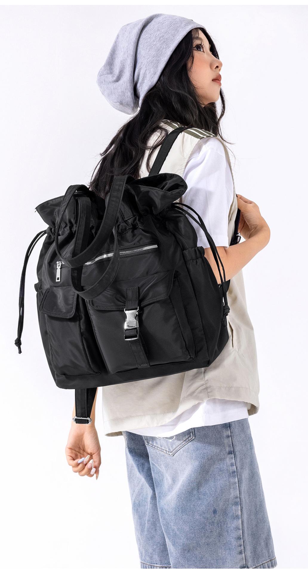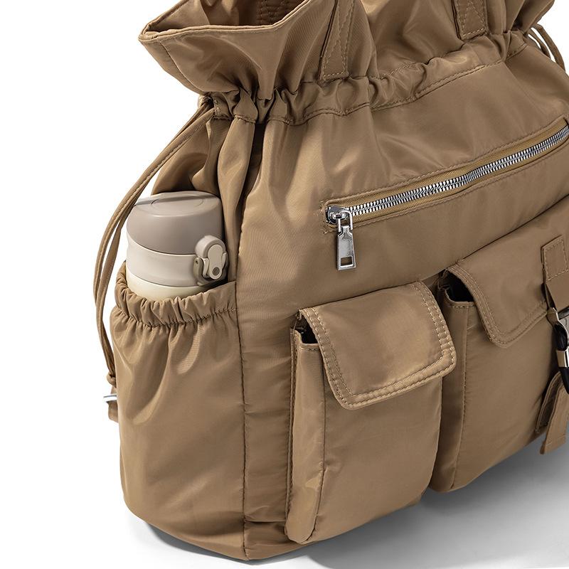 Bolsa de Ombro de Nylon com Cordão e Grande Capacidade para Mulheres, Mochila Simples com Vários Bolsos para Estudantes, Bolsa de Mão Casual Versátil para Mulheres