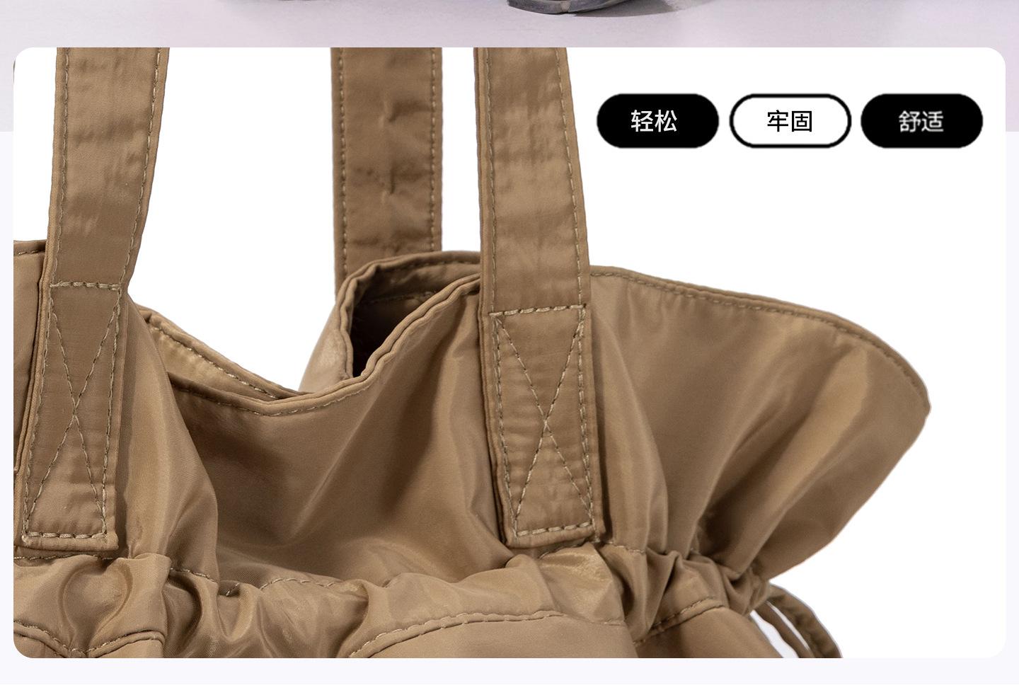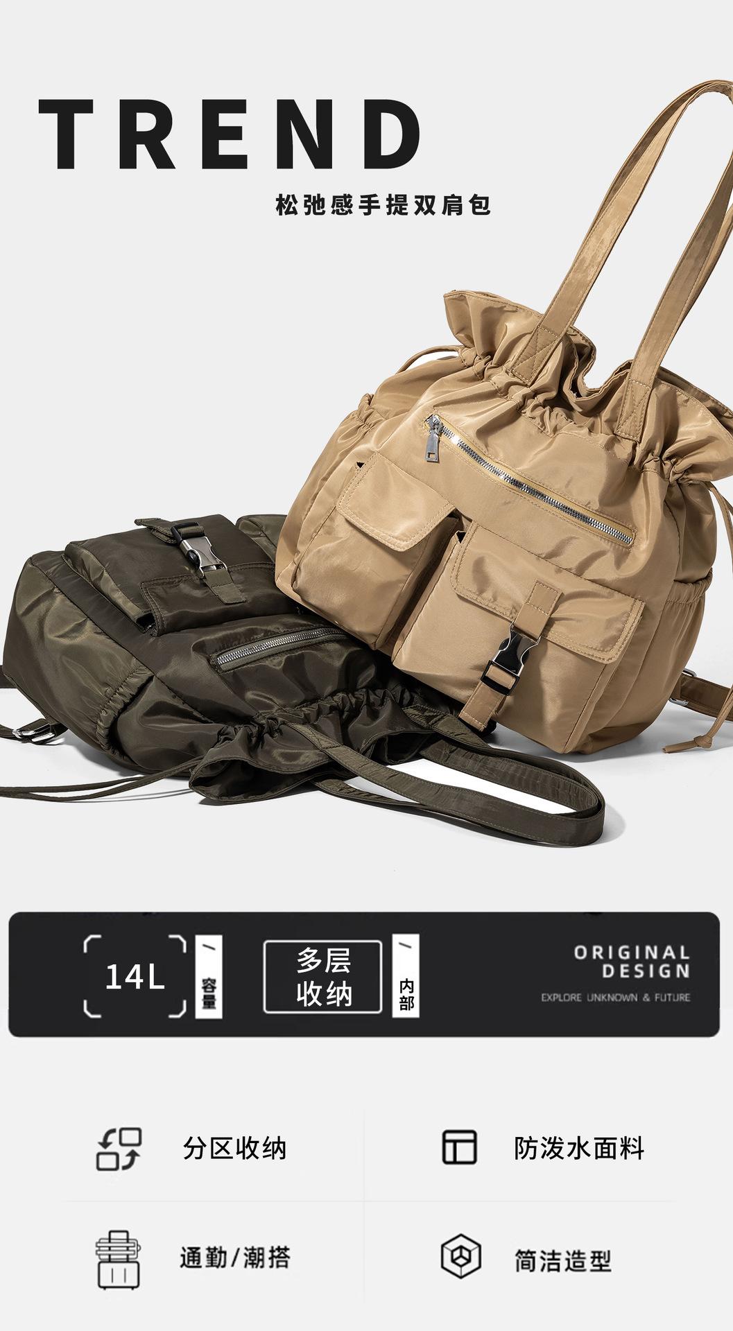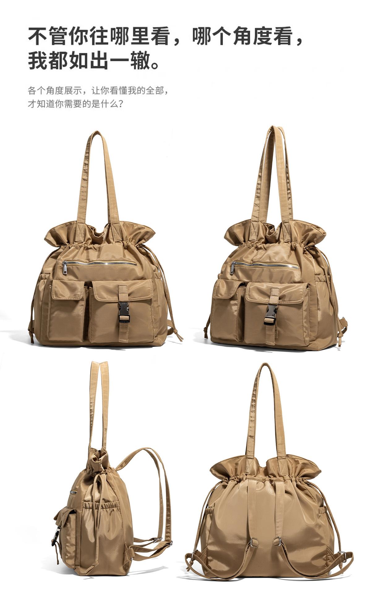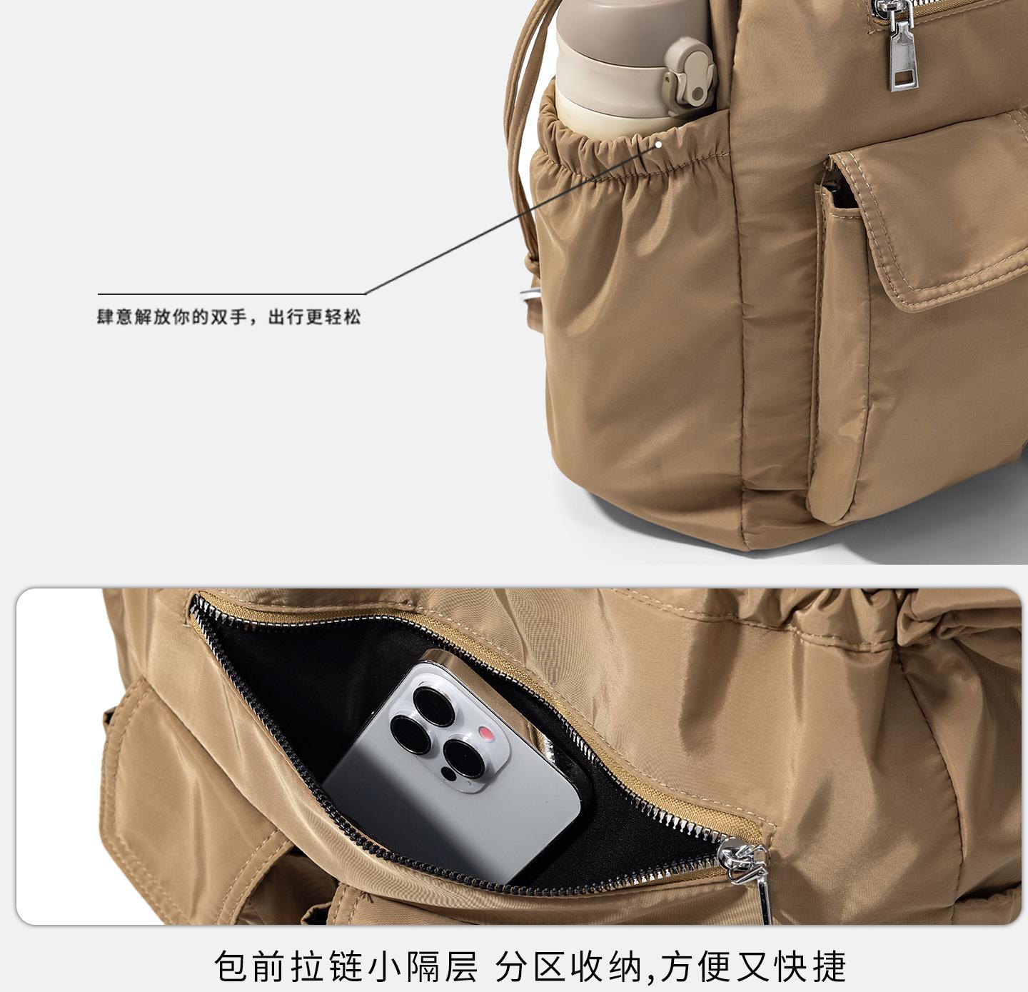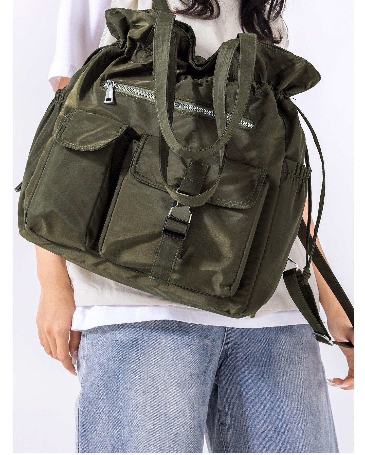 Bolsa de Ombro de Nylon com Cordão e Grande Capacidade para Mulheres, Mochila Simples com Vários Bolsos para Estudantes, Bolsa de Mão Casual Versátil para Mulheres