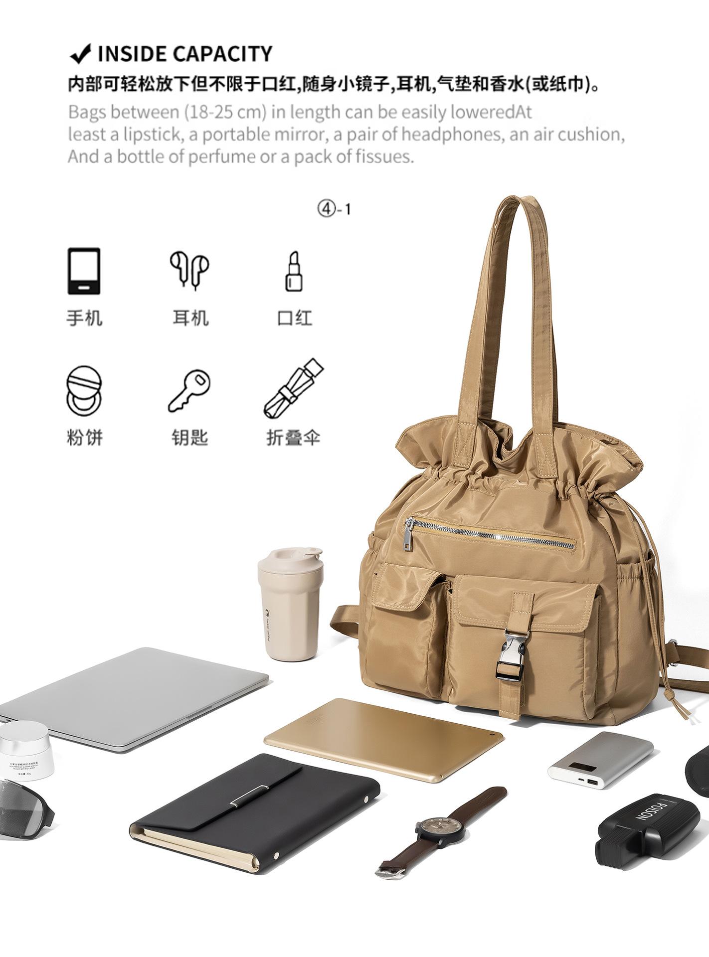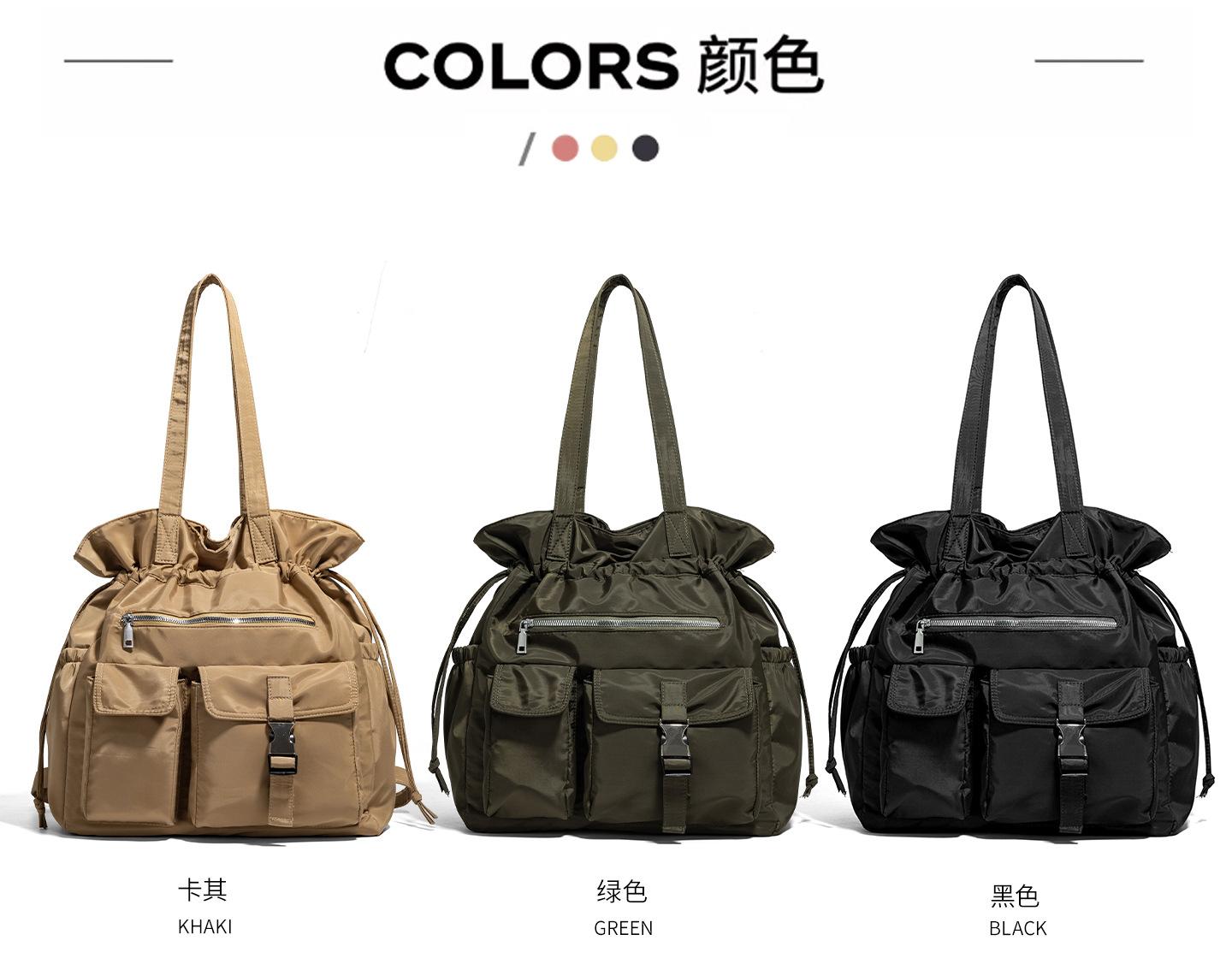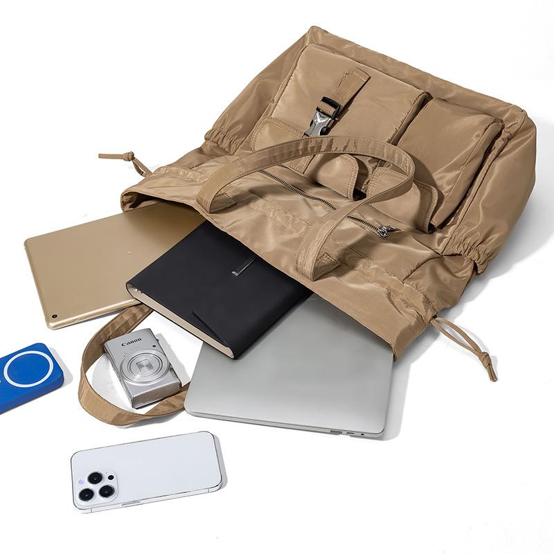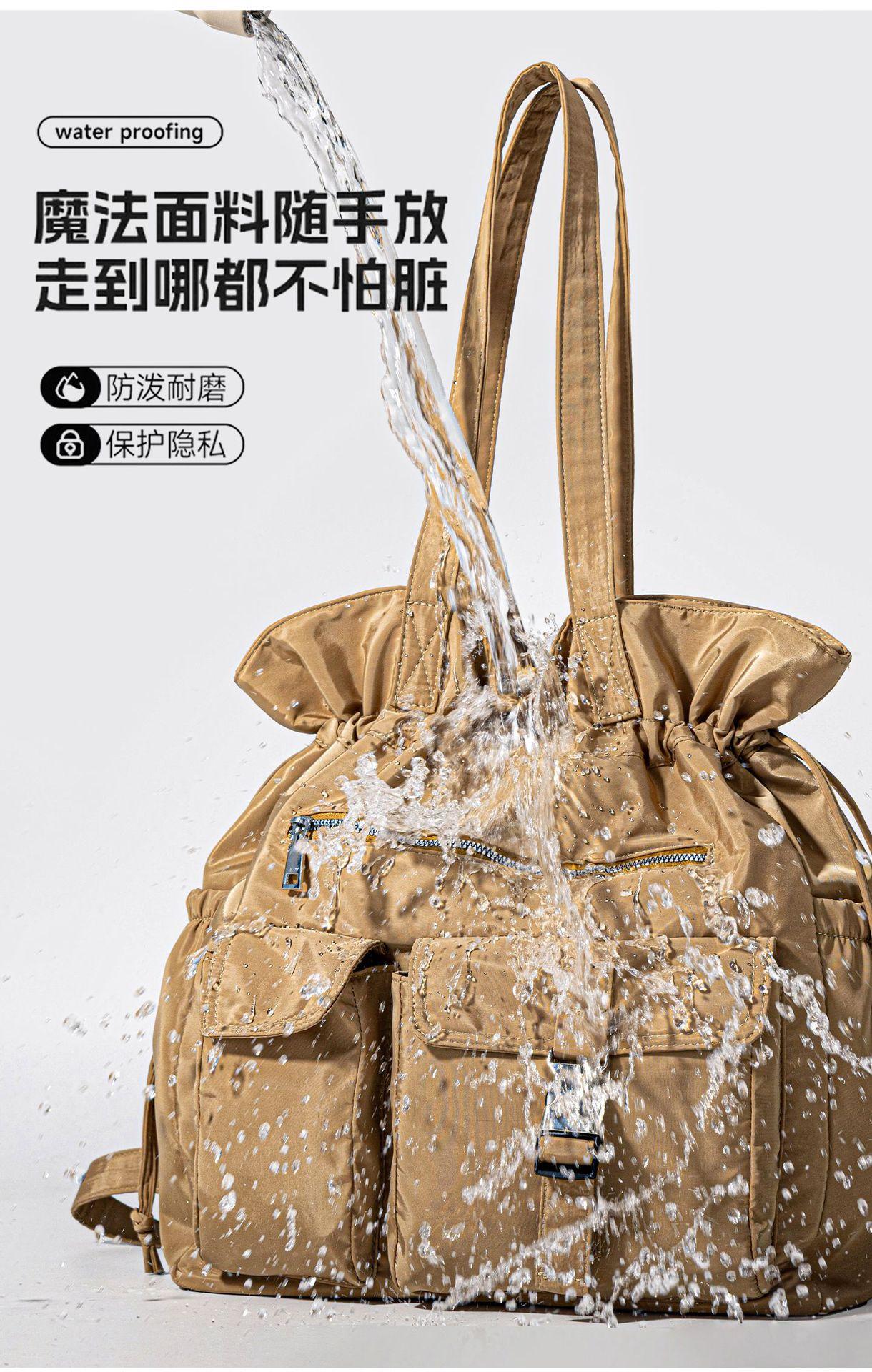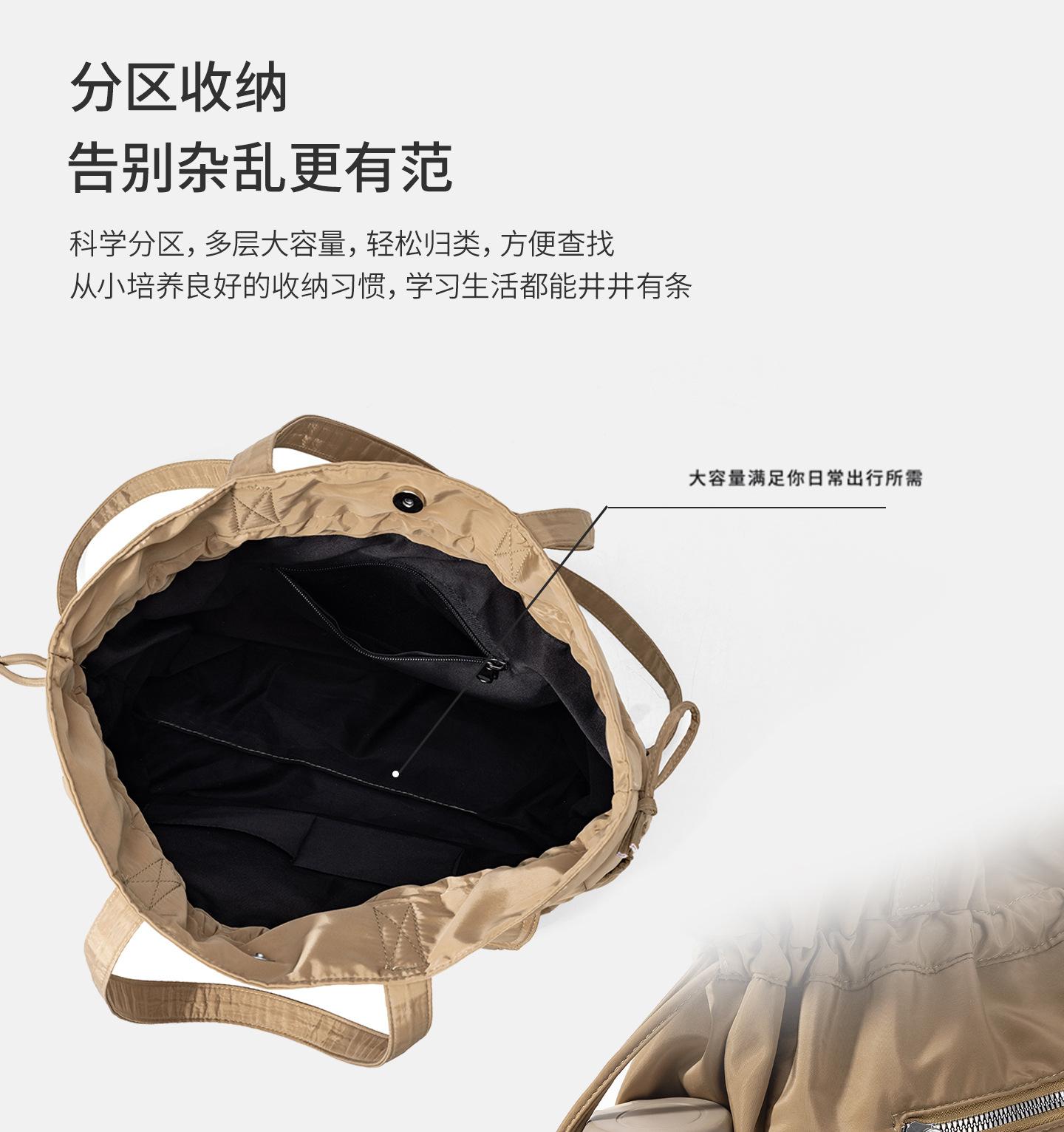 Bolsa de Ombro de Nylon com Cordão e Grande Capacidade para Mulheres, Mochila Simples com Vários Bolsos para Estudantes, Bolsa de Mão Casual Versátil para Mulheres