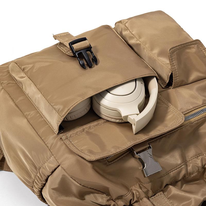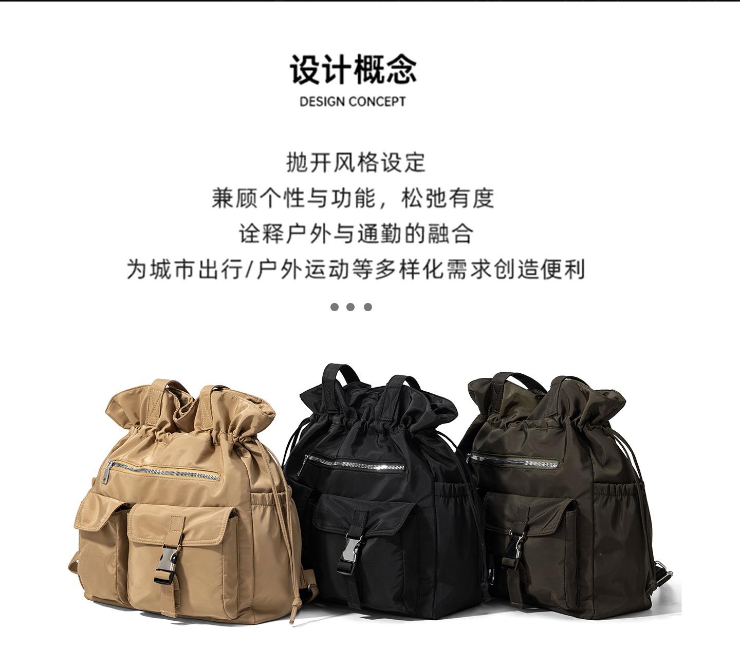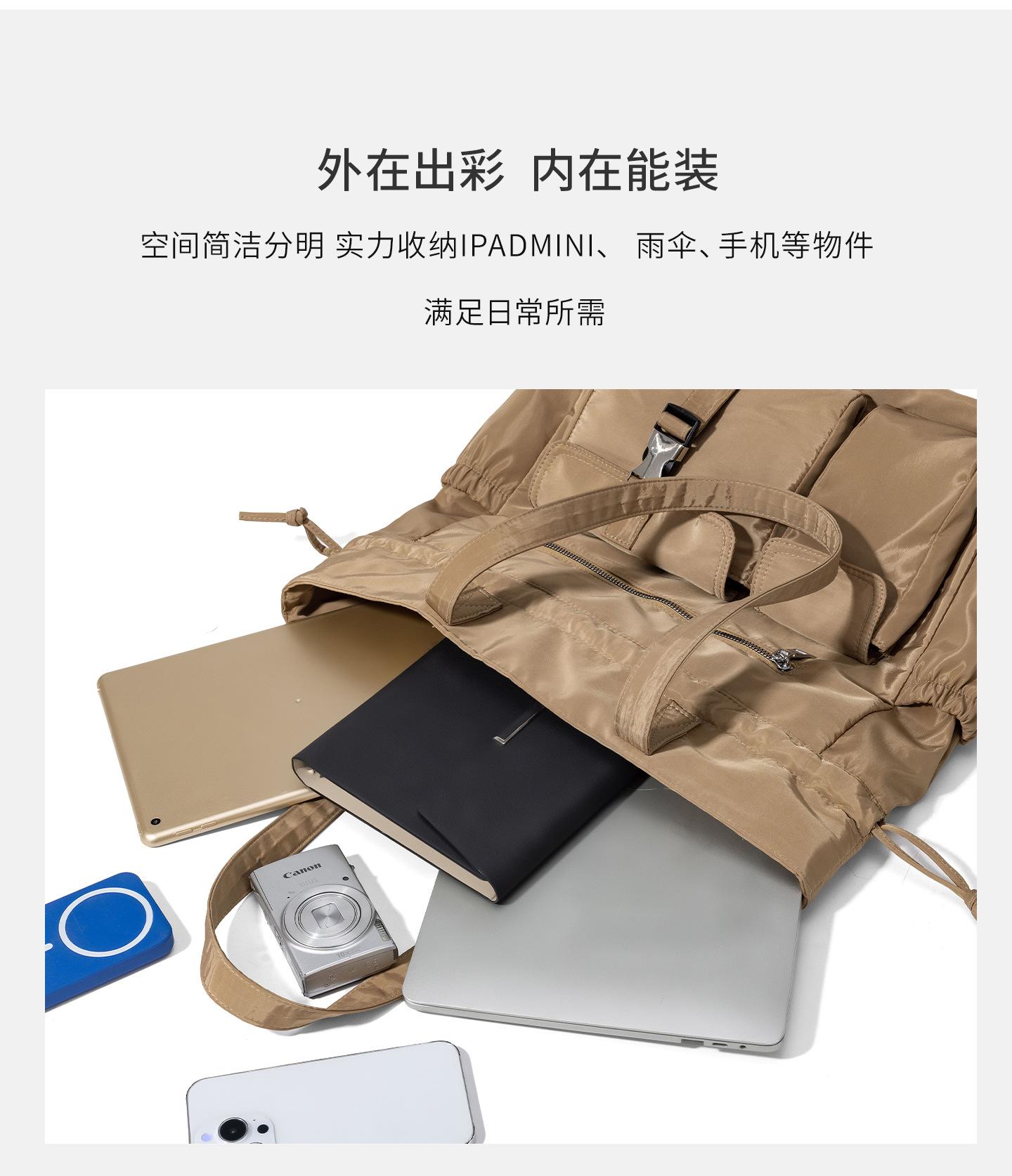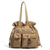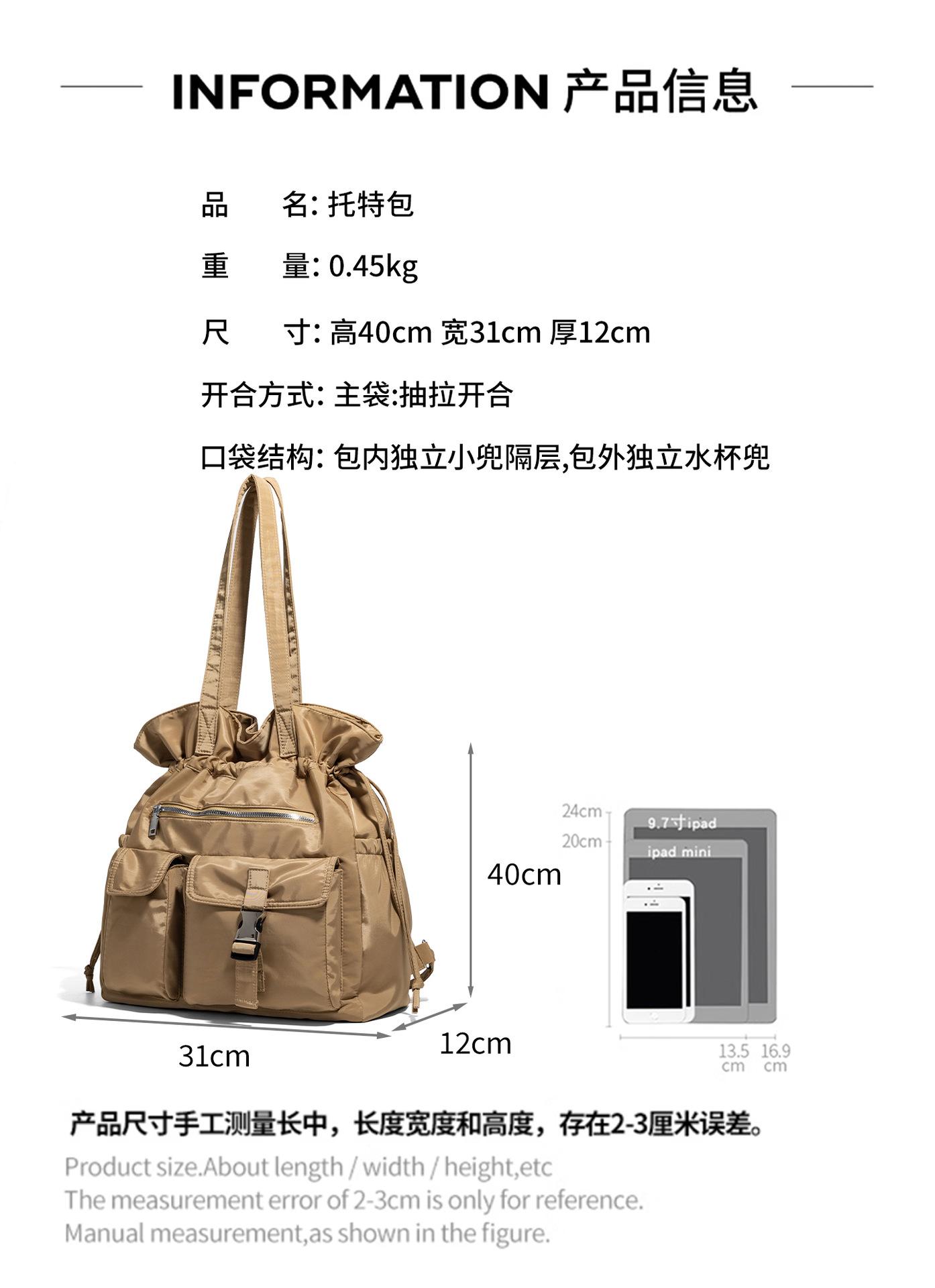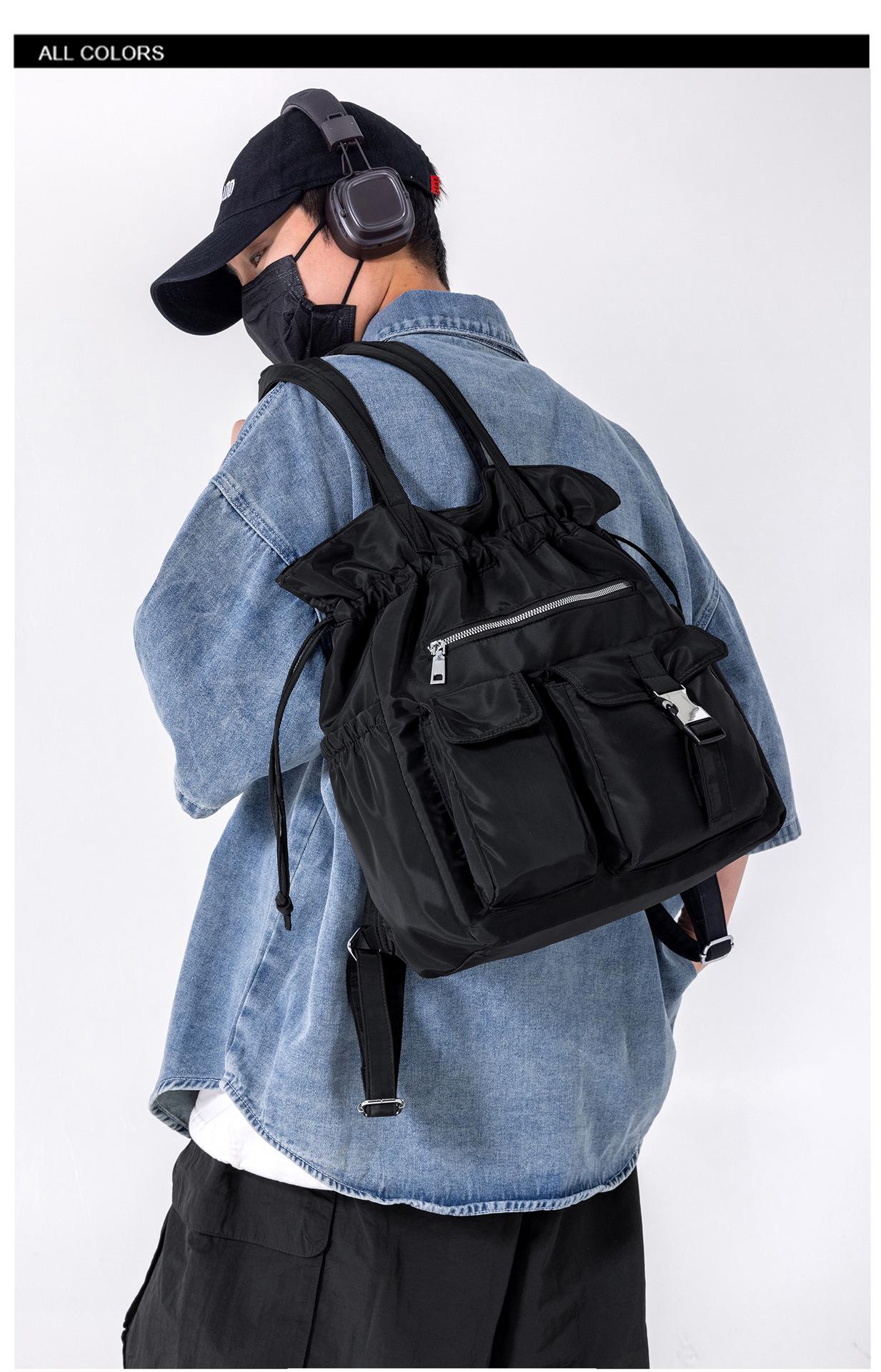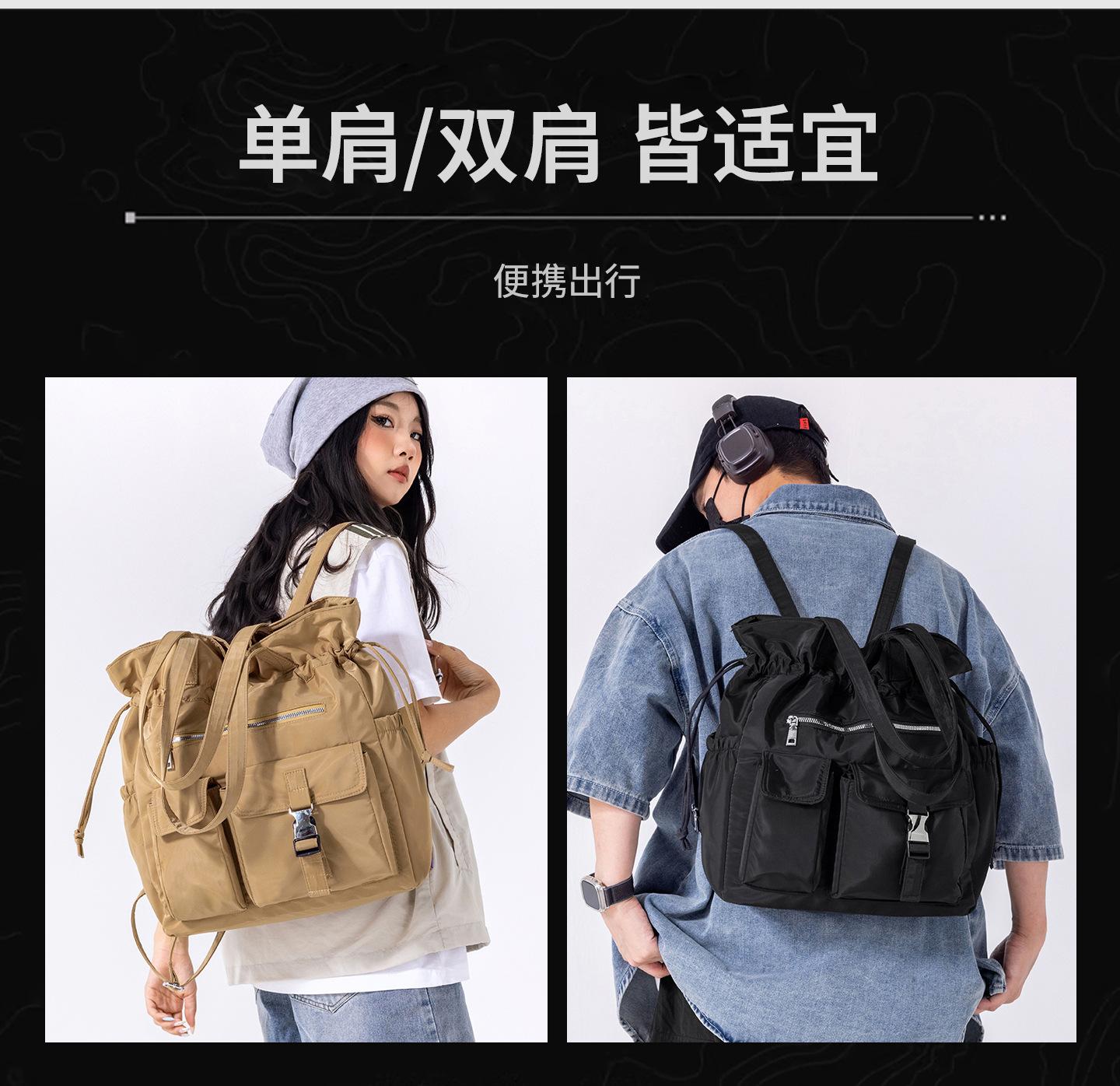 Bolsa de Ombro de Nylon com Cordão e Grande Capacidade para Mulheres, Mochila Simples com Vários Bolsos para Estudantes, Bolsa de Mão Casual Versátil para Mulheres