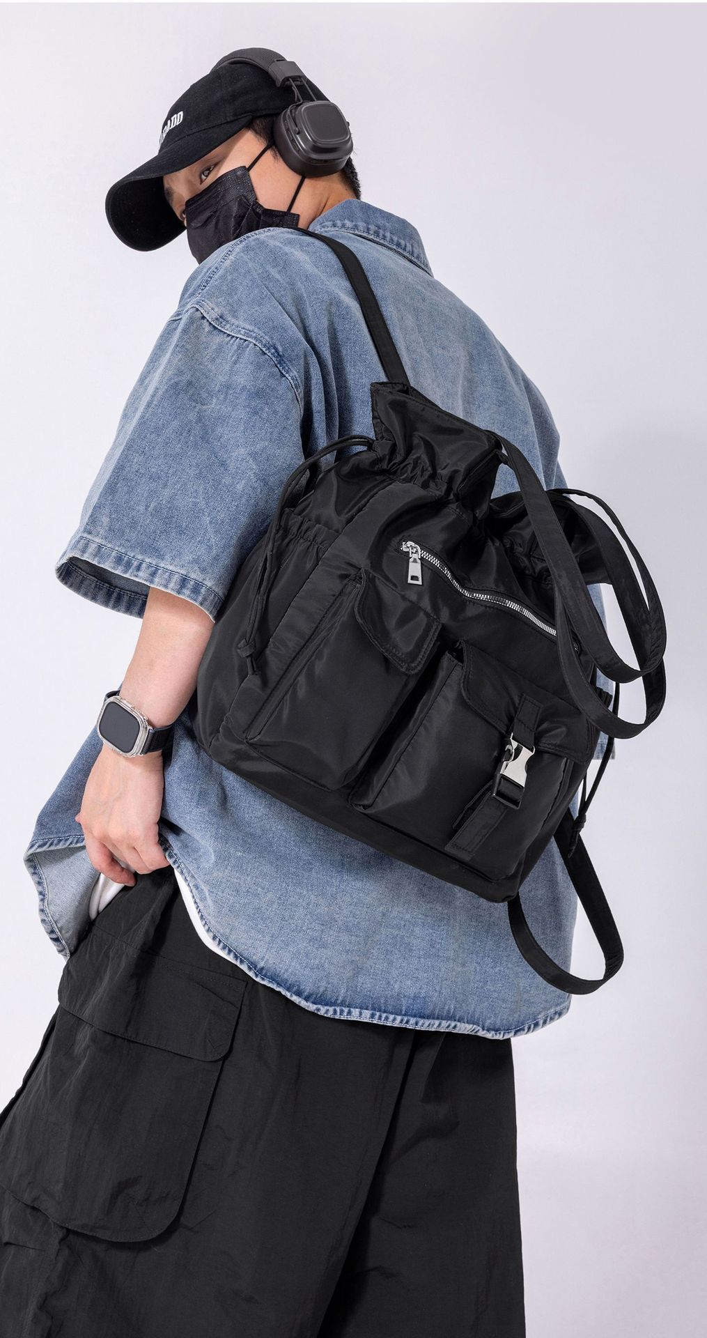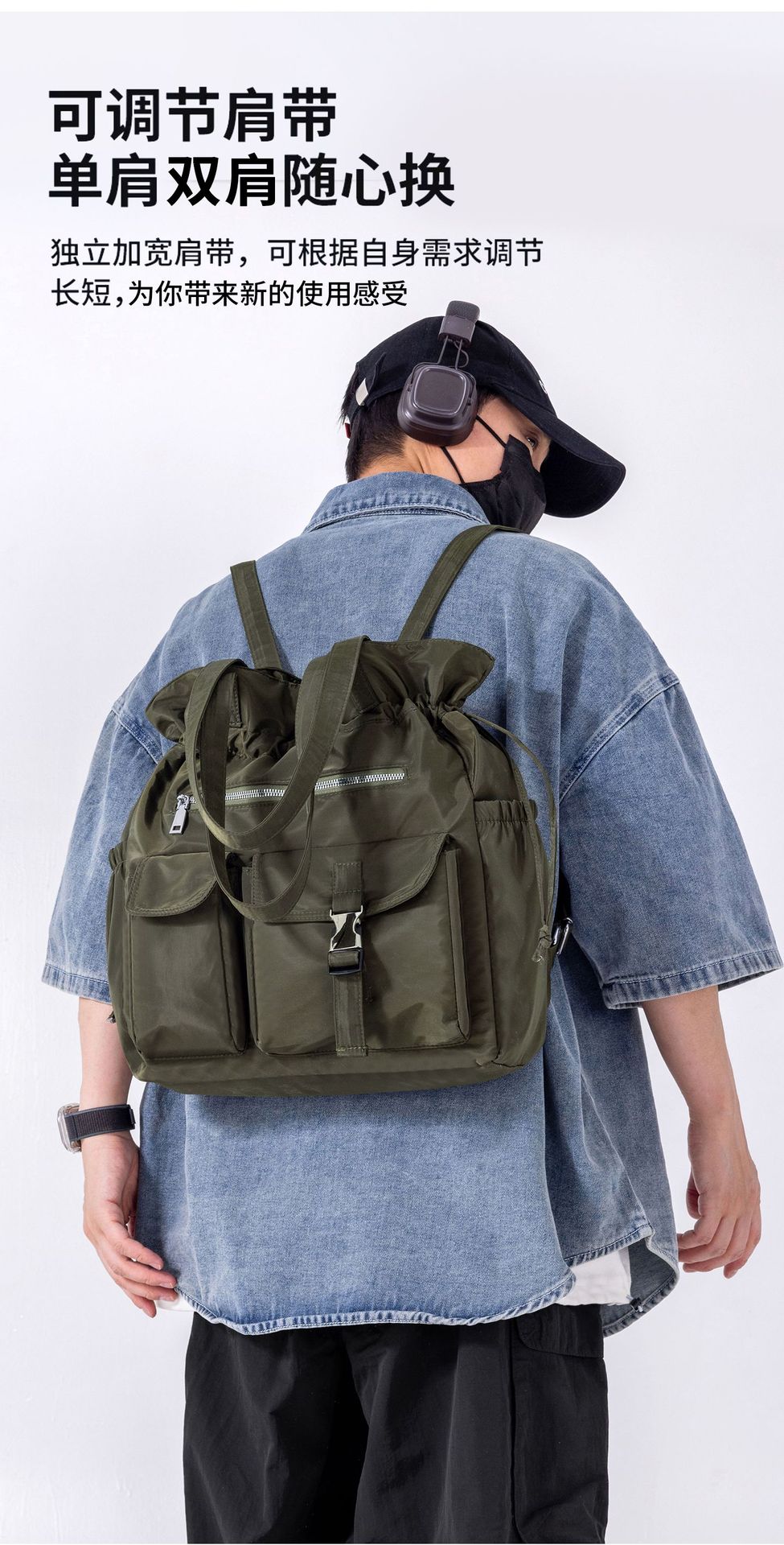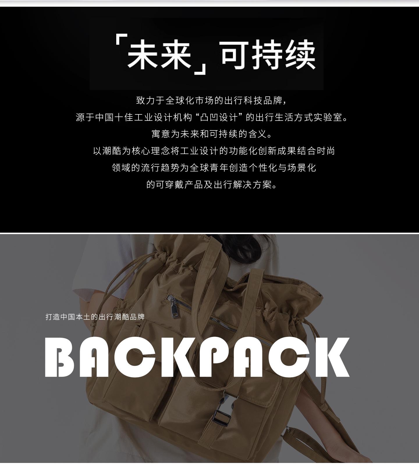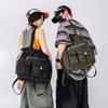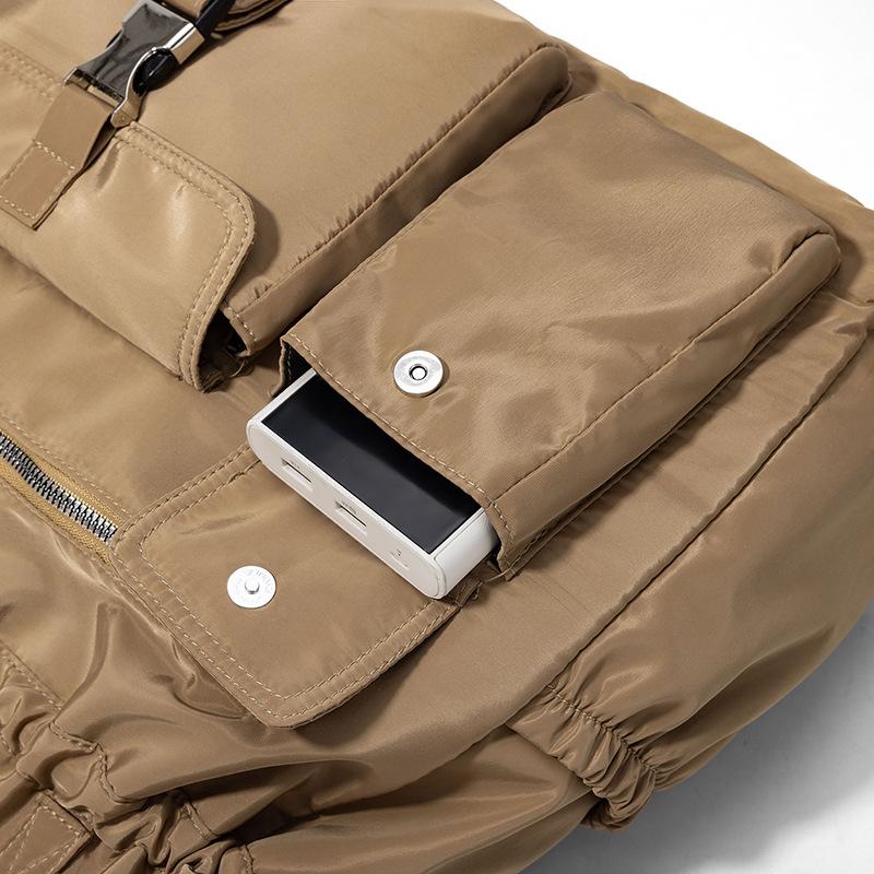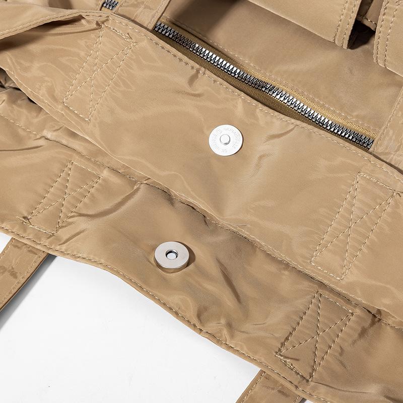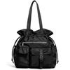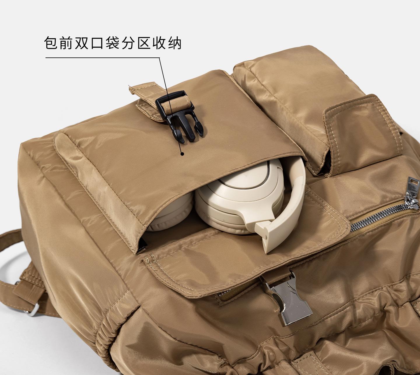 Bolsa de Ombro de Nylon com Cordão e Grande Capacidade para Mulheres, Mochila Simples com Vários Bolsos para Estudantes, Bolsa de Mão Casual Versátil para Mulheres