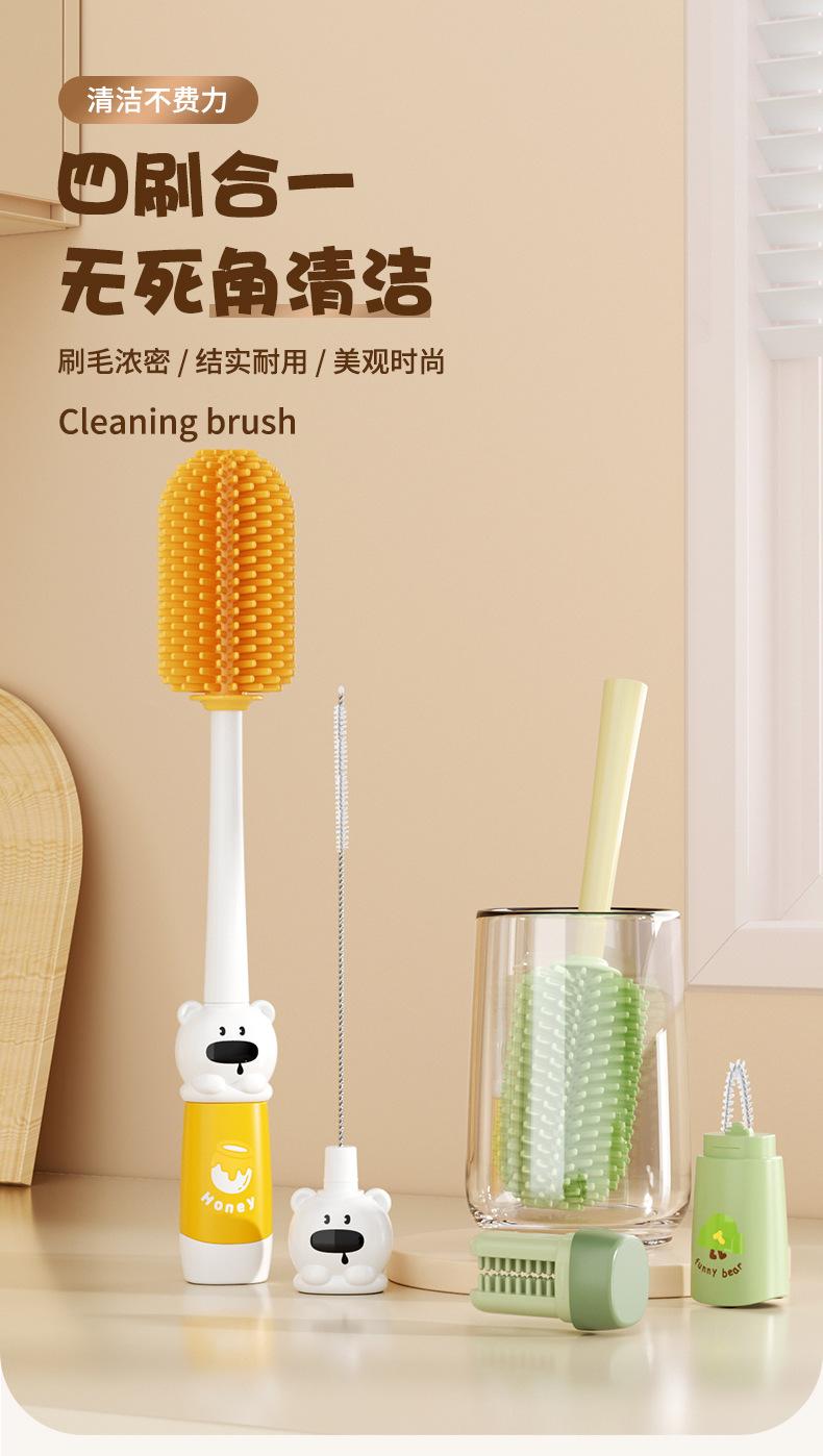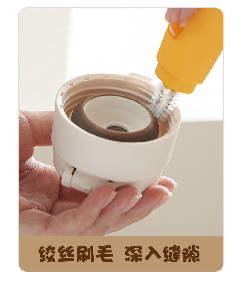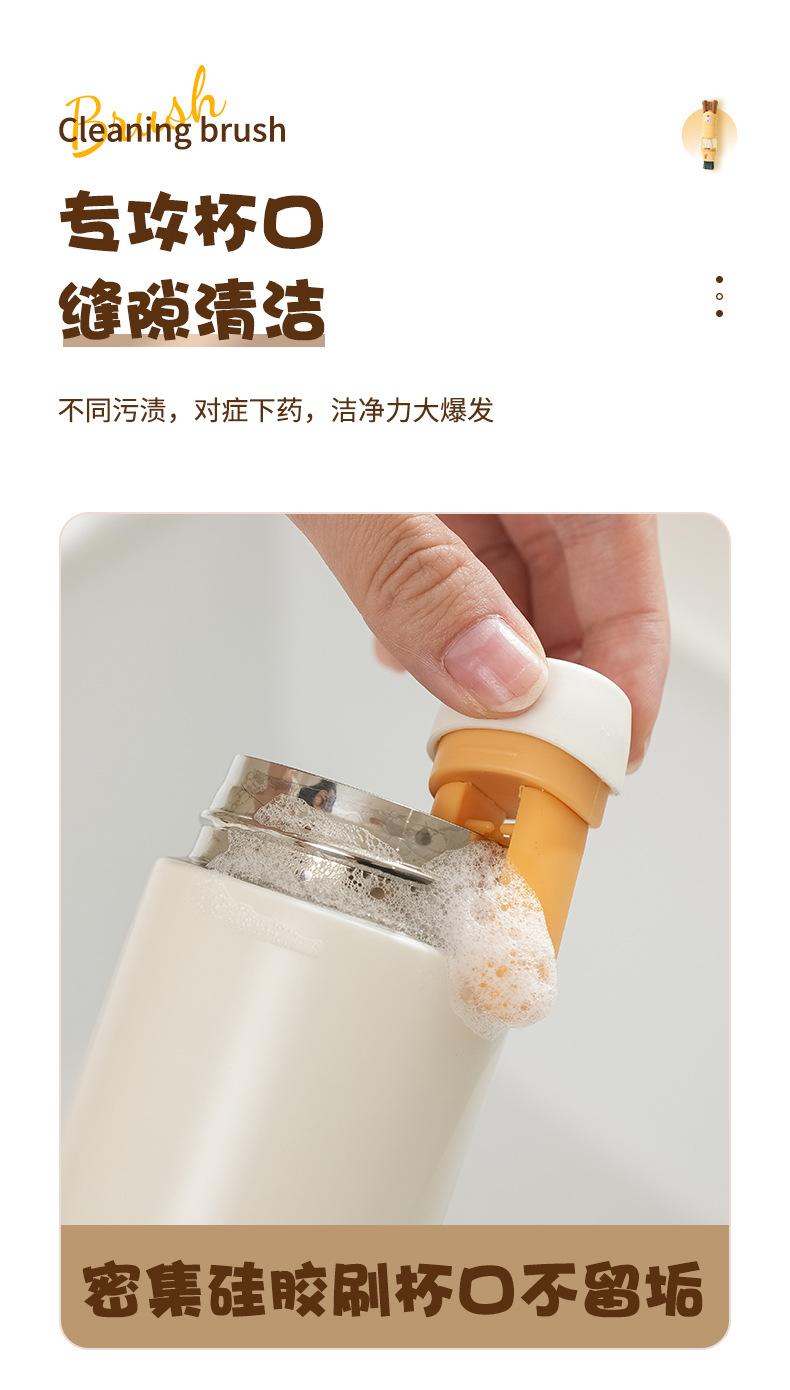Escova de Copo Quatro-em-Um de Desenho Animado com Cabo Longo Artefato Multifuncional para Limpeza de Copo de Água Escova para Limpeza de Canudo de Mamadeira Escova para Tampa de Copo Térmico
