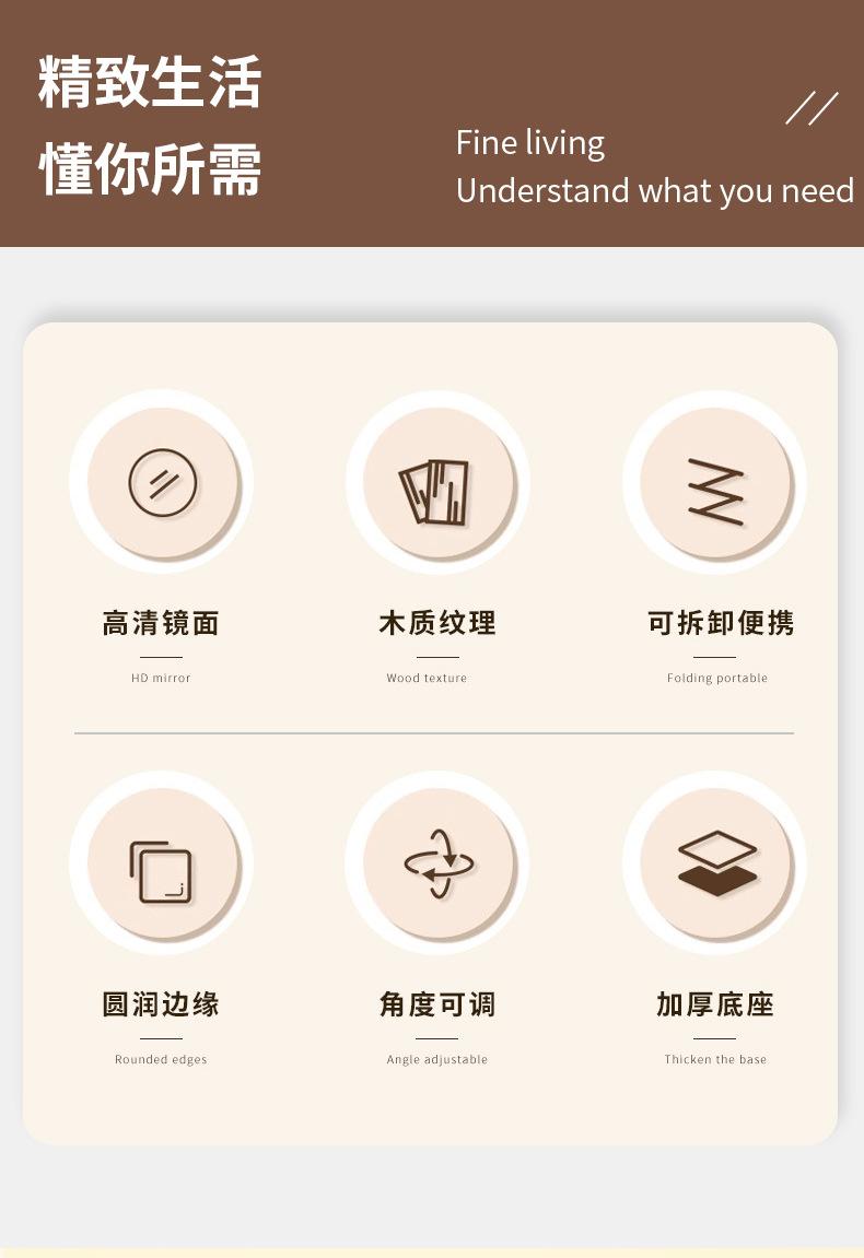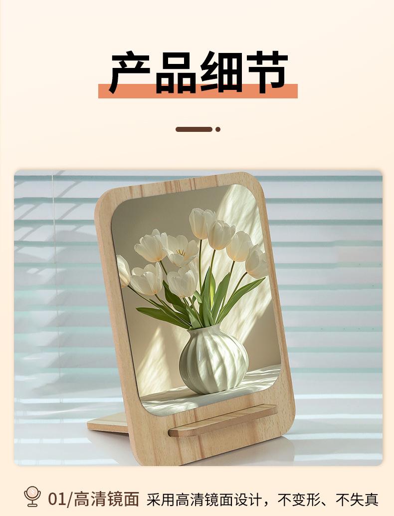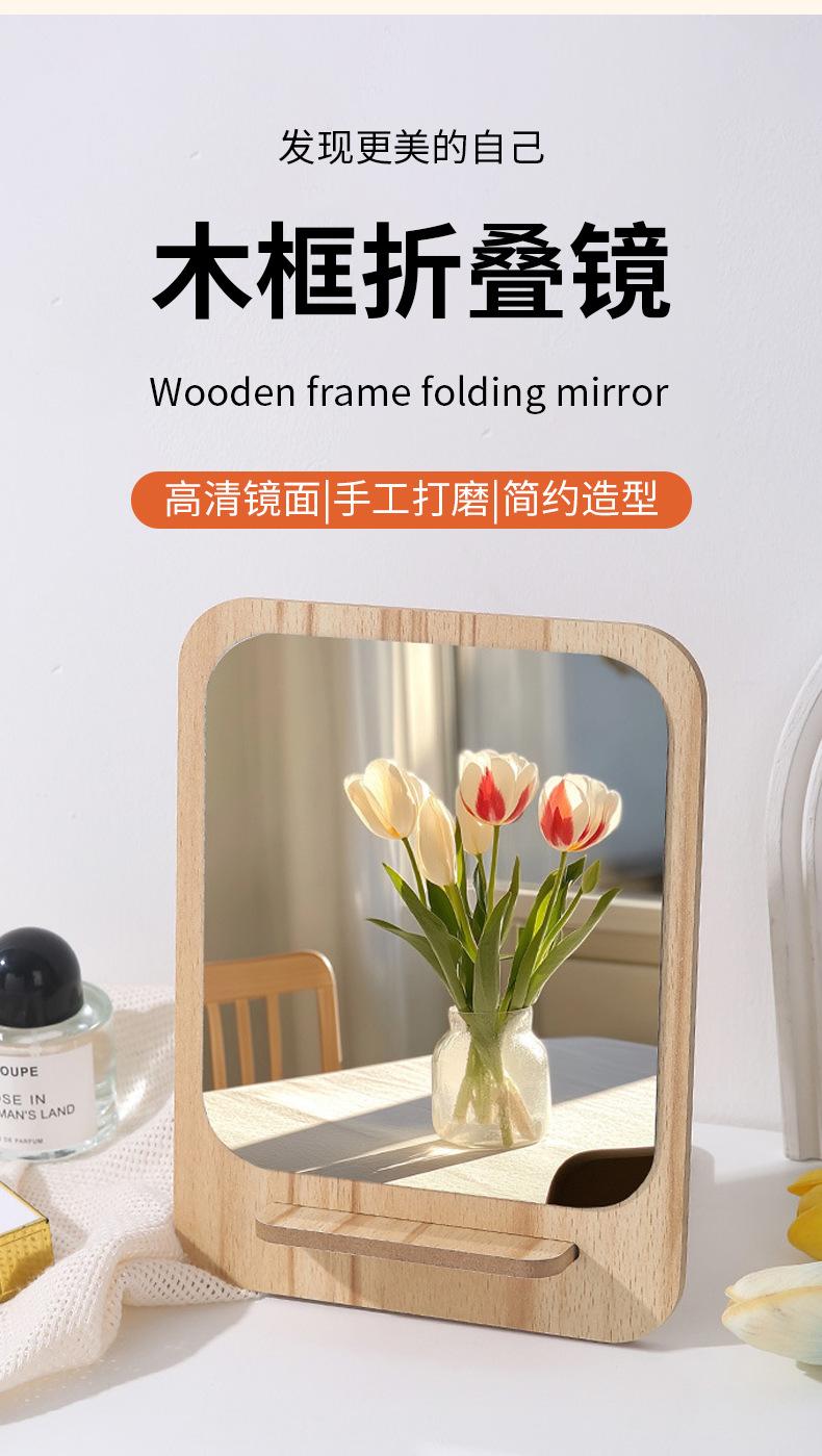 Espelho de Maquiagem de Mesa de Madeira Grande Doméstico Dormitório de Estudante Feminino Espelho de Mesa Face Única Desmontagem Espelho de Maquiagem Portátil