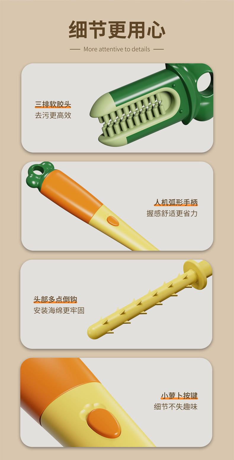 Escova Multifuncional para Lavar Copos Doméstica com Cabo Longo Escova de Limpeza Cenoura Uma Escova Três Propósitos Escova para Copos Escova para Garrafas