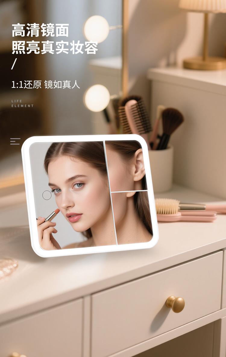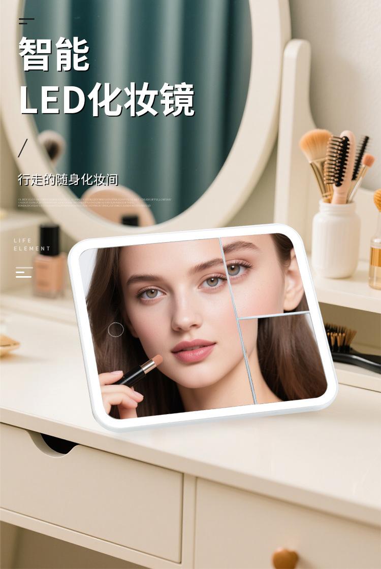 Espelho de Maquiagem LED Transfronteiriço com Luz Dobrável Espelho de Mesa Dobrável Portátil Dormitório Estudantil Quarto Penteadeira