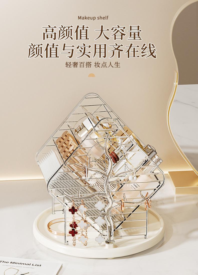 Caixa de Armazenamento de Cosméticos Doméstica Penteadeira de Mesa Grande Capacidade Giratória Cuidados com a Pele Batom Batom Sombra Rack de Armazenamento