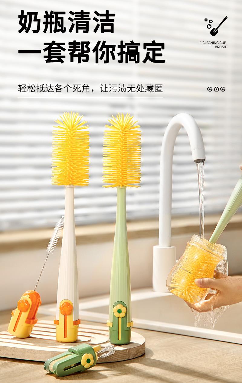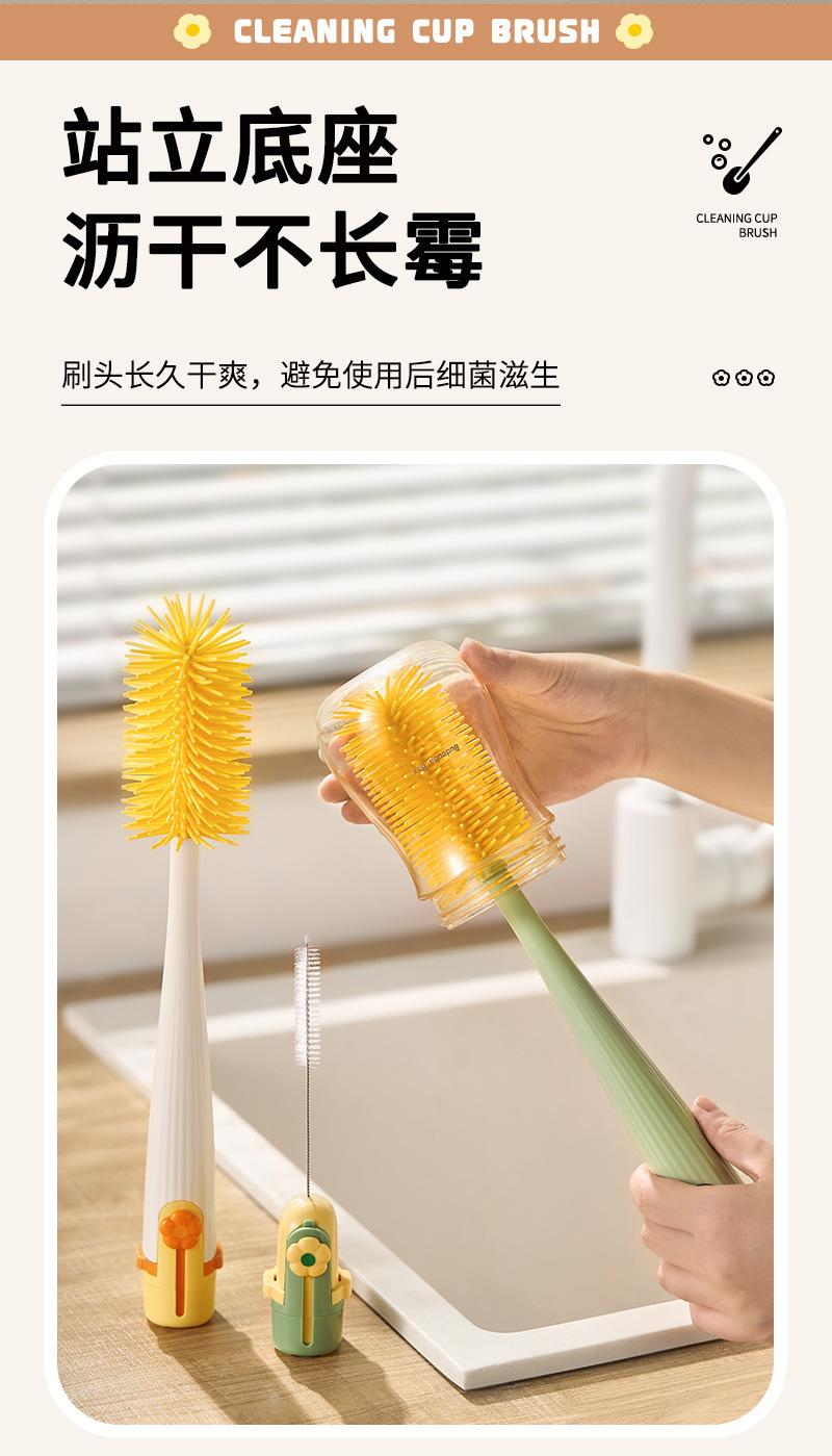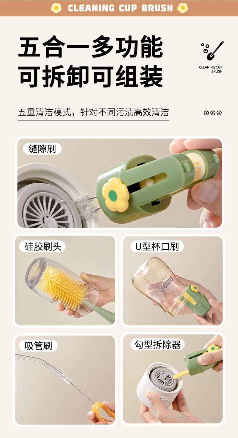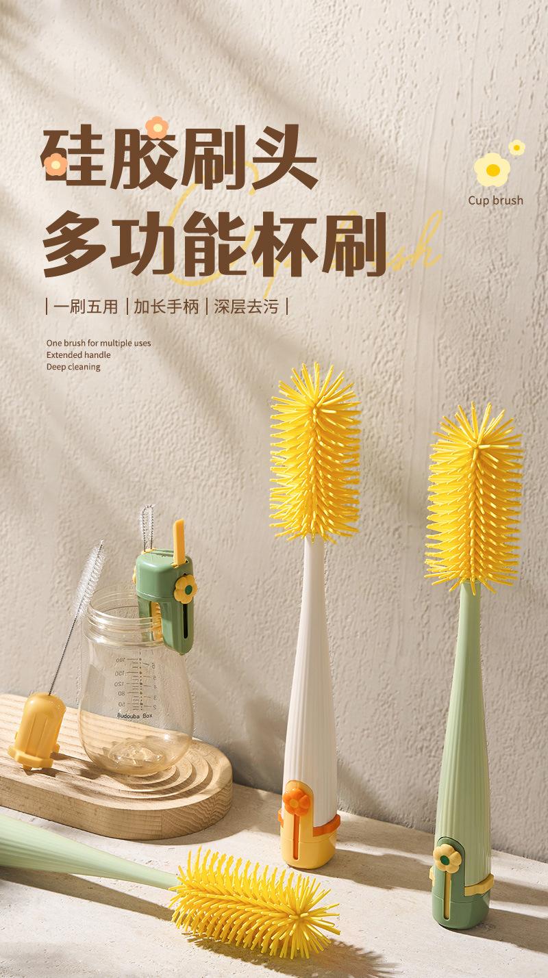 Escova de Copo Cinco-Em-Um de Silicone com Cabo Longo, Limpeza de Copos de Água, Escova Multifuncional para Limpeza de Canudos de Garrafa, Escova para Tampa de Copo, Doméstico